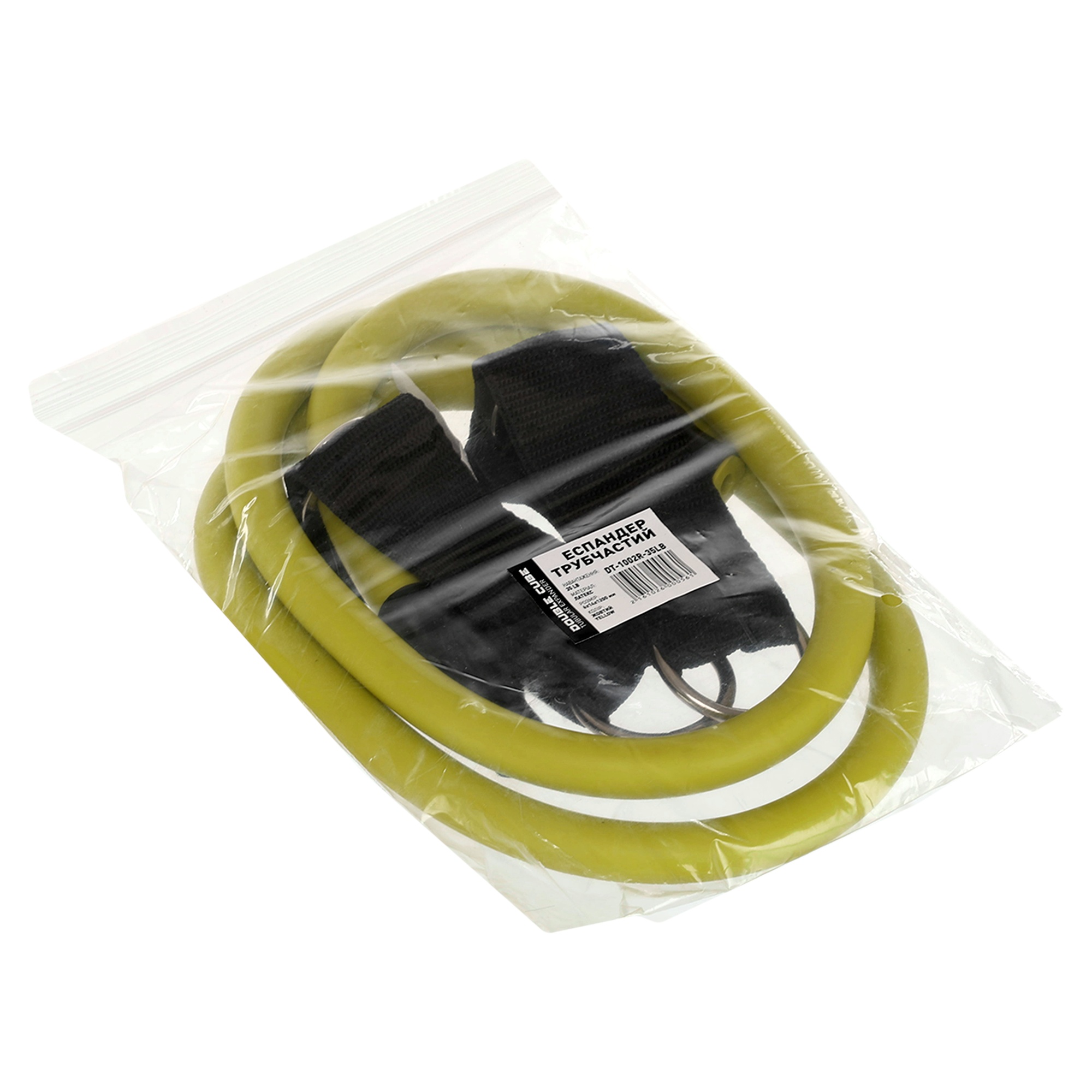 Эспандер трубчатый для фитнеса с кольцом DOUBLE CUBE DT-1002R-35LB 6х14x1200мм нагрузка 16кг желтый Код DT-1002R-35LB