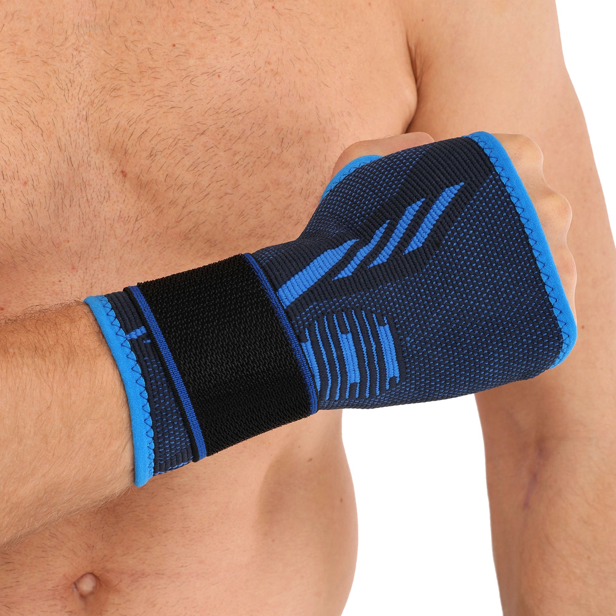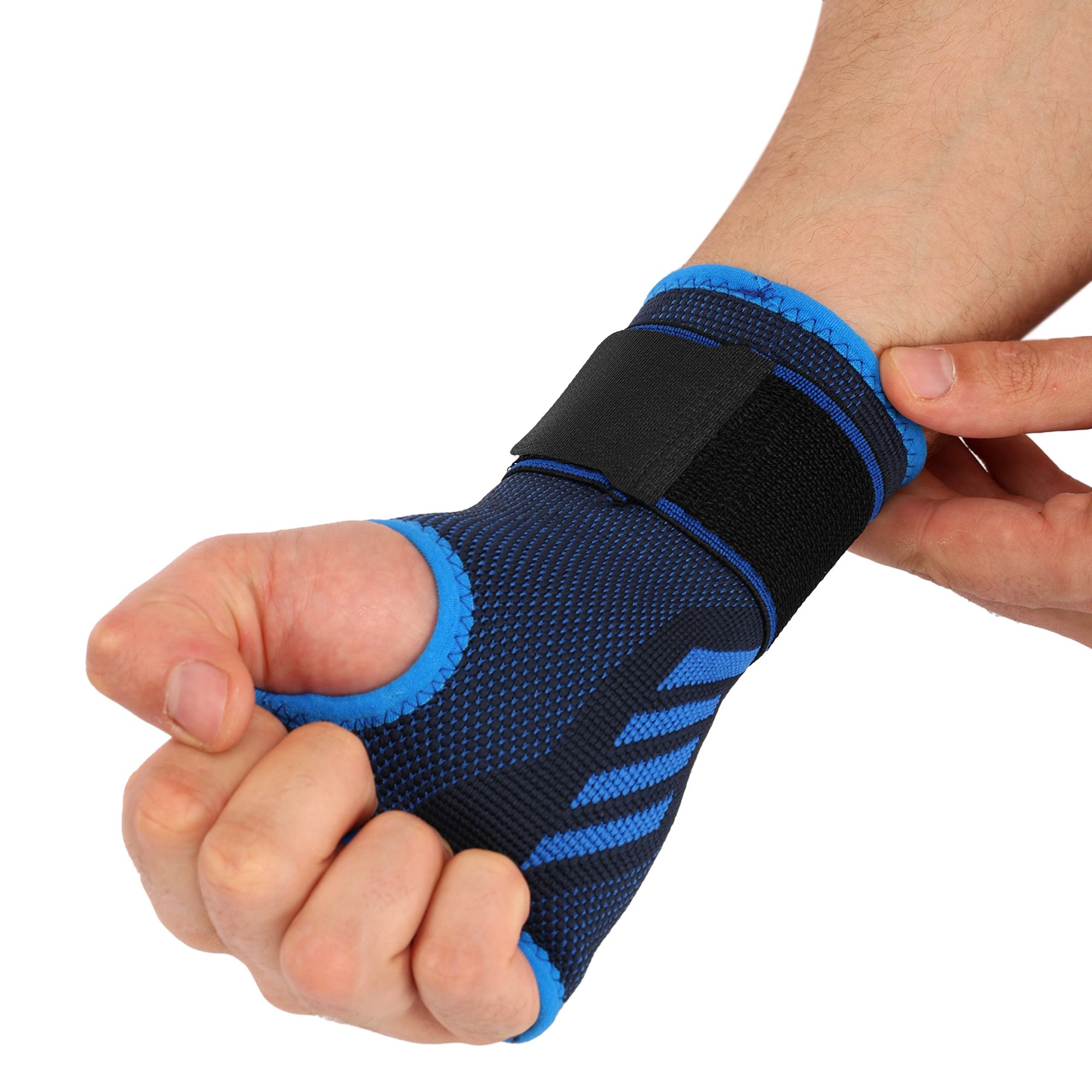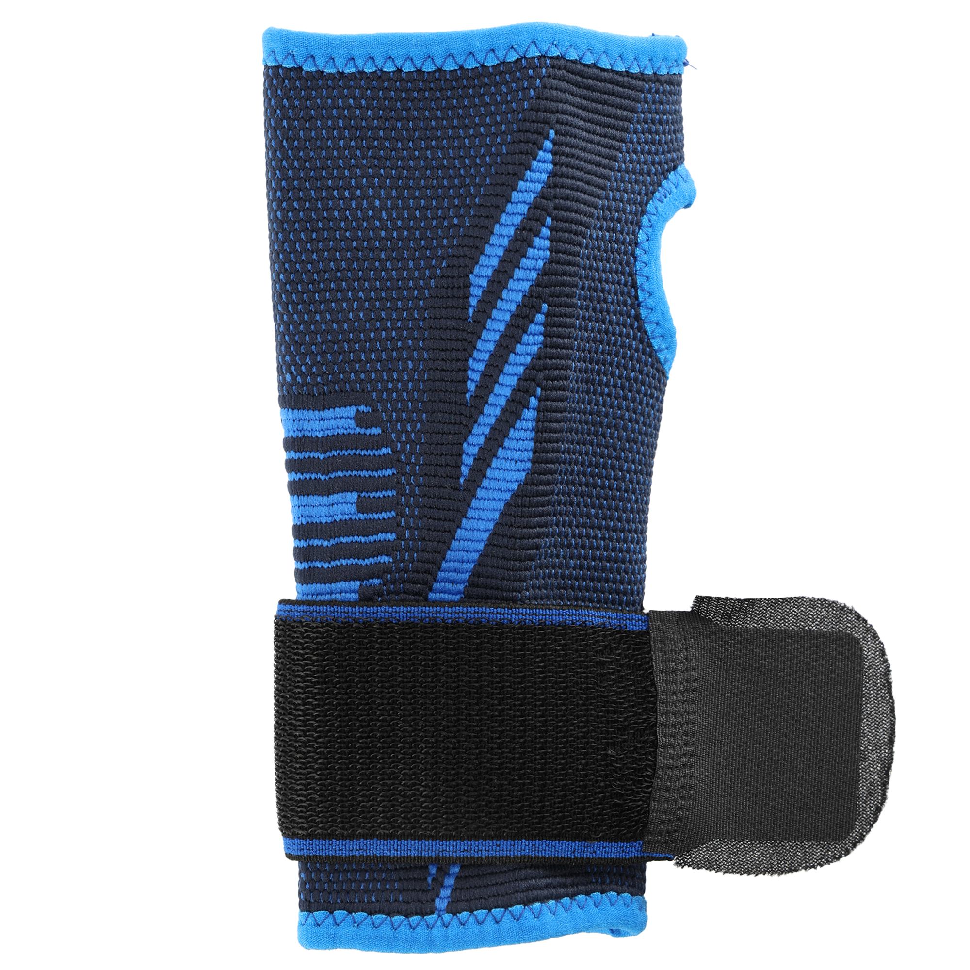 Фиксатор запястья эластичный спортивный с фиксирующим ремнем SIBOTE ST-7442 One size 1шт черный-синий Код ST-7442