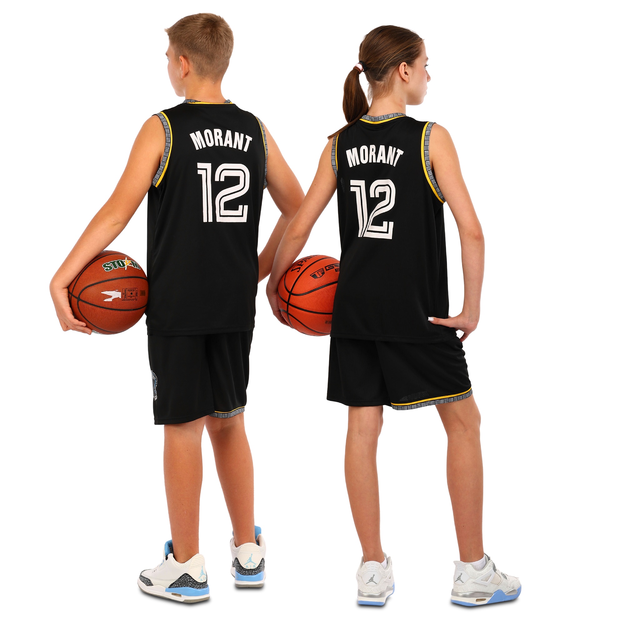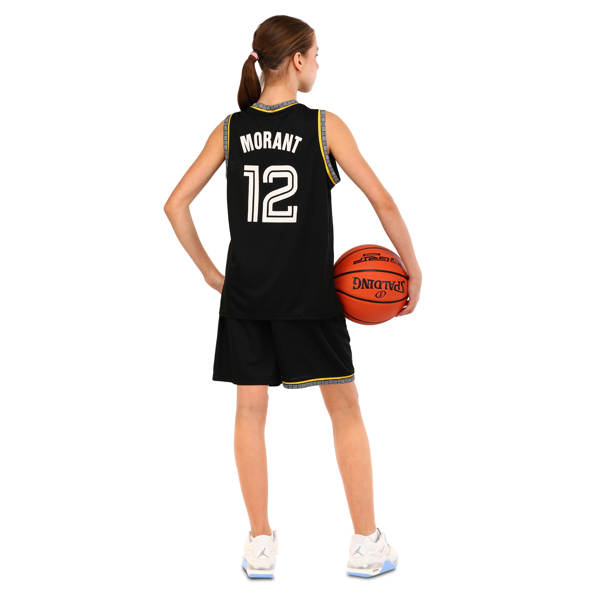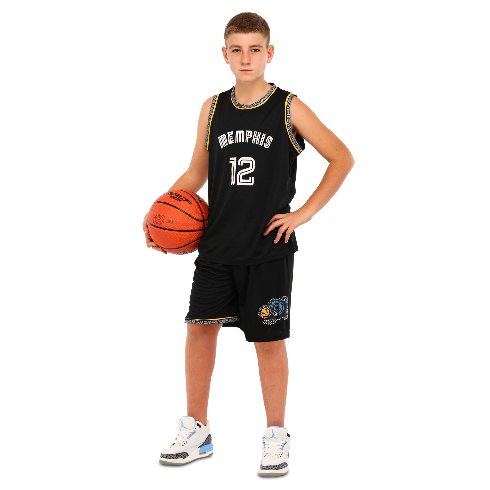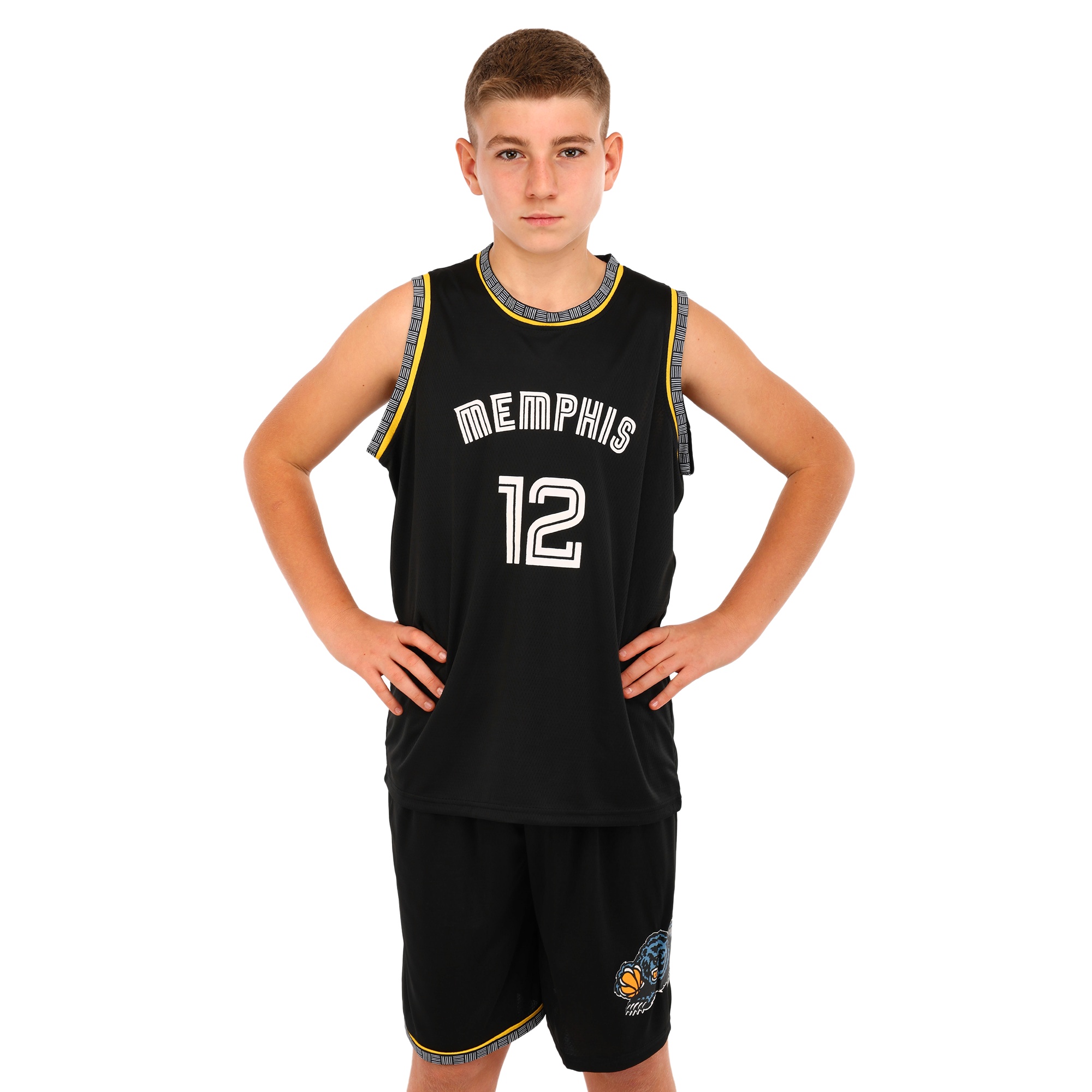 Детская баскетбольная форма с символикой клуба Memphis Grizzlies - это комплект спортивной экипировки, которая состоит из майки и шорт. Майка и шорты изготовлены в классическом чёрном цвете, на них имеется печать, выполненная белым цветом. Она включает номер игрока и его фамилию, а также название клуба. В качестве материала изготовления используется полиэстер, который отличается лёгкостью и прочностью. Полиэстер хорошо отводит влагу от тела и быстро высыхает после намокания, что позволяет игроку чувствовать комфорт во время интенсивных тренировок. Одежда имеет свободный крой, позволяет спортсмену двигаться активно и быстро. Форма представлена несколькими размерами, которые подойдут как для самых юных фанатов баскетбола, так и для подростков.