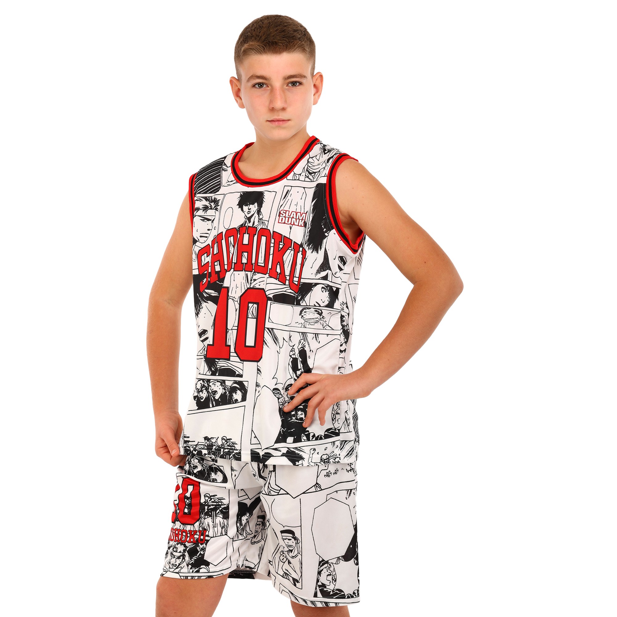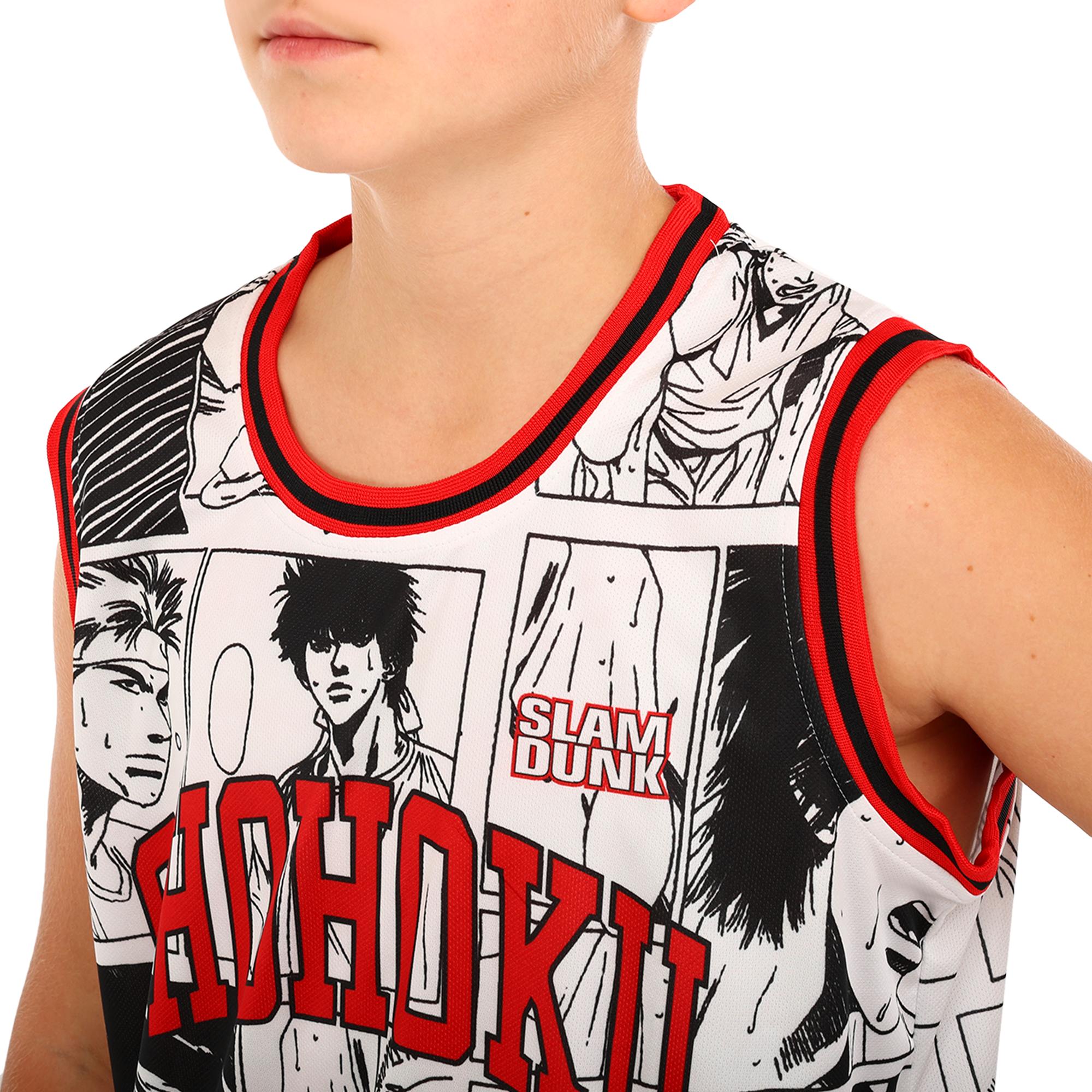Детская баскетбольная форма выполнена в стиле клуба Shuhoku в белом цвете. Комплект состоит из шорт и майки, на котором указан номер 10. Это отличное решение для детей, которые увлекаются баскетболом, а также популярным аниме. Благодаря использованию в качестве материала изготовления полиэстера форма отличается высокой прочностью, лёгкостью и долговечностью. Ткань не выгорает на солнце и не тускнеет после многократных стирок. Она воздухопроницаемая, поэтому позволяет телу эффективно охлаждаться даже во время тренировок в жаркое время года. Дизайн формы включает яркие принты.