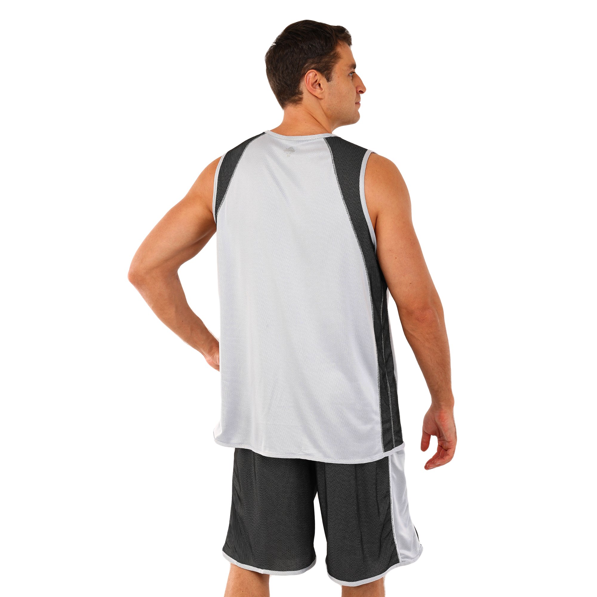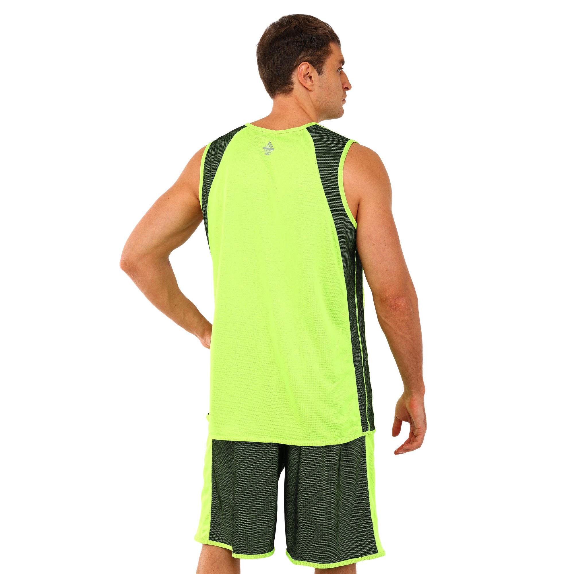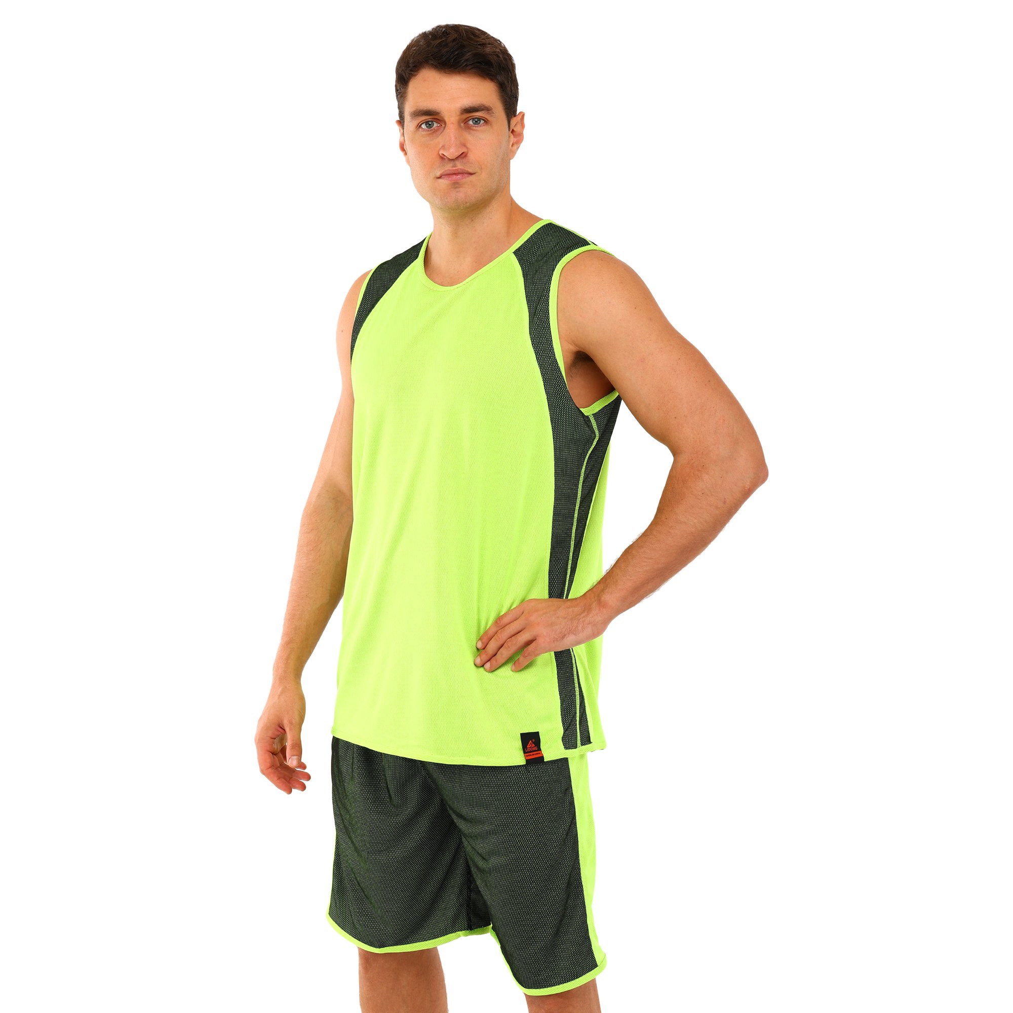 Двусторонний баскетбольный комплект LIDONG Unite LD-8802 состоит из однослойной майки и шорт, изготовленных из полиэстера с легкой перфорацией, напоминающей мелкую сеточку. Такой материал обеспечивает отличную вентиляцию и отвод влаги, сохраняя комфортную температуру тела во время интенсивных тренировок.Майка комплекта имеет современный круглый вырез и посадку по фигуре, что обеспечивает идеальную подгонку к телу и минимизирует натирания. Контрастные вставки на горловине, в области пройм и внизу добавляют стильный акцент и повышают видимость на площадке.