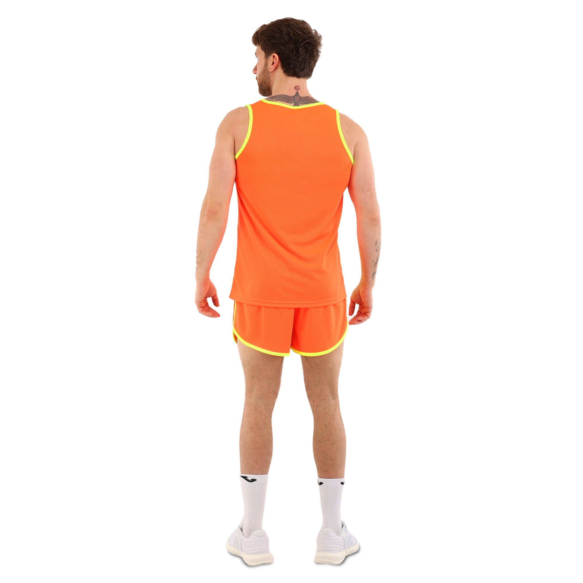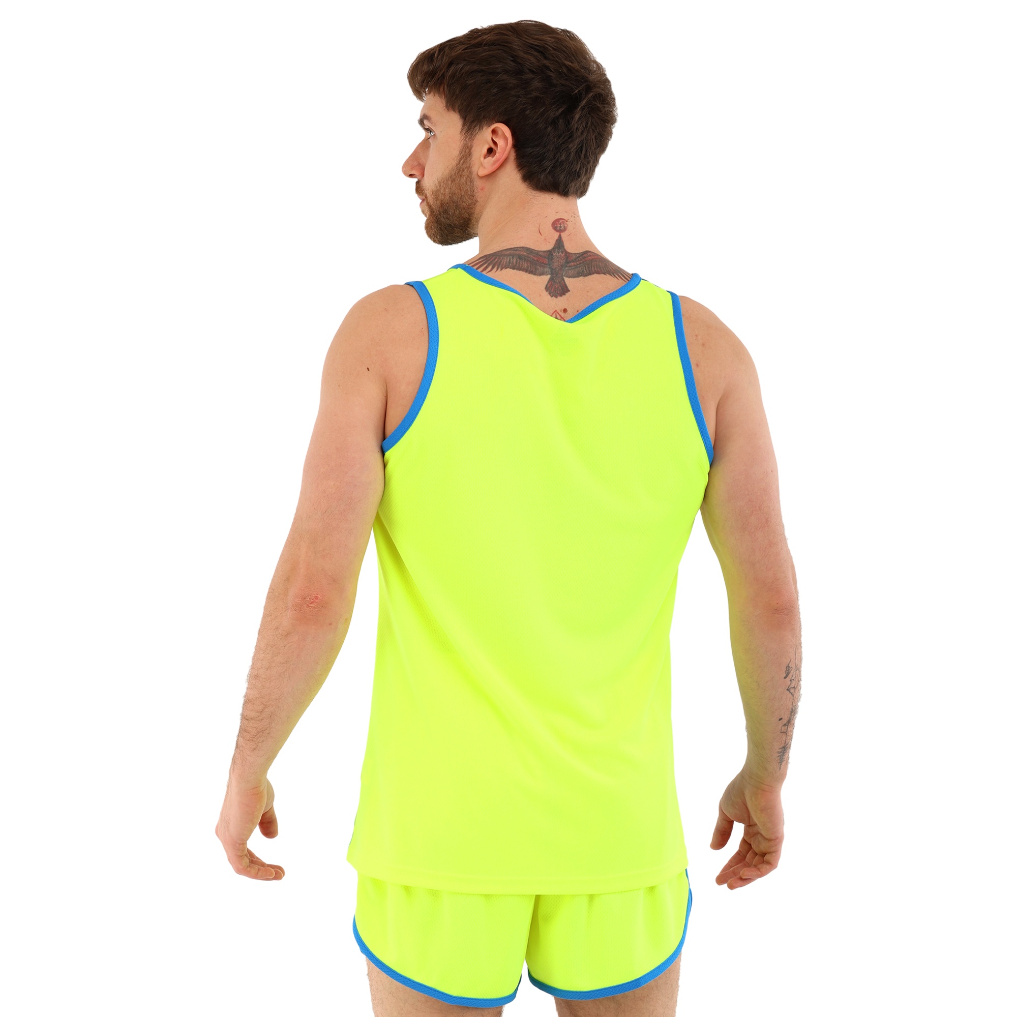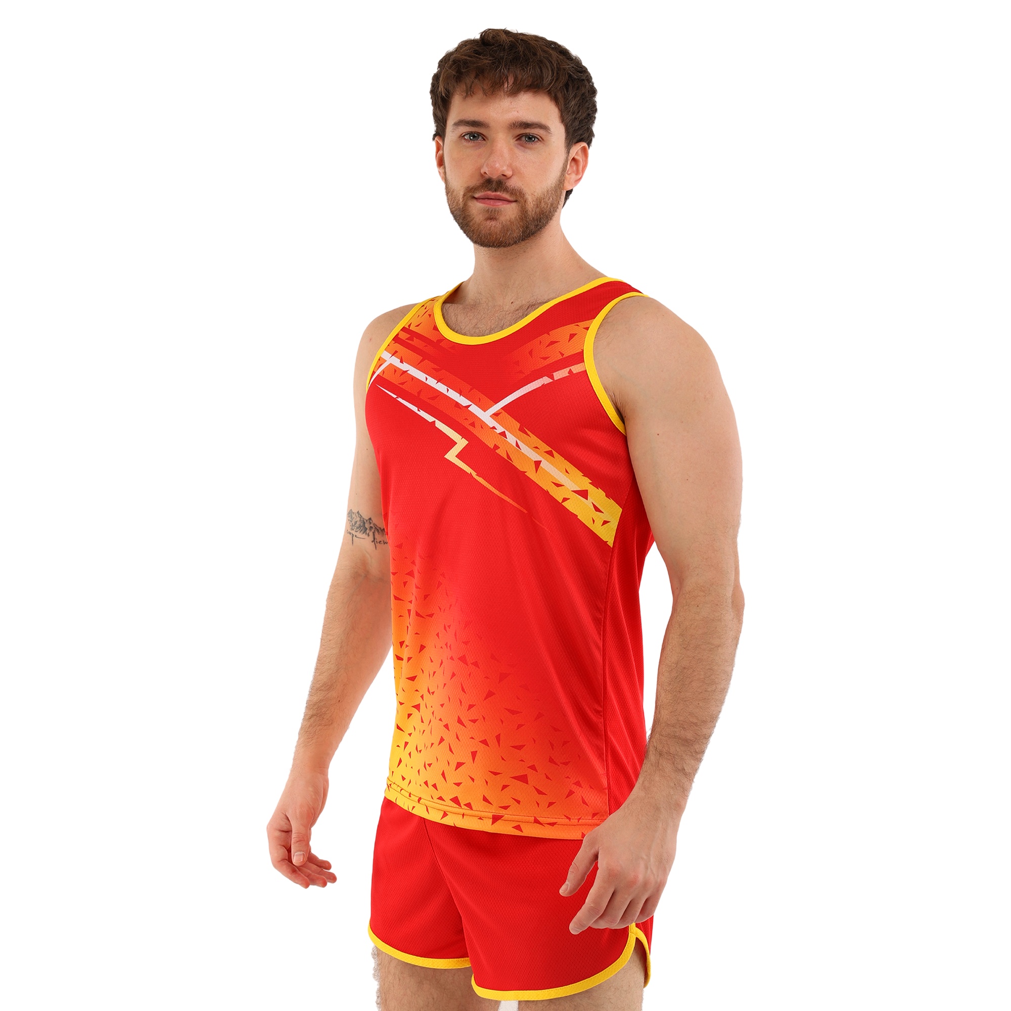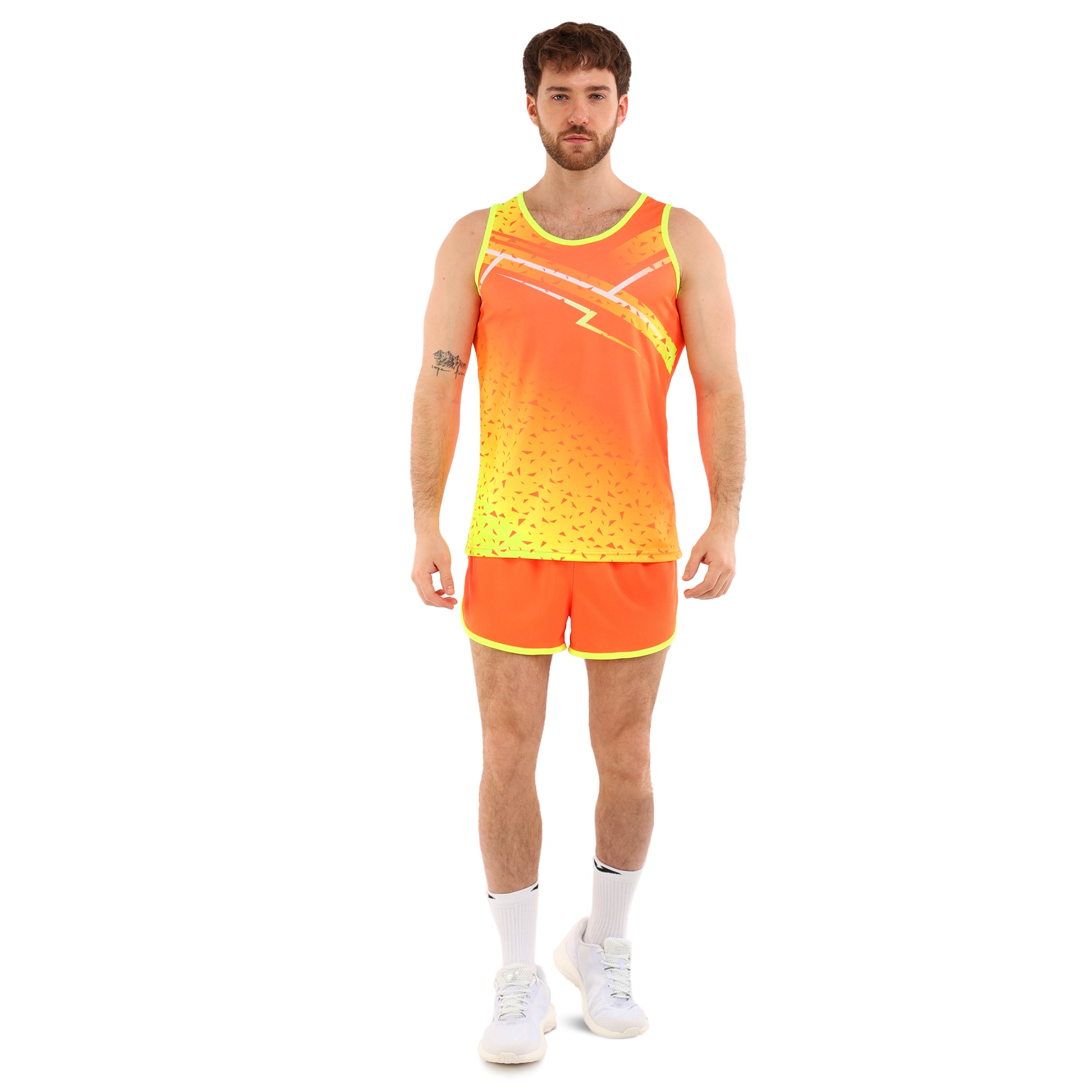Форма состоит из двух частей: шорт и майки, выполненных из высококачественного полиэстера. Полиэстер – это синтетический материал, славящийся своими отличными эксплуатационными характеристиками. Он устойчив к износу, не выгорает на солнце, быстро сохнет и не теряет форму даже после многочисленных стирок. Этот материал обладает хорошей воздухопроницаемостью, что особенно важно при интенсивных физических нагрузках, поскольку обеспечивает оптимальную терморегуляцию и предотвращает перегрев.Шорты короткие, на резинке, что обеспечивает надежную фиксацию на талии и комфортное прилегание к телу. Благодаря эластичному поясу шорты не сдавливают и не натирают кожу, что делает их идеальными для длительных тренировок. Короткая длина модели обеспечивает полную свободу движений, не ограничивая атлета ни в беге, ни в прыжках.