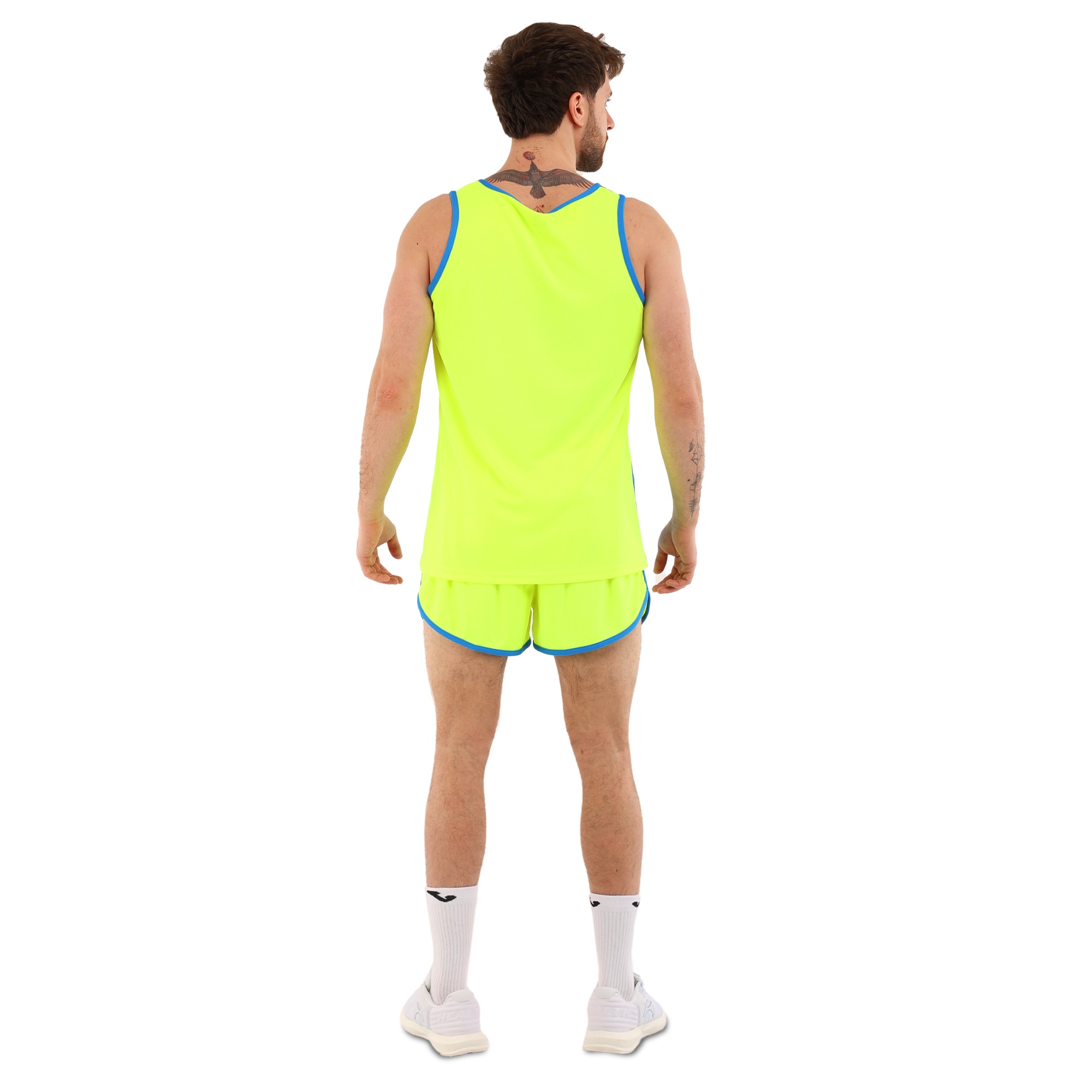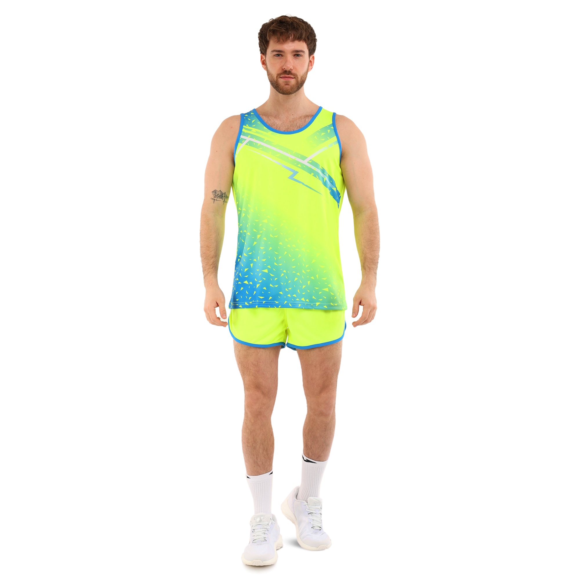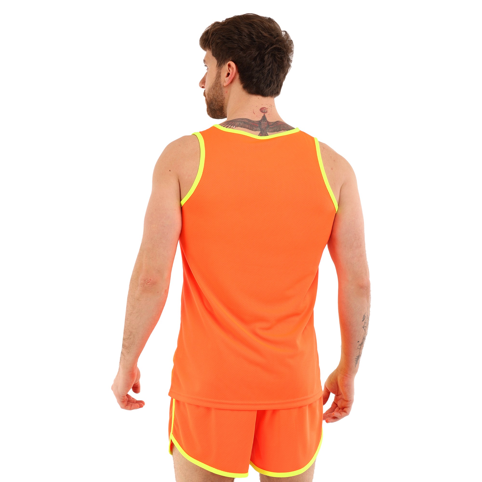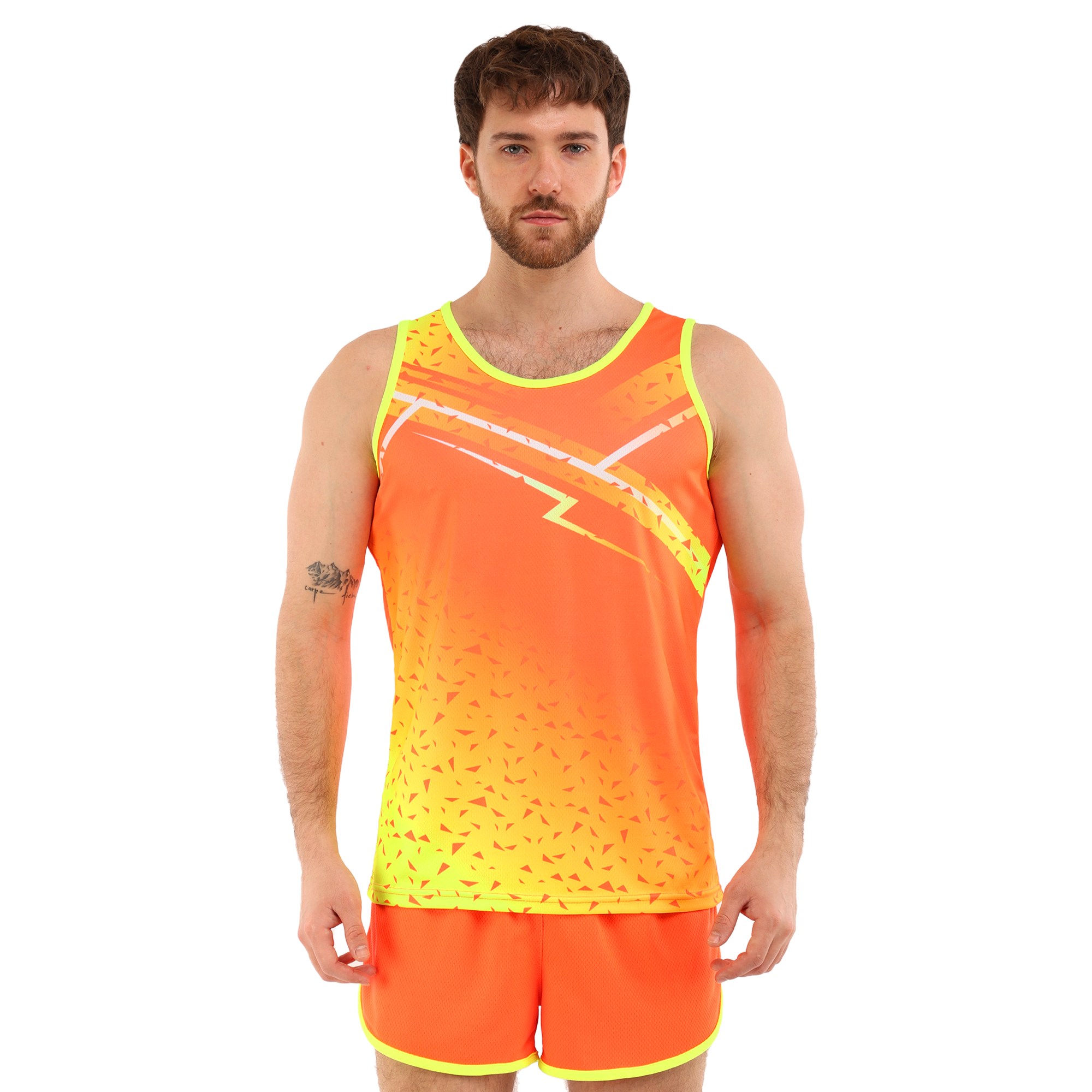 Форма состоит из двух частей: шорт и майки, выполненных из высококачественного полиэстера. Полиэстер – это синтетический материал, славящийся своими отличными эксплуатационными характеристиками. Он устойчив к износу, не выгорает на солнце, быстро сохнет и не теряет форму даже после многочисленных стирок. Этот материал обладает хорошей воздухопроницаемостью, что особенно важно при интенсивных физических нагрузках, поскольку обеспечивает оптимальную терморегуляцию и предотвращает перегрев.Шорты короткие, на резинке, что обеспечивает надежную фиксацию на талии и комфортное прилегание к телу. Благодаря эластичному поясу шорты не сдавливают и не натирают кожу, что делает их идеальными для длительных тренировок. Короткая длина модели обеспечивает полную свободу движений, не ограничивая атлета ни в беге, ни в прыжках.