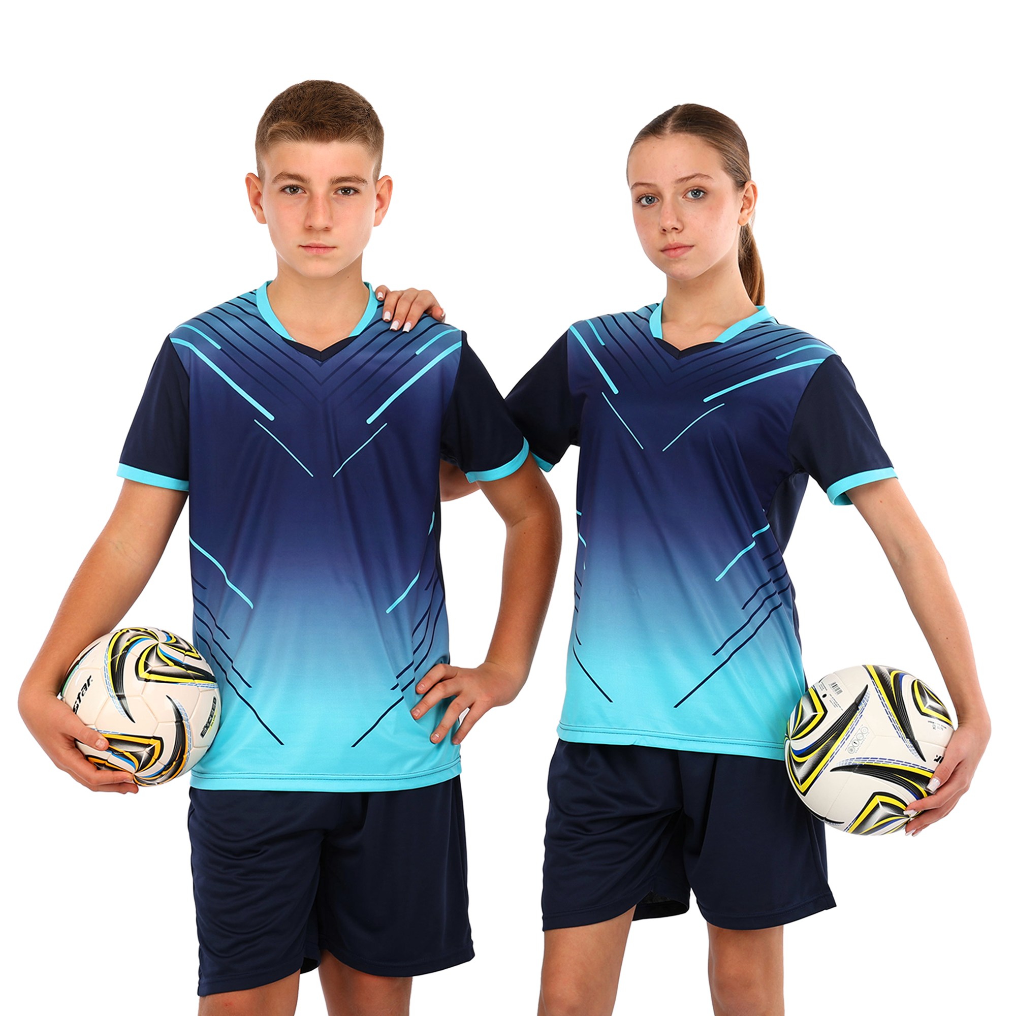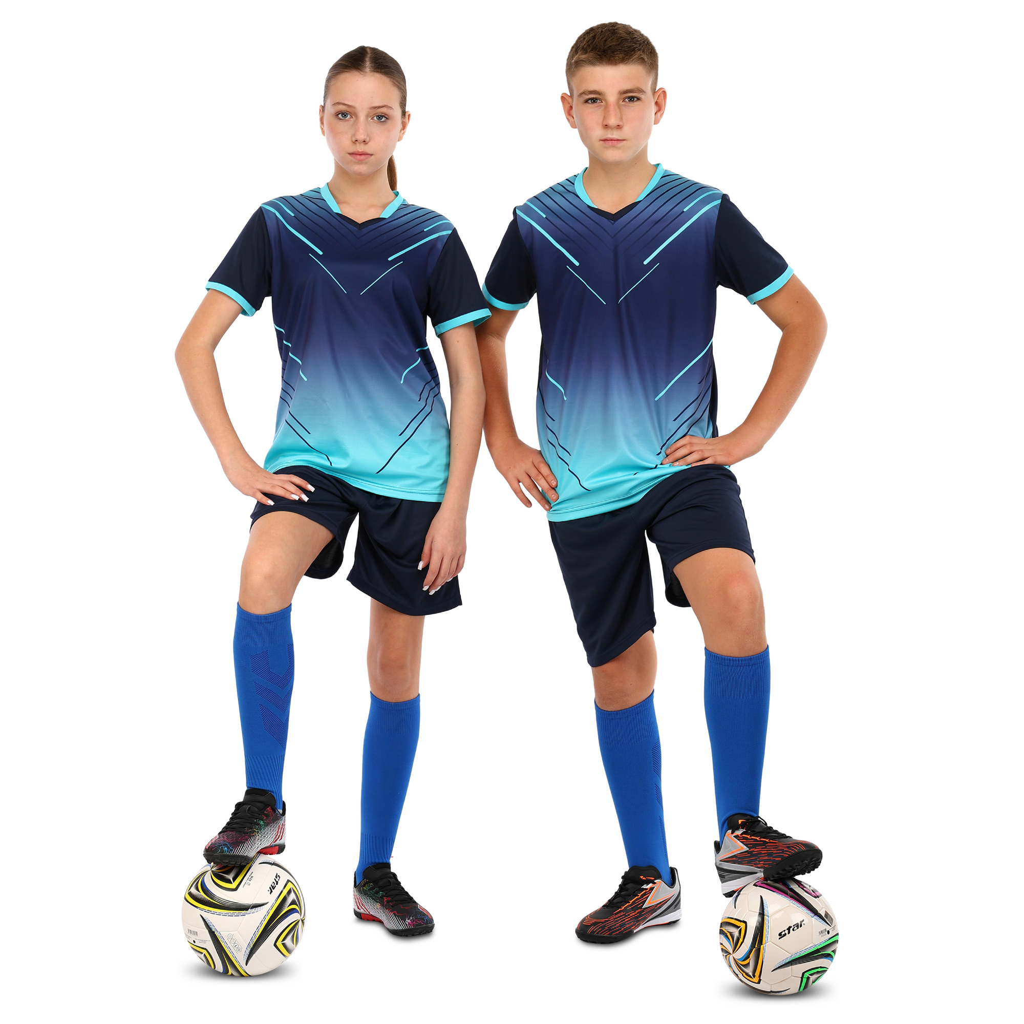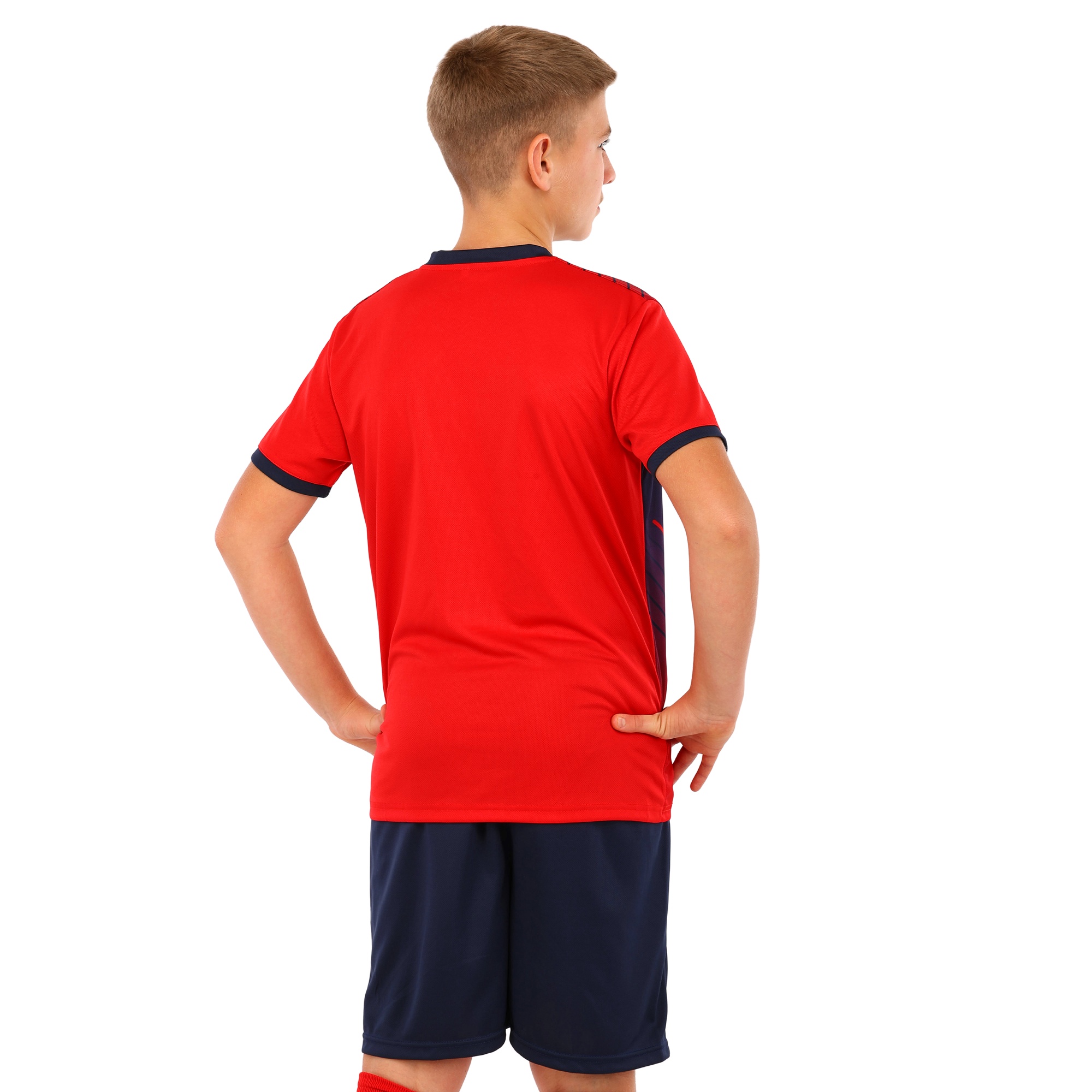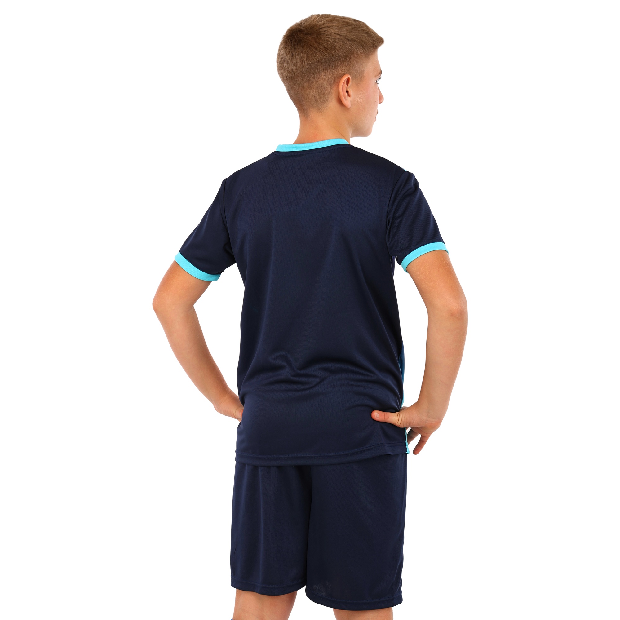 Комплект детской футбольной формы включает удобную футболку и шорты прямого кроя. Он обеспечивает свободу движений и чувство легкости на тренировках, позволяя играть в любую погоду. Аккуратный пошив с гладкими швами и прочная отделка делают комплект комфортным и долговечным.