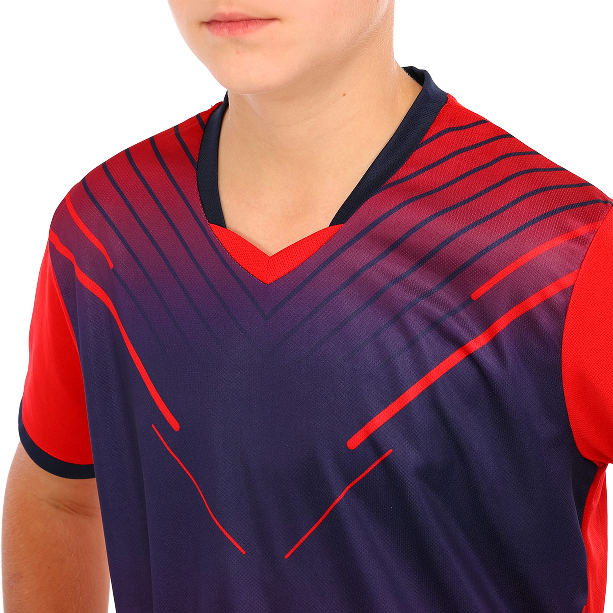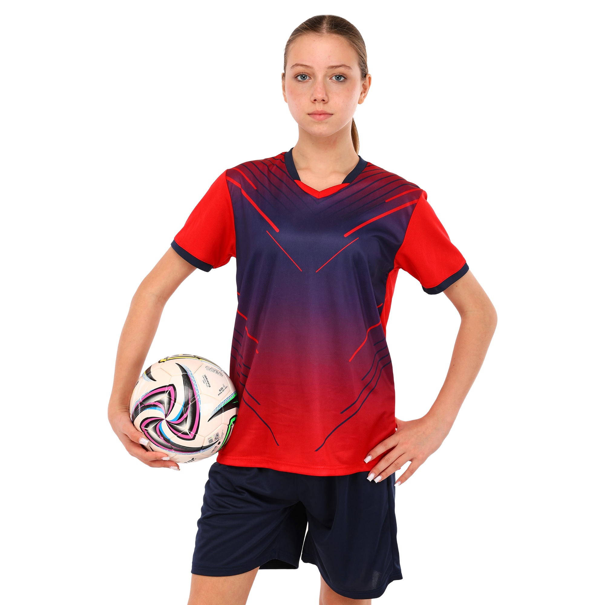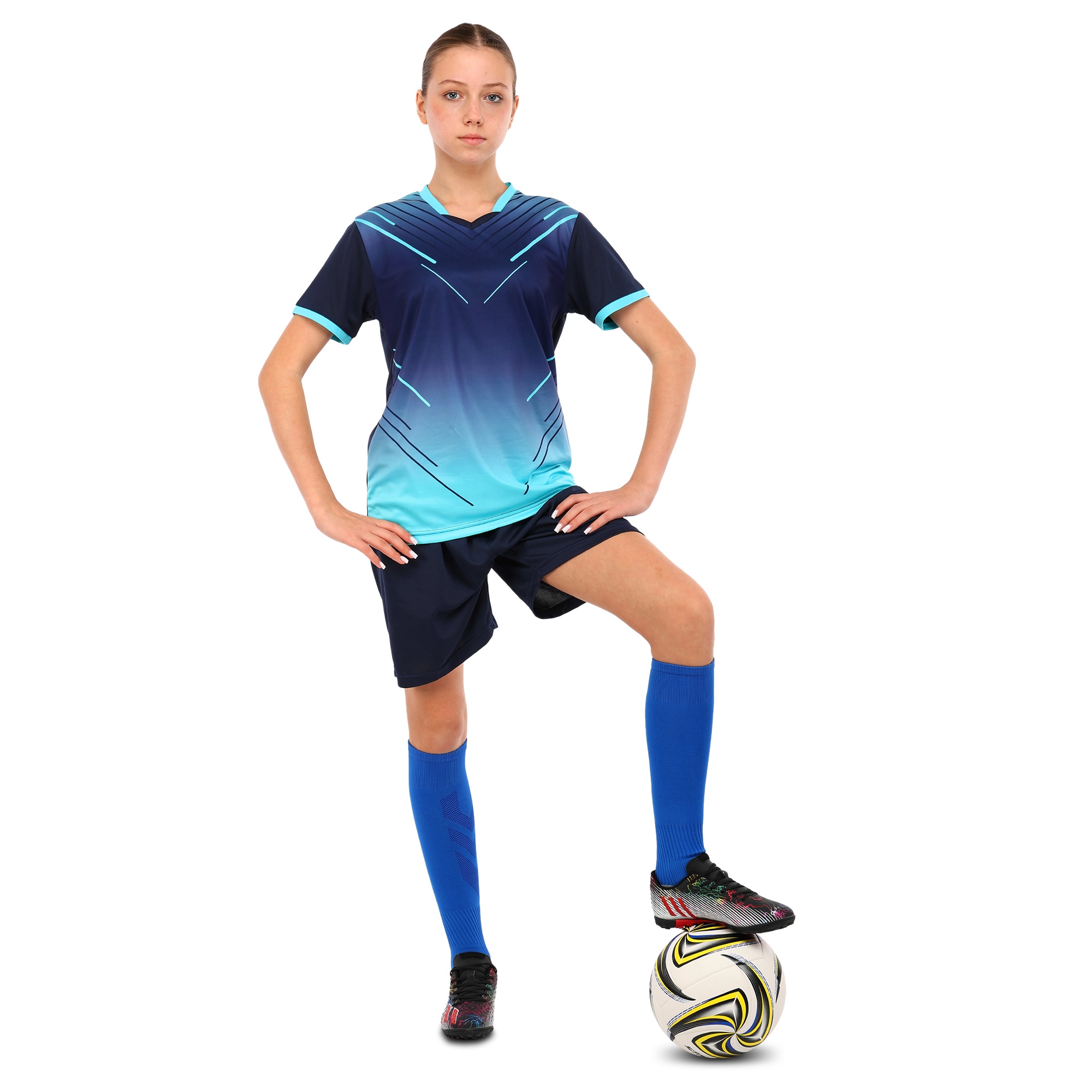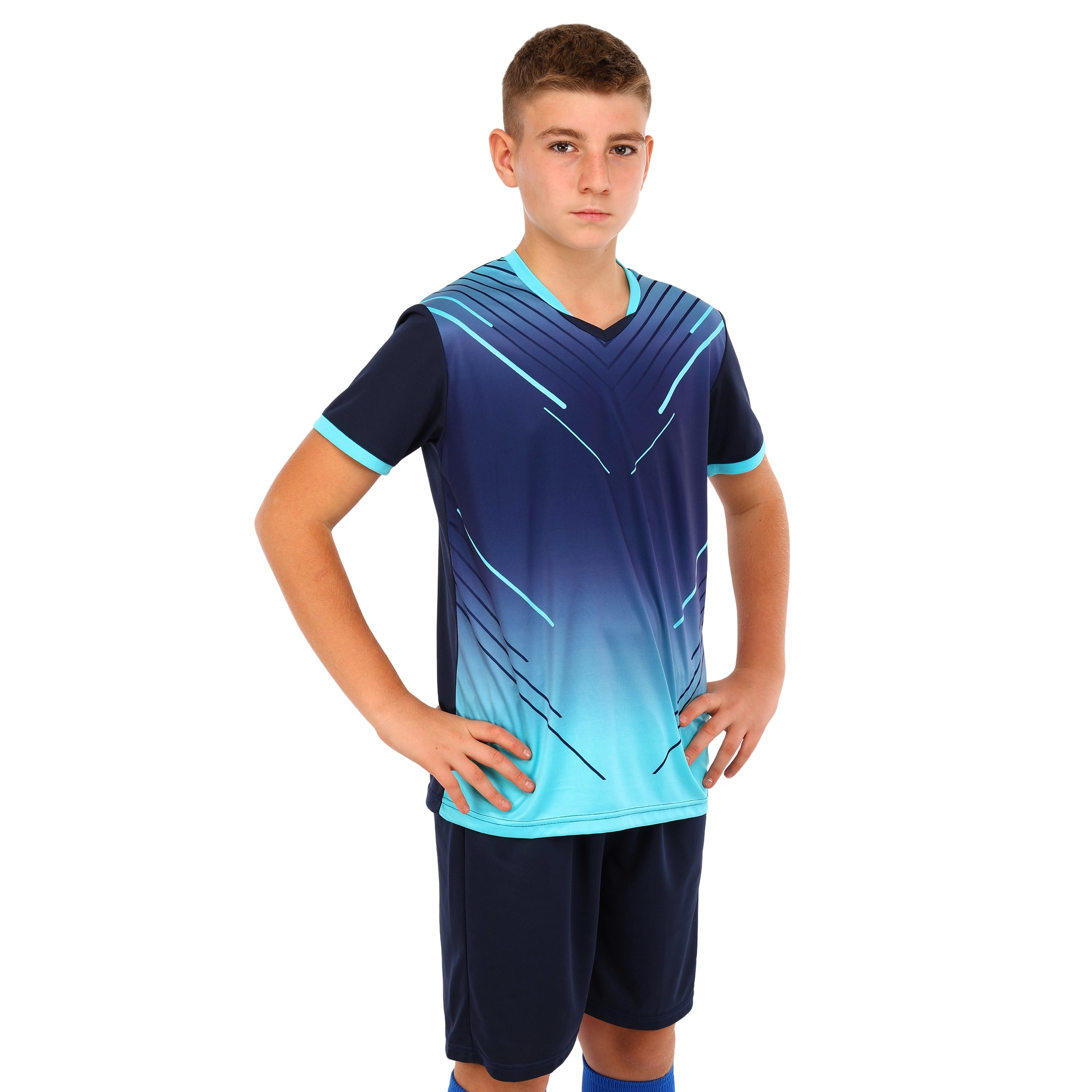 Комплект детской футбольной формы включает удобную футболку и шорты прямого кроя. Он обеспечивает свободу движений и чувство легкости на тренировках, позволяя играть в любую погоду. Аккуратный пошив с гладкими швами и прочная отделка делают комплект комфортным и долговечным.