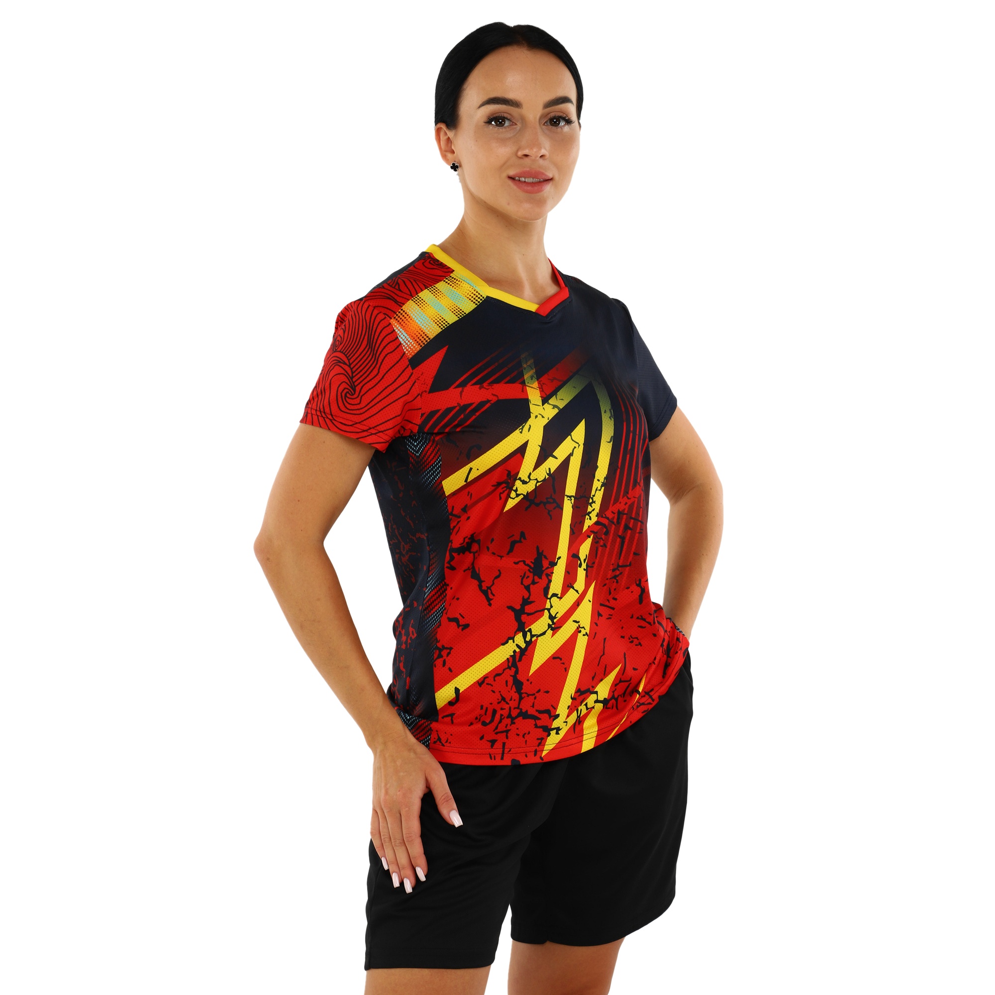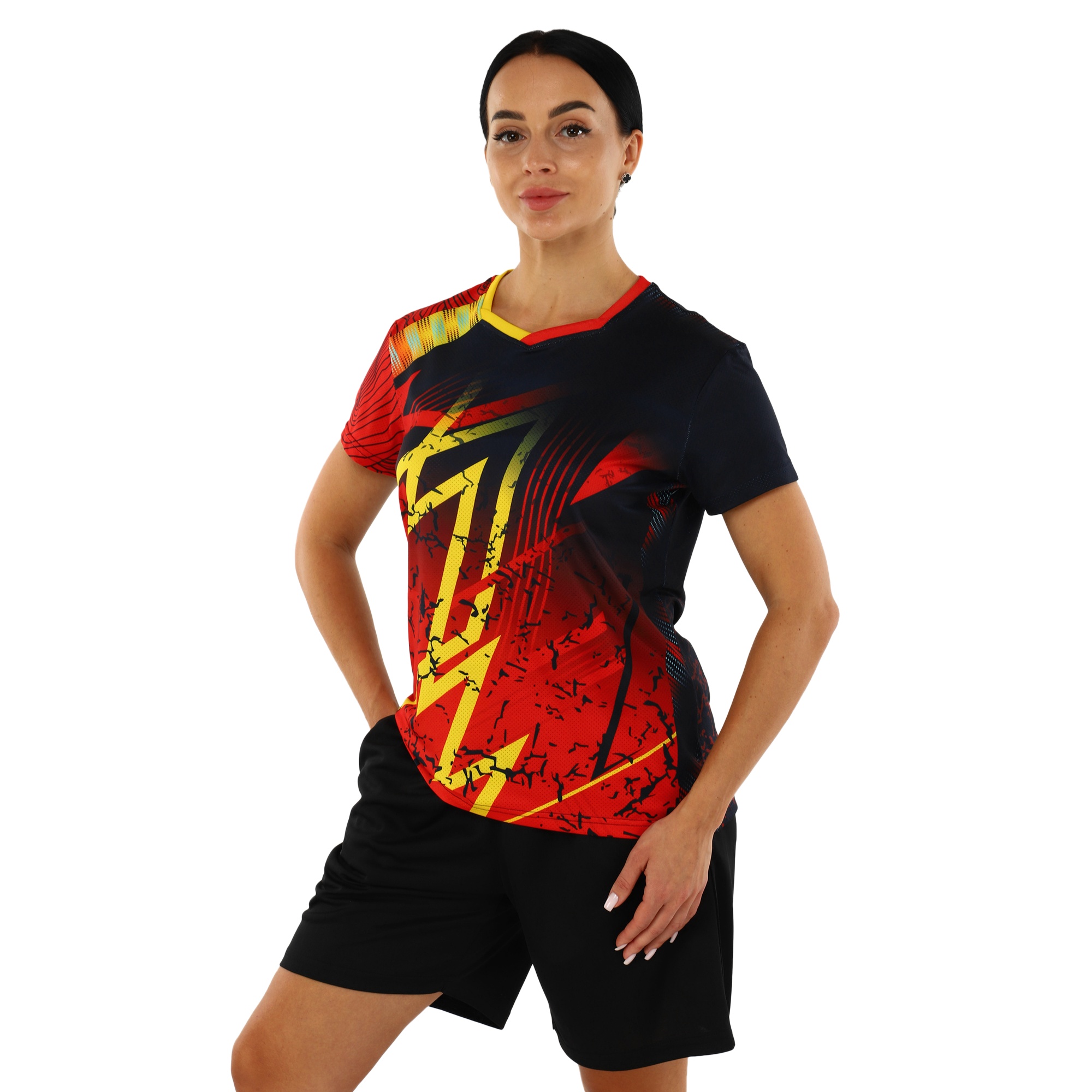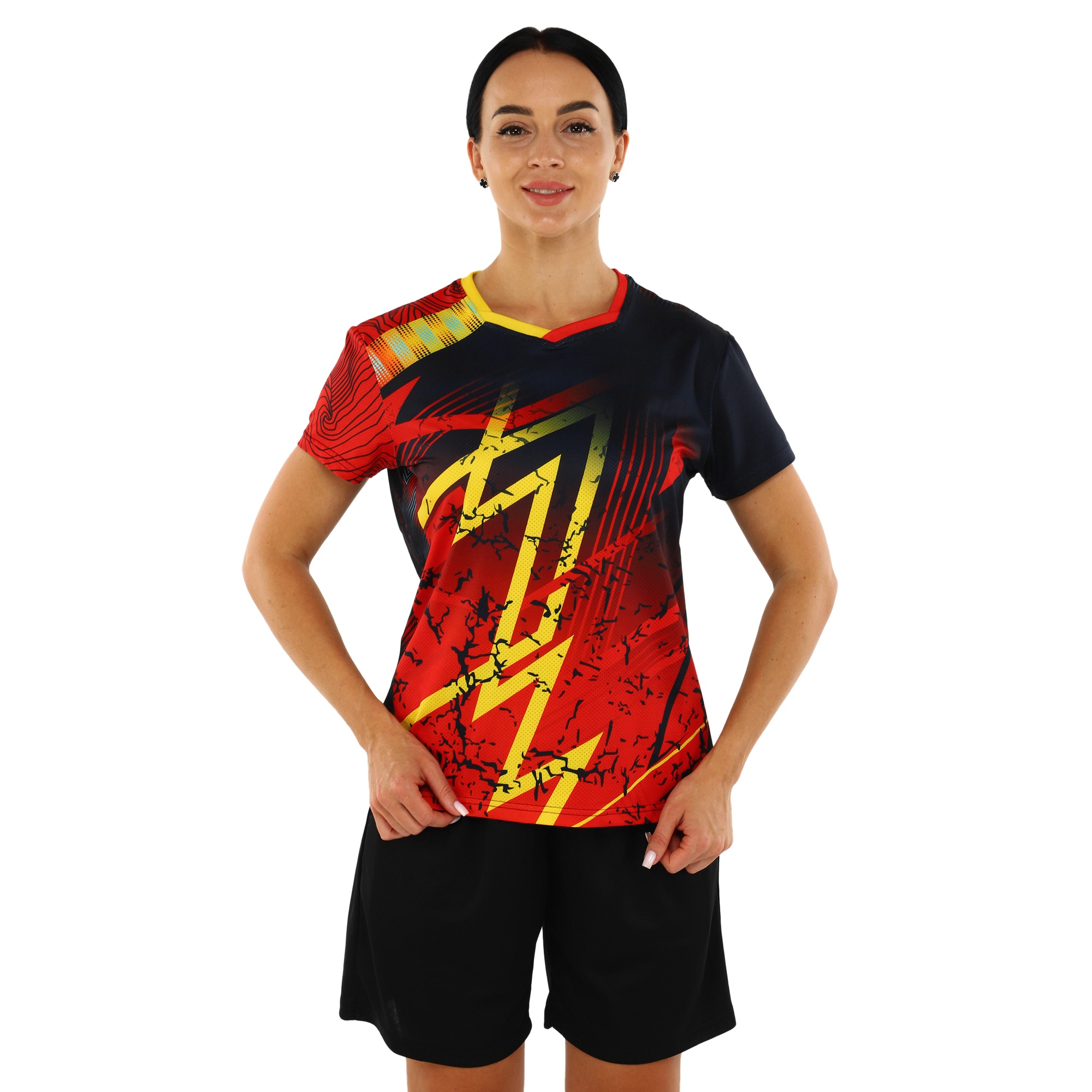 Шорты, входящие в комплект, имеют эластичный пояс, который способствует удобной и надежной посадке. Легкость и эластичность материала позволяют спортсменке свободно двигаться по площадке, не чувствуя ограничений. Благодаря гладкой внутренней поверхности шорт, минимизируется риск натираний и дискомфорта во время интенсивных игр.