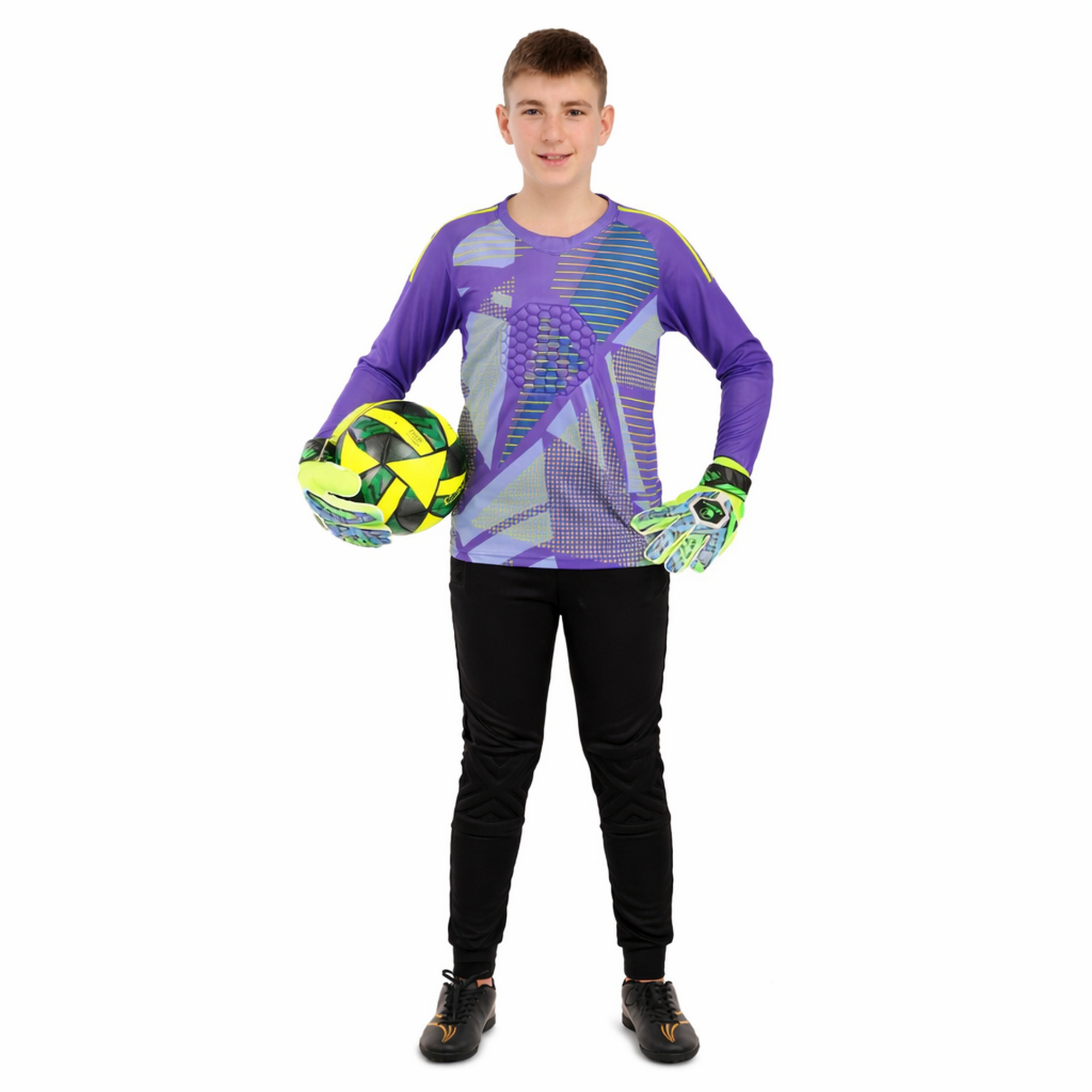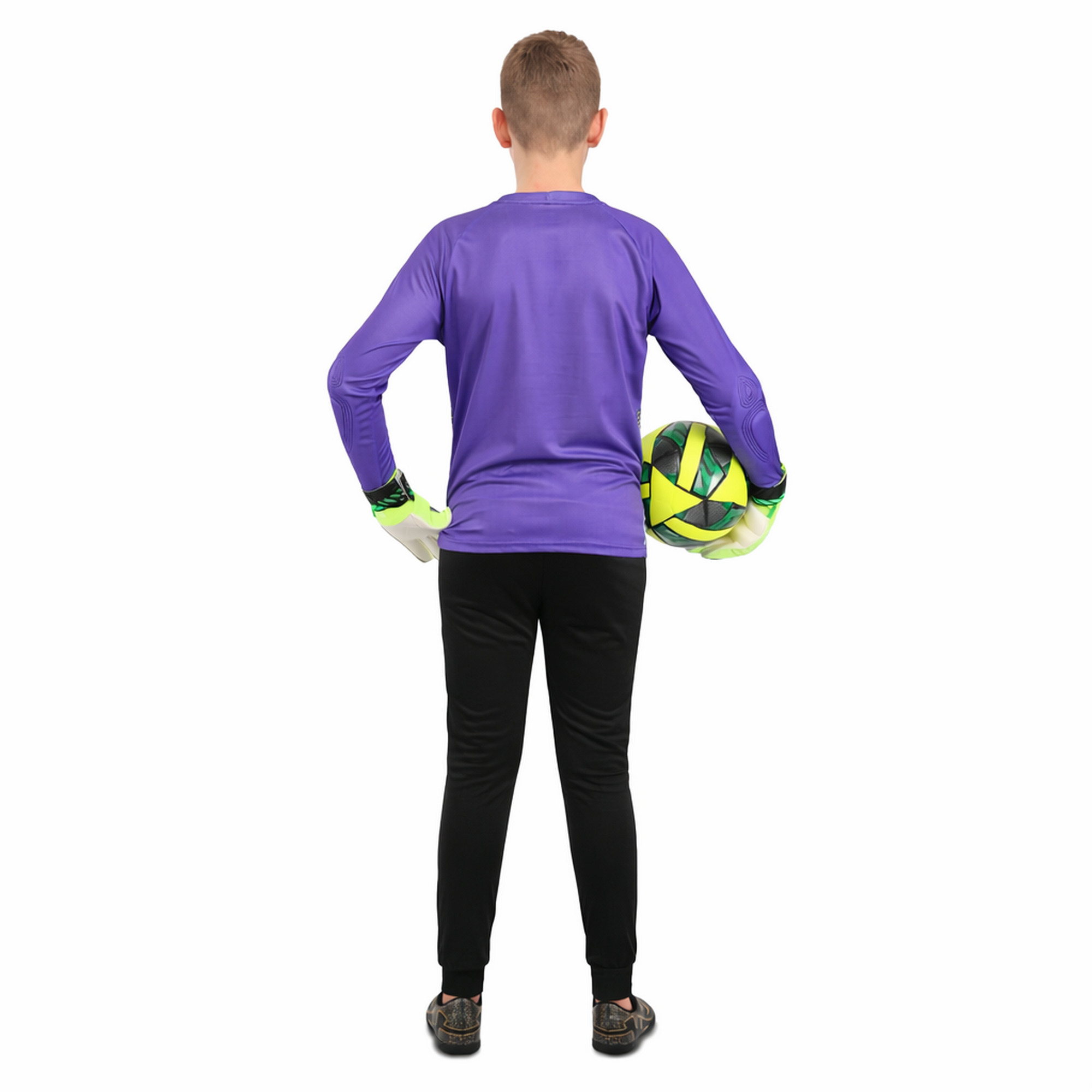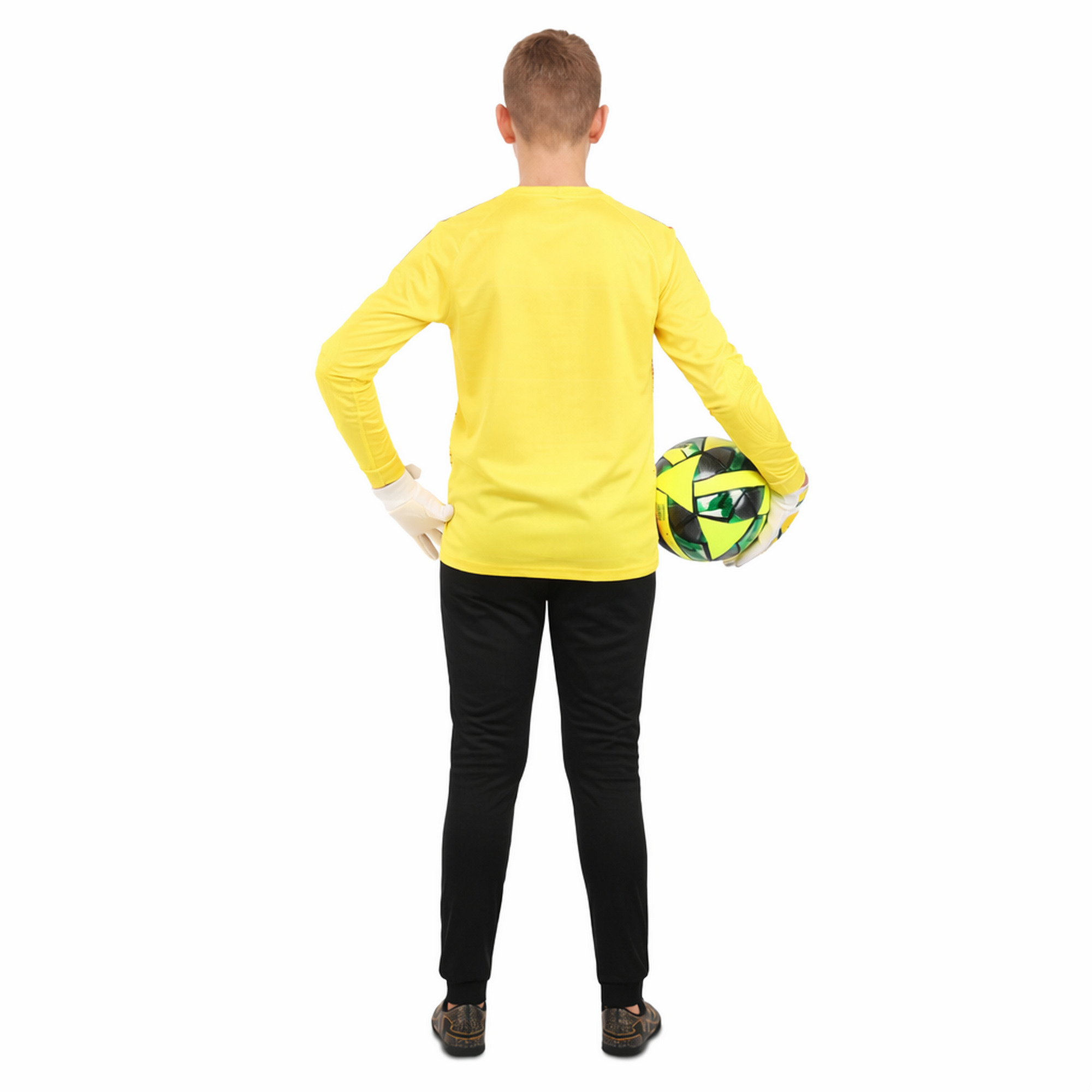 Форма футбольного вратаря SP-Sport предназначена для детей. Комплект включает вратарский свитер и штаны. Оба элемента экипировки изготовлены из полиэстера. Данная синтетическая ткань обеспечивает эффективный влагоотвод, пропускает воздух и не препятствует естественной терморегуляции. В случае падения на траву свитер с длинным рукавом и штаны защитят колени и локти ребёнка от царапин и ссадин. Футбольная экипировка обеспечивает вратарю максимальную свободу движений, возможность вытаскивать самые тяжёлые мячи. Вратарские штаны имеют специальные накладки в местах наиболее вероятного контакта с покрытием поля - на коленях и бёдрах. Аналогичная защитная вставка из мягкого материала расположена на груди.