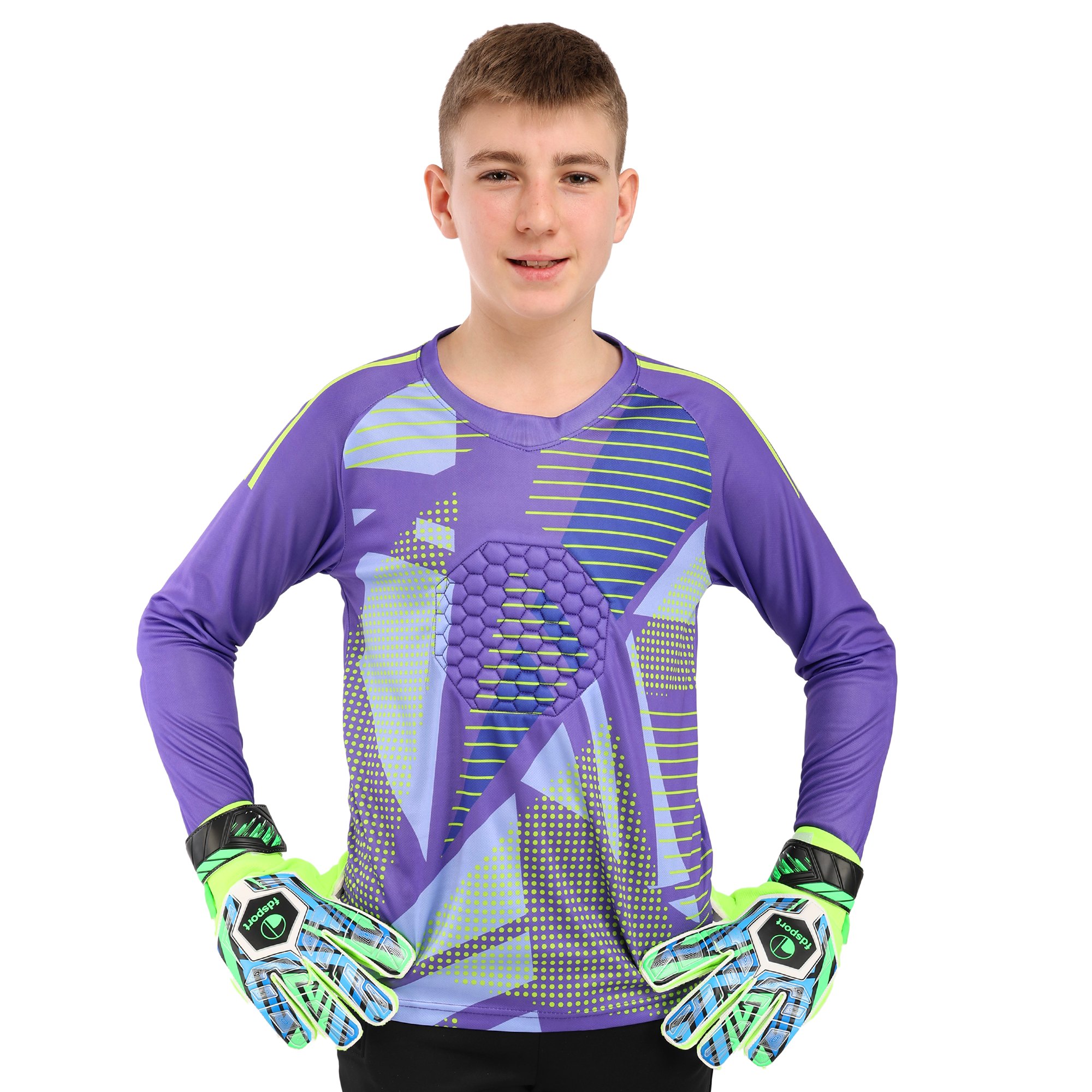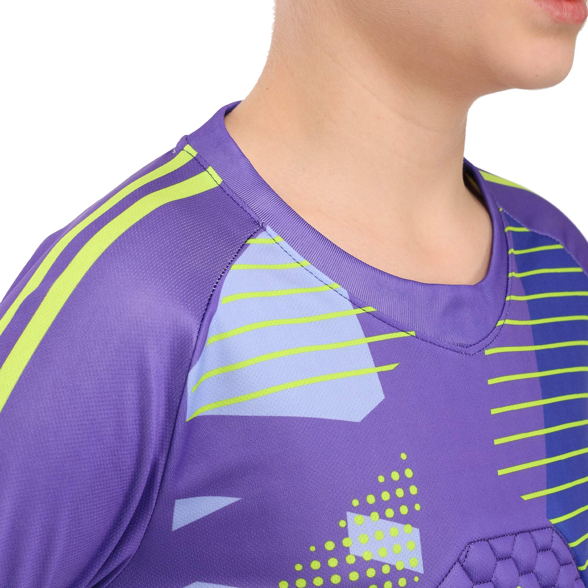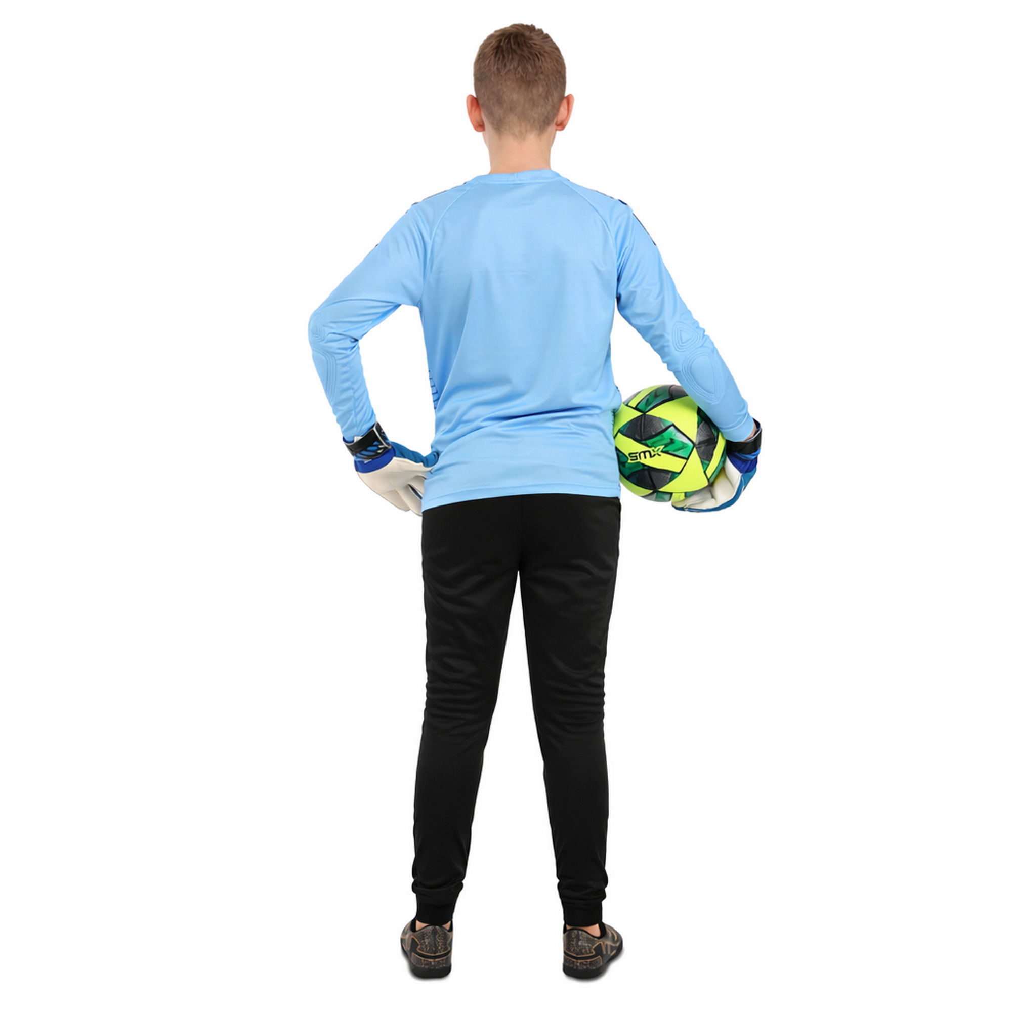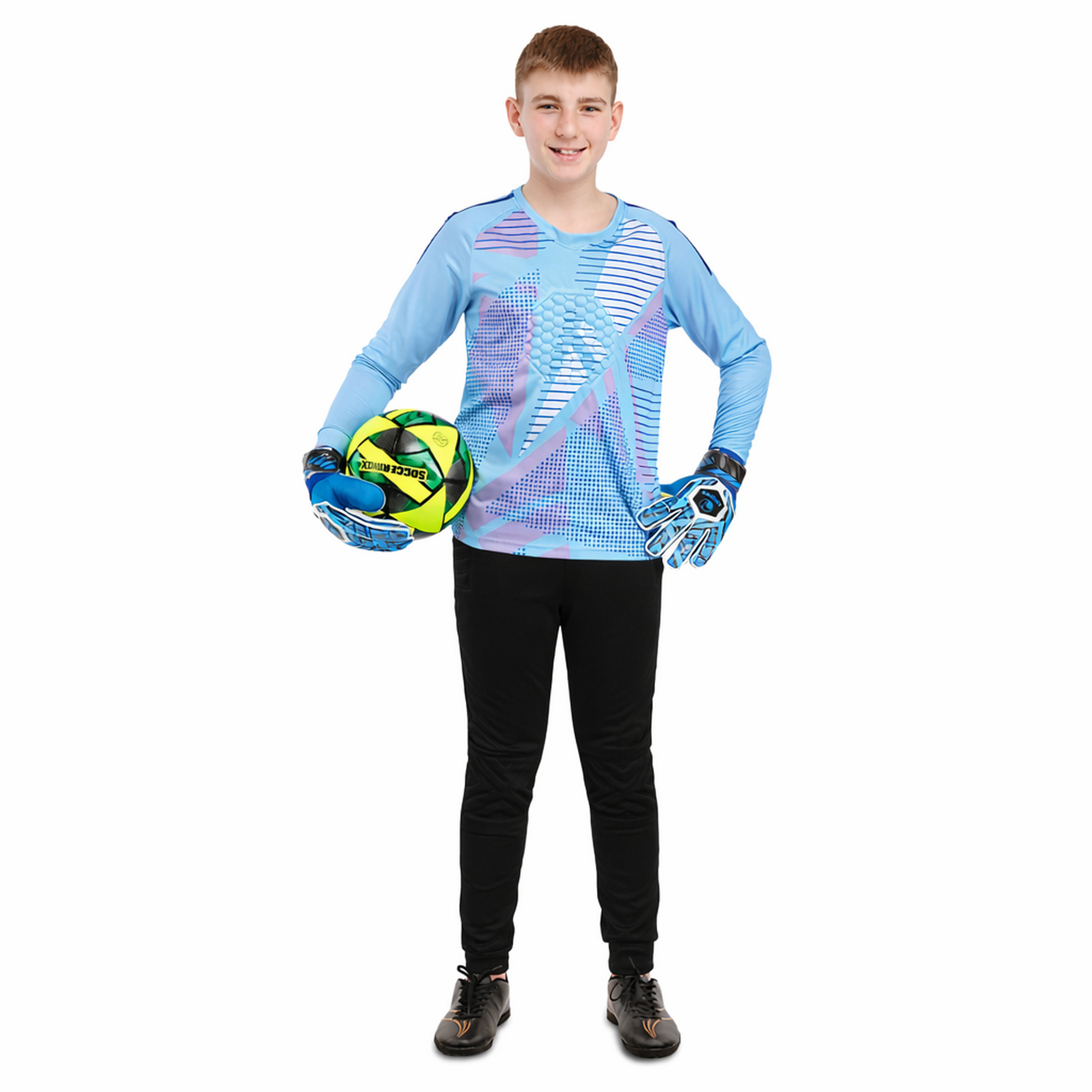 Форма футбольного вратаря SP-Sport предназначена для детей. Комплект включает вратарский свитер и штаны. Оба элемента экипировки изготовлены из полиэстера. Данная синтетическая ткань обеспечивает эффективный влагоотвод, пропускает воздух и не препятствует естественной терморегуляции. В случае падения на траву свитер с длинным рукавом и штаны защитят колени и локти ребёнка от царапин и ссадин. Футбольная экипировка обеспечивает вратарю максимальную свободу движений, возможность вытаскивать самые тяжёлые мячи. Вратарские штаны имеют специальные накладки в местах наиболее вероятного контакта с покрытием поля - на коленях и бёдрах. Аналогичная защитная вставка из мягкого материала расположена на груди.