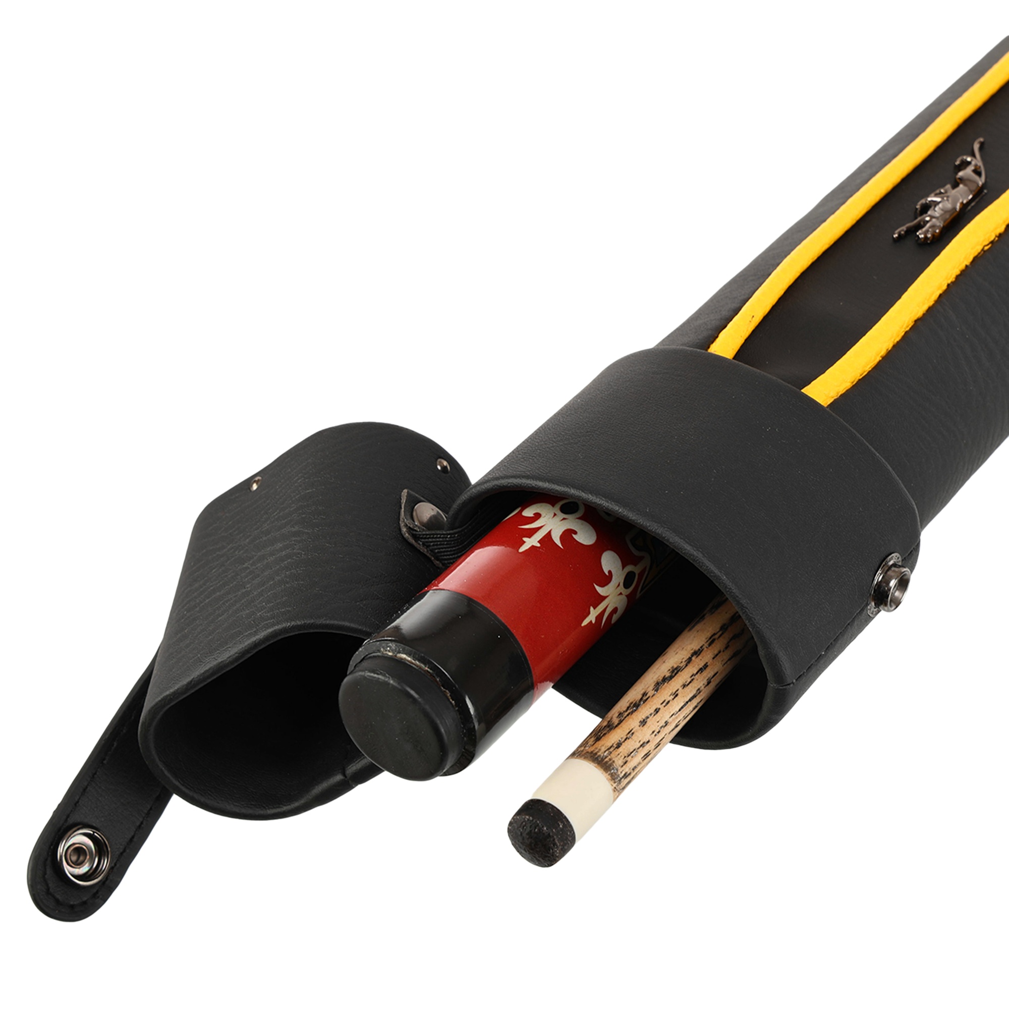 Тубус имеет стильный дизайн и практичную конструкцию, которая защищает кий от различных механических воздействий, а также от влаги. Удобная система закрытия обеспечивает быстрый доступ к инвентарю. Клапан фиксируется на кнопку.