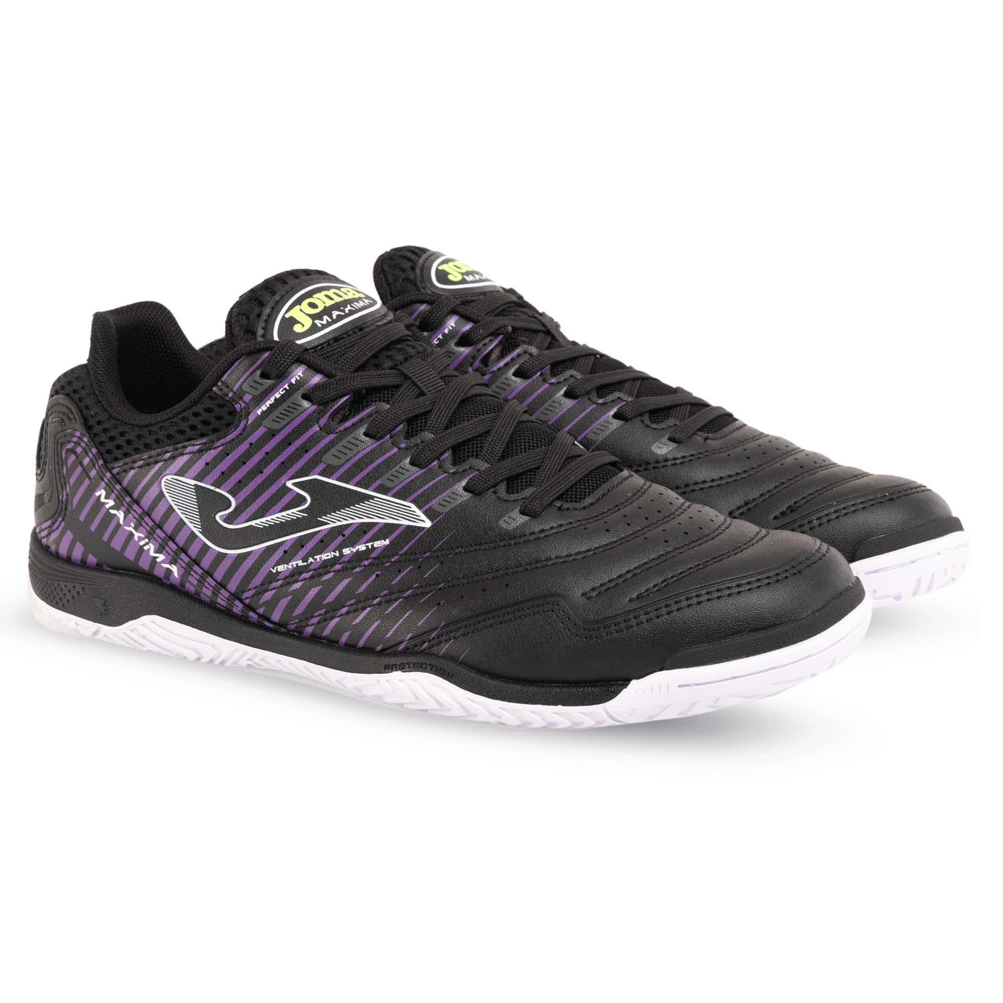 Joma MAXIMA - чрезвычайно прочная и технологичная обувь, предназначенная для игры в мини-футбол. Верх обуви изготовлен из современного синтетического материала FIBERTECH. Он придает ей особую прочность, легкость, а также обеспечивает отличный контроль мяча. Производитель усилил носок обуви по технологии Protection. Это позволяет избежать преждевременного износа футзалок. Также футзалки оснащены системой ROTATION, которая позволяет выполнять повороты в движении и на месте. Линии FLEXO помогают стопе занимать естественное положение во время движения. Подошва изготовлена из высококачественной и долговечной резины по технологии DURABILITY. Она устойчива к истиранию, имеет минимальный протектор, который обеспечивает отличное сцепление с гладкой поверхностью напольного покрытия в закрытом помещении.