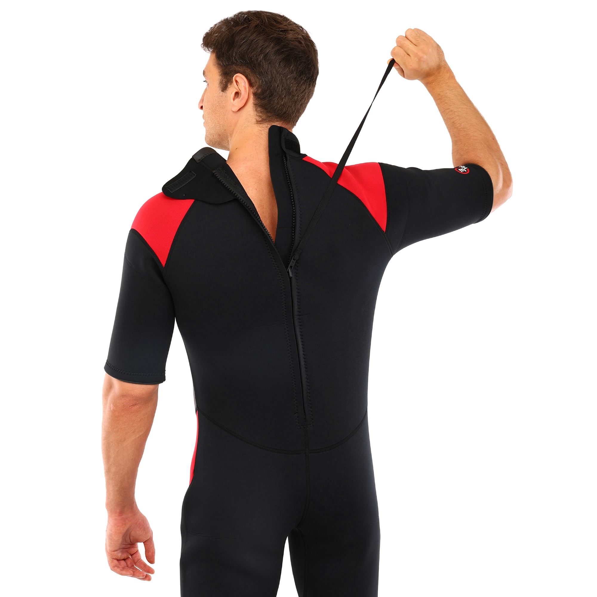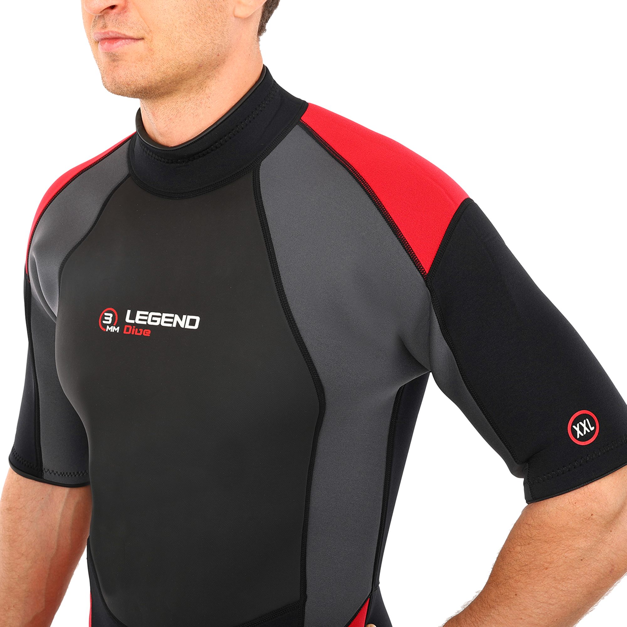 Гидрокостюм короткий для серфинга и водных лыж мужской LEGEND PL-6407 3мм черный-красный-серый
