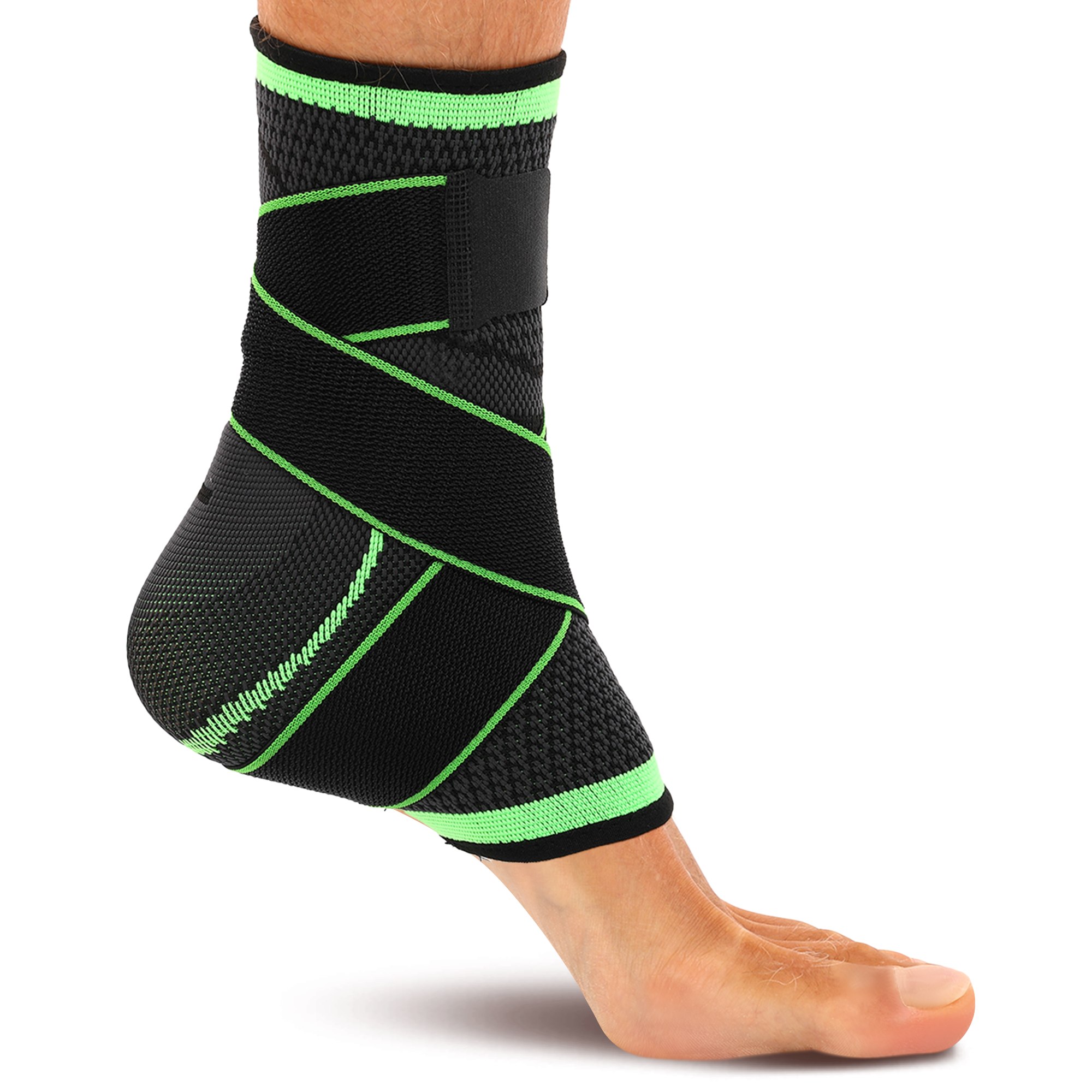 Ремень фиксации — есть: эластичная лента плотно охватывает голеностоп по диагонали, усиливая компрессию и надёжно фиксируя сустав. Такая конструкция особенно помогает при восстановлении после растяжений или слабости связок — именно там, где нужна точечная стабилизация.