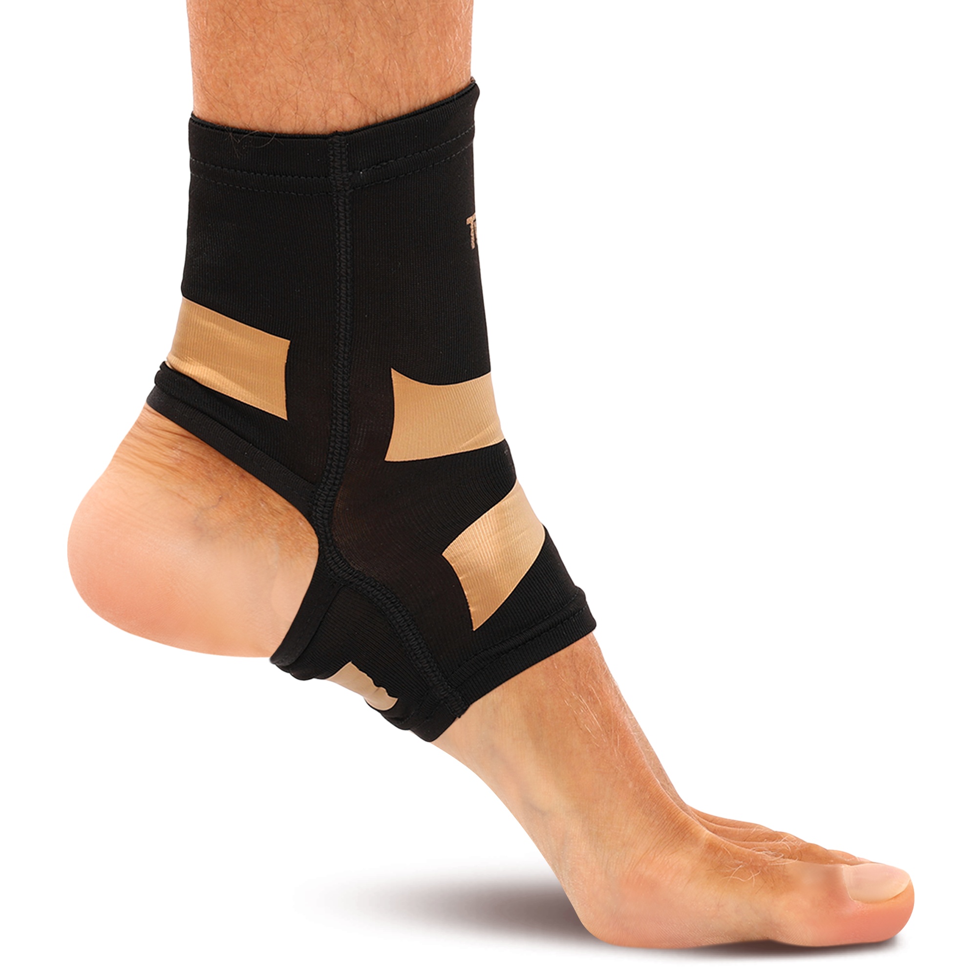 Бандаж на голеностоп эластичный TVFF 904301 размер S-XL 1шт черный-золотой Код 904301