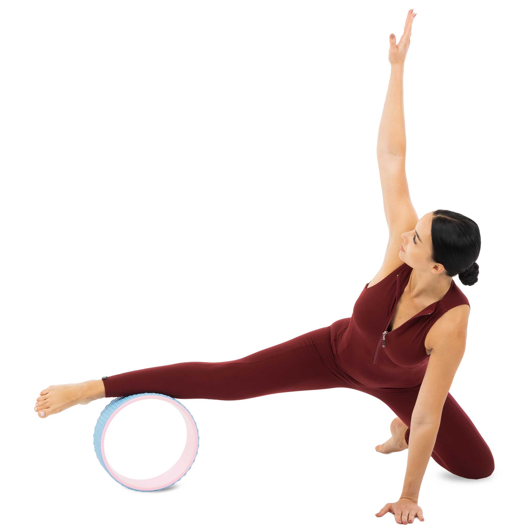 Отличительной чертой этого колеса является его эффектный двухцветный дизайн с плавным контрастом между внутренним и внешним слоями. Такое оформление не только радует глаз, но и придаёт аксессуару премиальный вид — отличное дополнение к вашему йога-пространству.