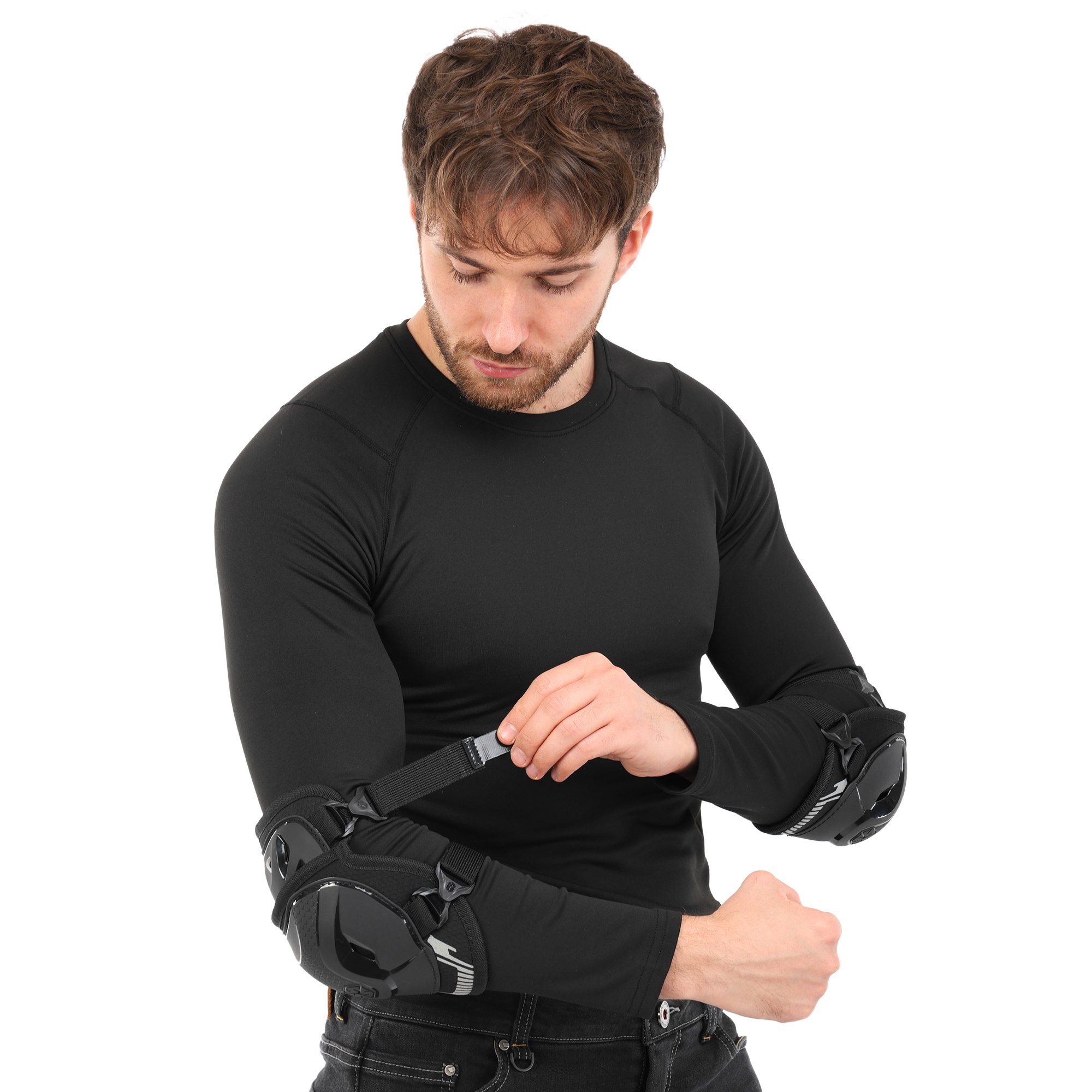 Каждый элемент экипировки оснащен инновационными гибкими протекторами из TPU. Они обеспечивают высокое ударное сопротивление, сводят к минимуму риск травм в результате падений, ударов и скольжения по твердому дорожному покрытию. Защита имеет сертификат качества класса CE и успешно прошла тест стандарта ЕС EN1621-1: 2012 Impact Professional Test для профессиональной защиты.