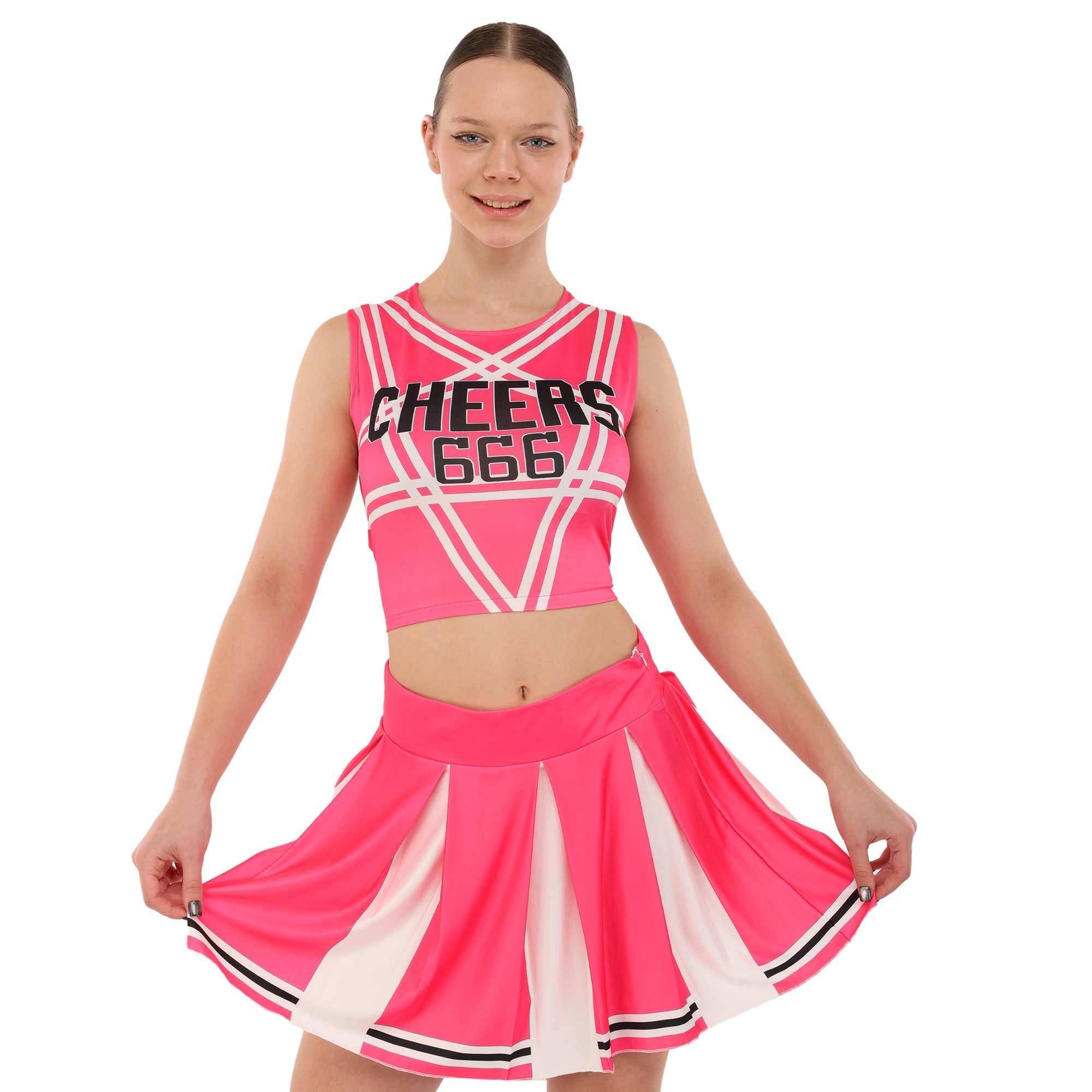 Яркий и удобный комплект для занятий чирлидингом выполнен из качественных материалов с максимальным вниманием к потребностям спортсменок. Комфортная посадка без ограничения движений, стильный дизайн и устойчивость к износу делают его отличным вариантом для интенсивных тренировок и выступлений на соревнованиях.