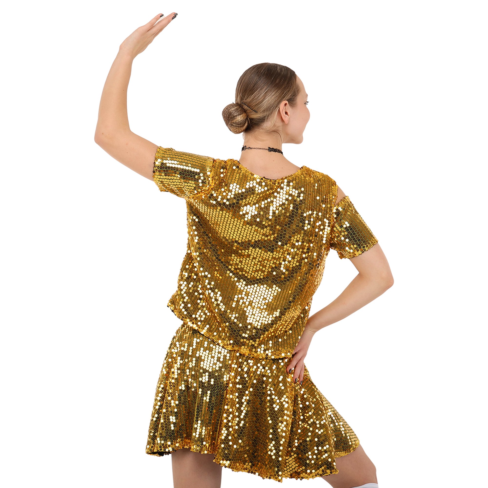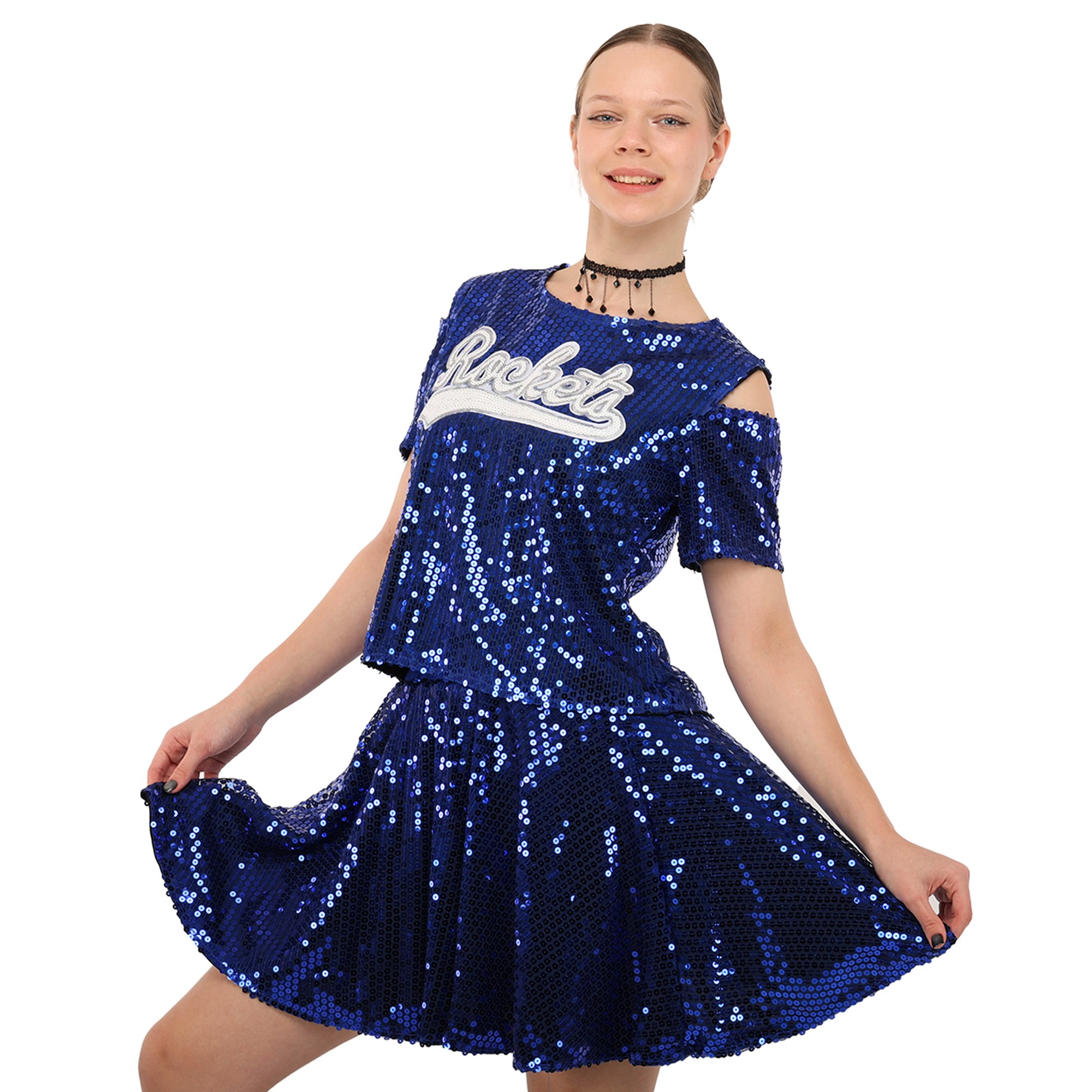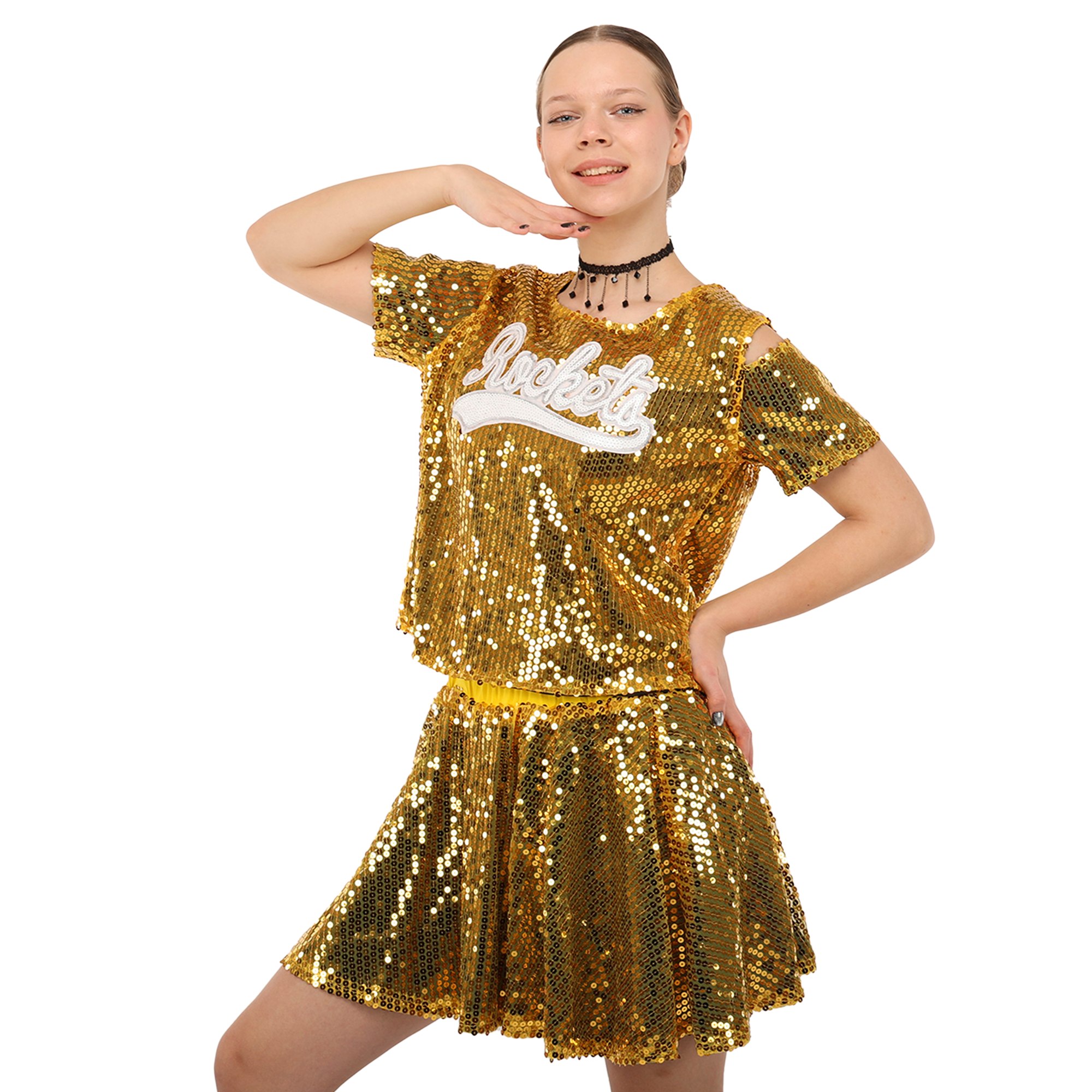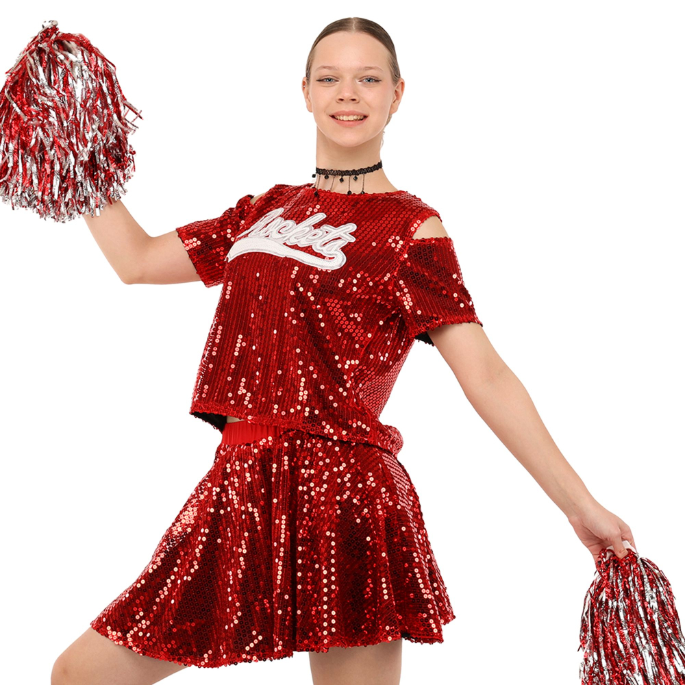 Костюм для чирлидинга кроп-топ и юбка клёш с блестящими пайетками SP-Sport CO-100 размер S-XXL цвета в ассортименте Код CO-100
