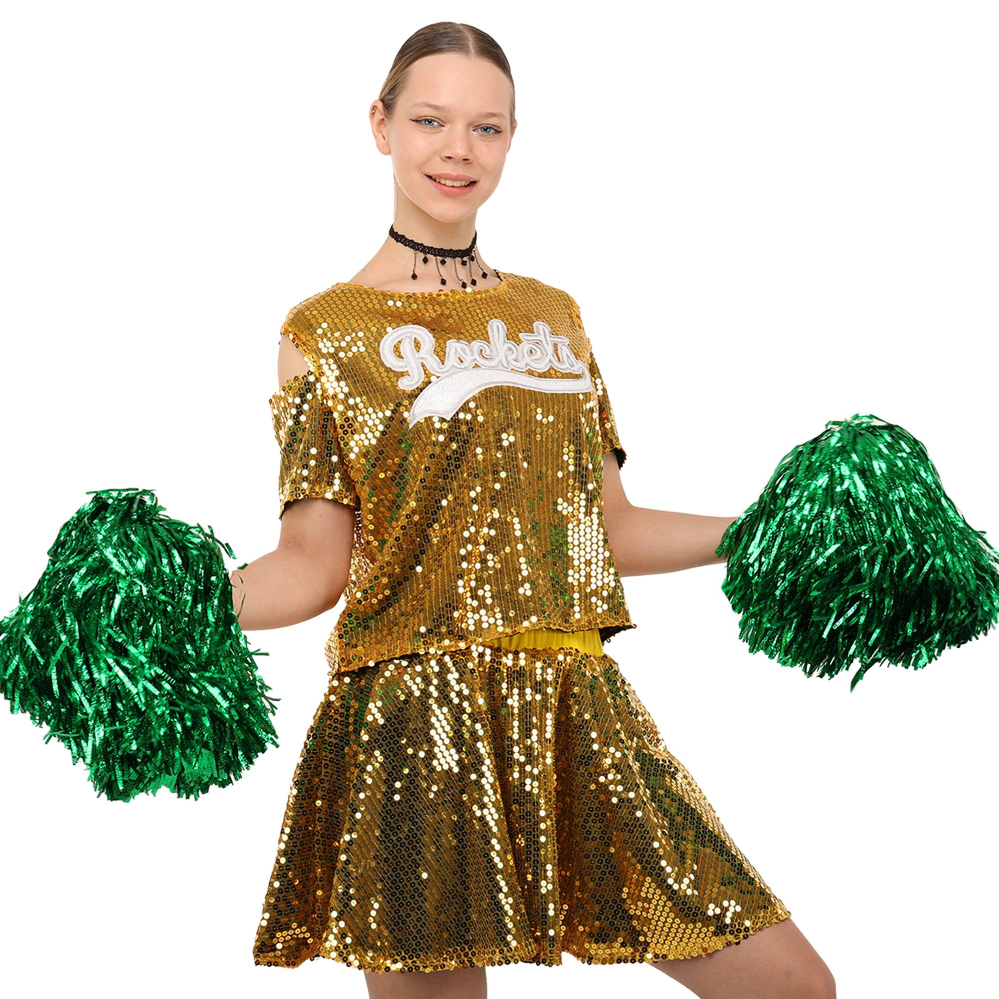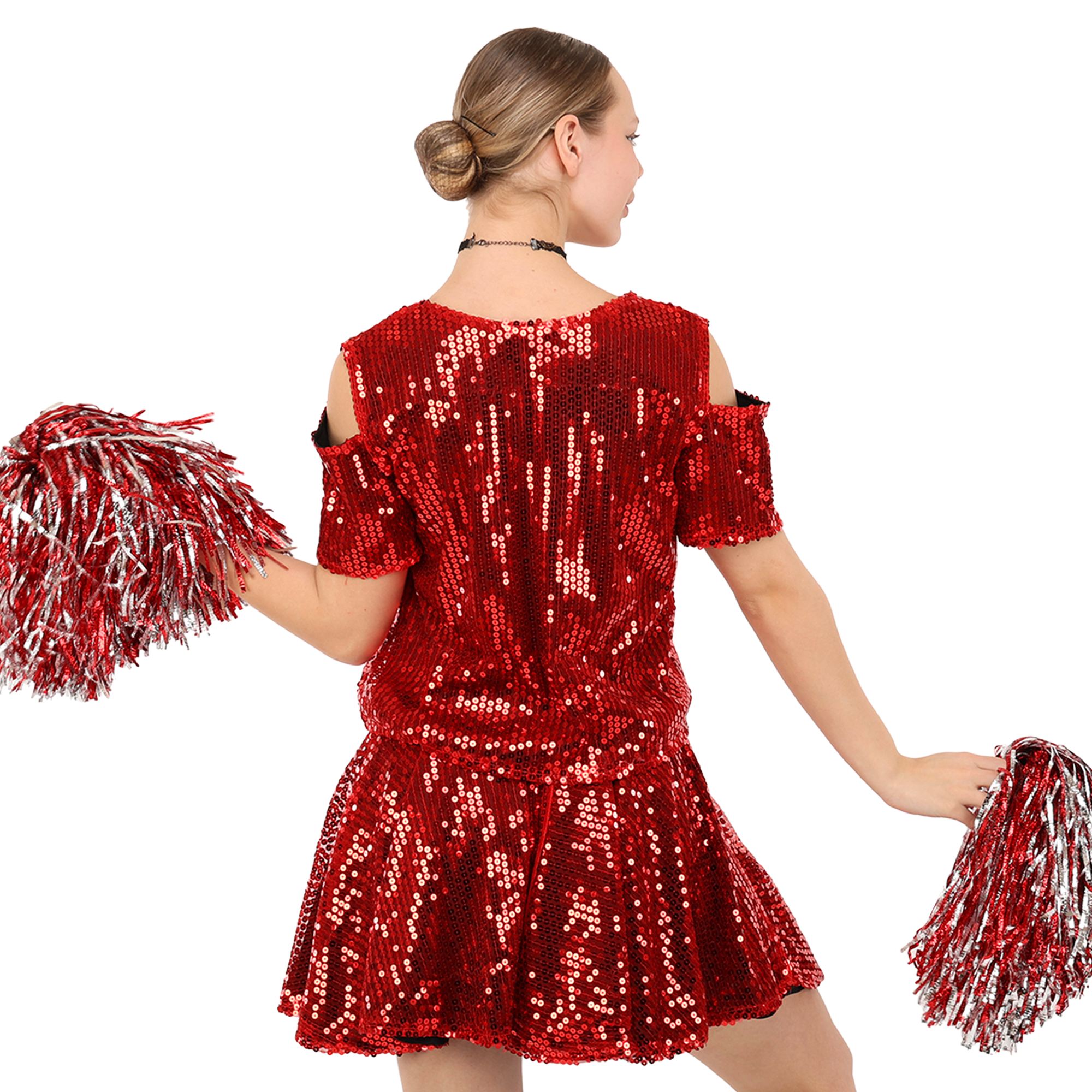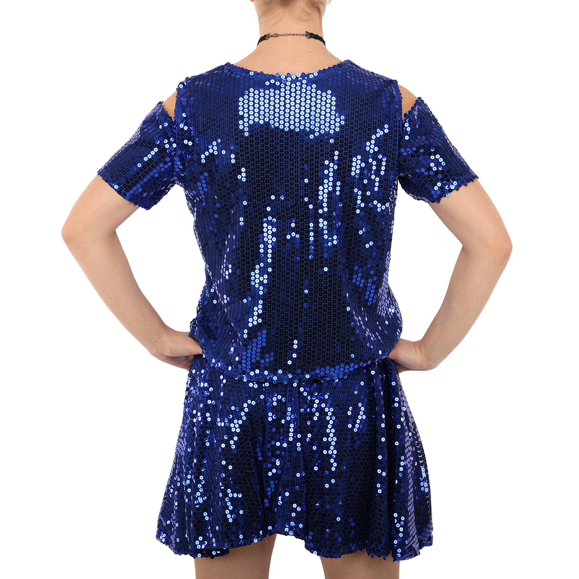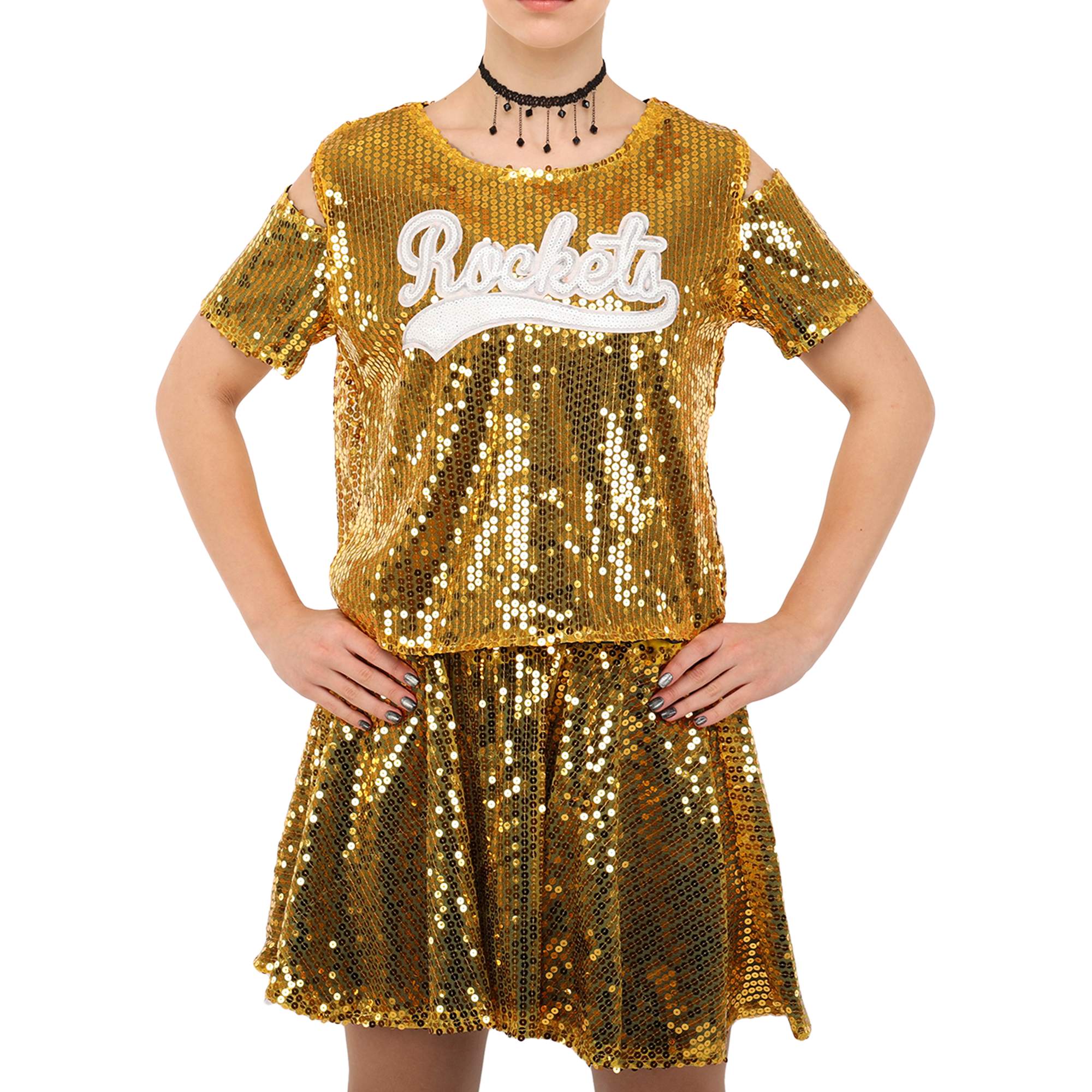Костюм для чирлидинга кроп-топ и юбка клёш с блестящими пайетками SP-Sport CO-100 размер S-XXL цвета в ассортименте Код CO-100