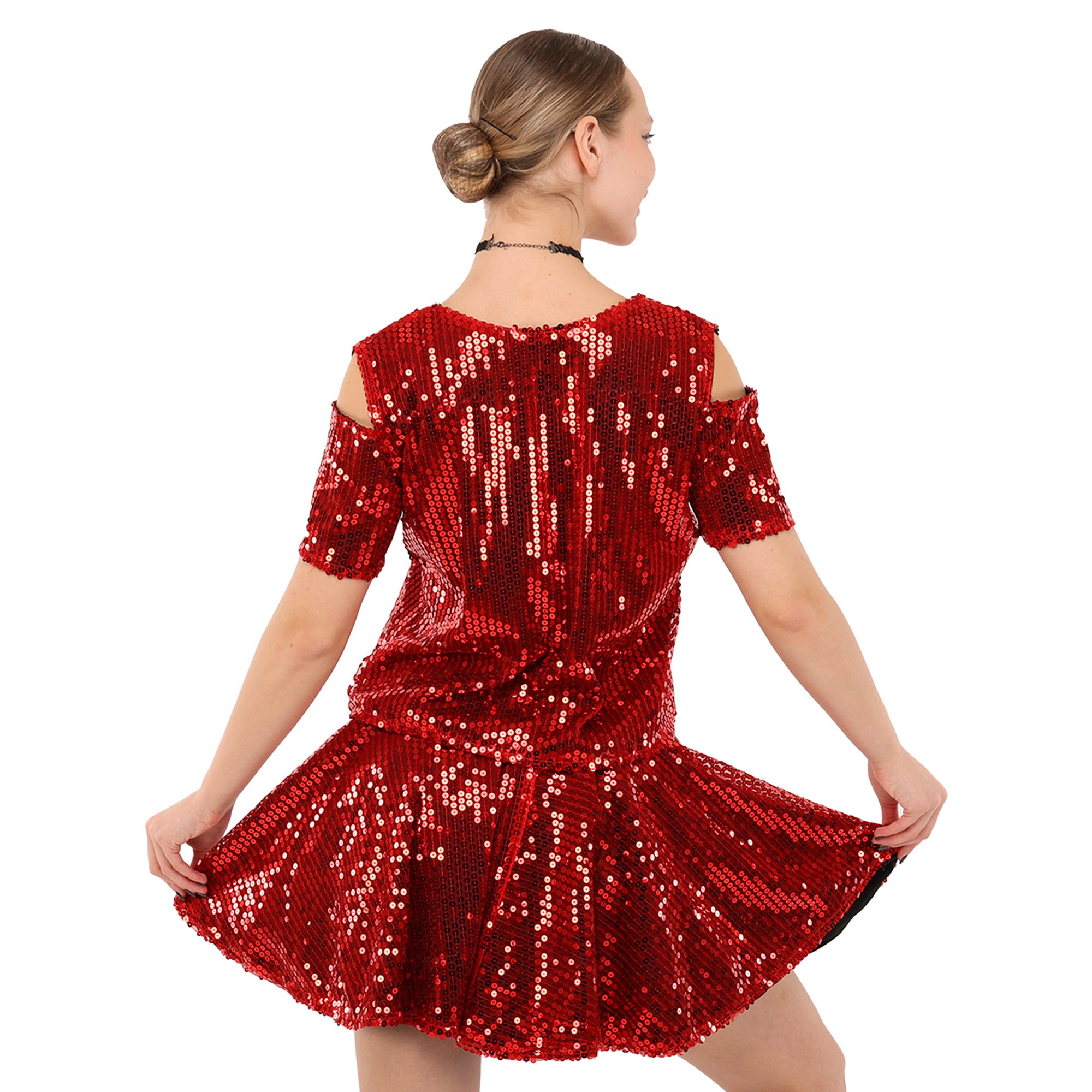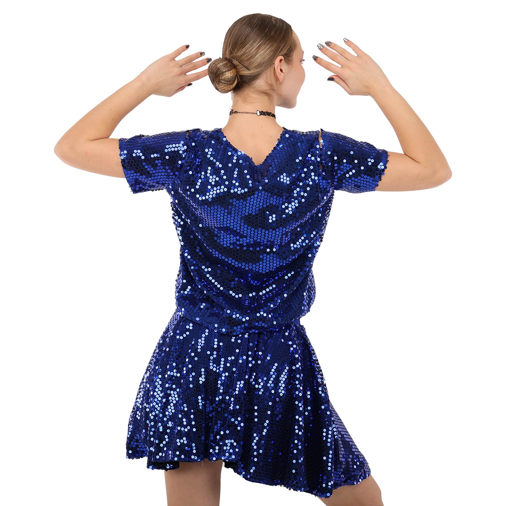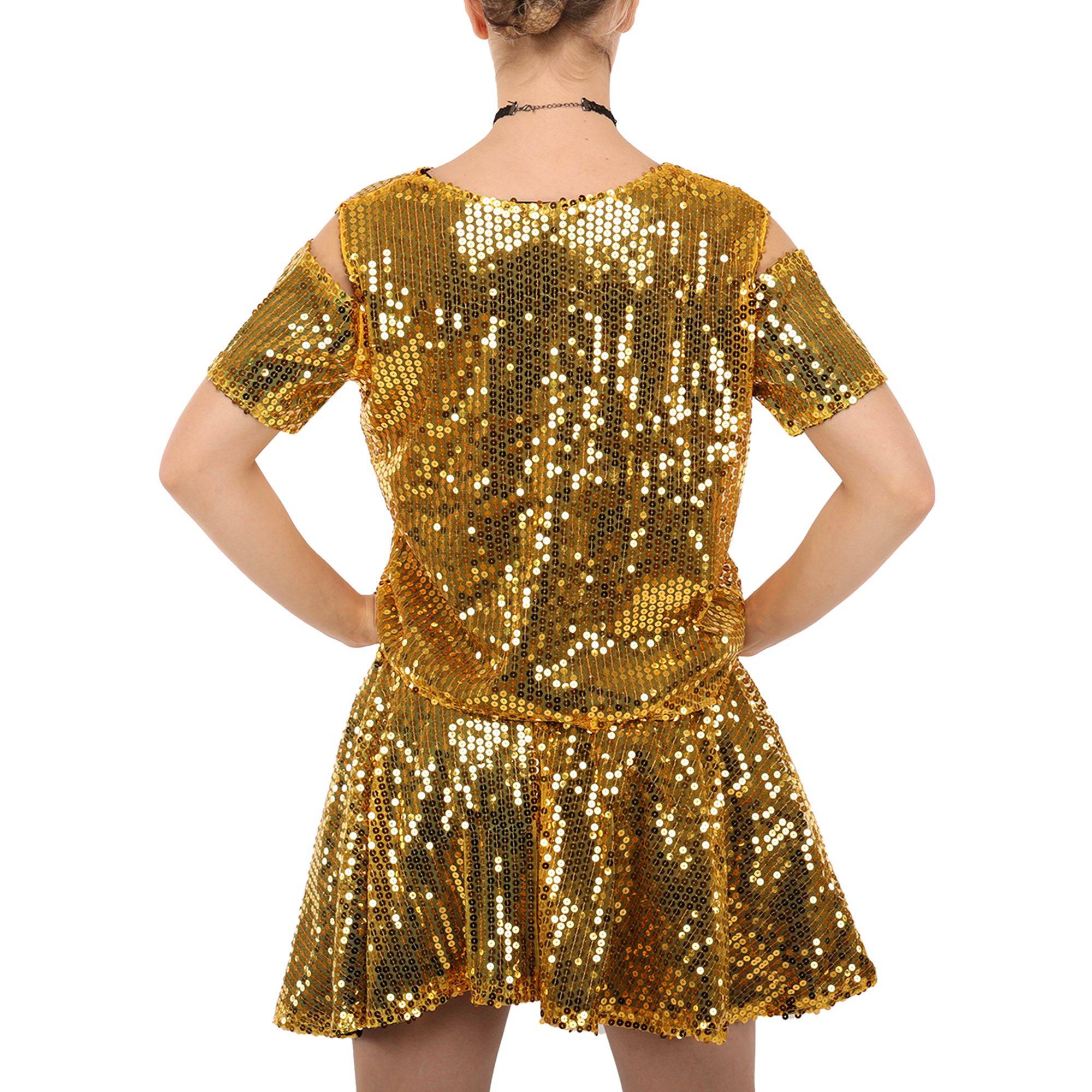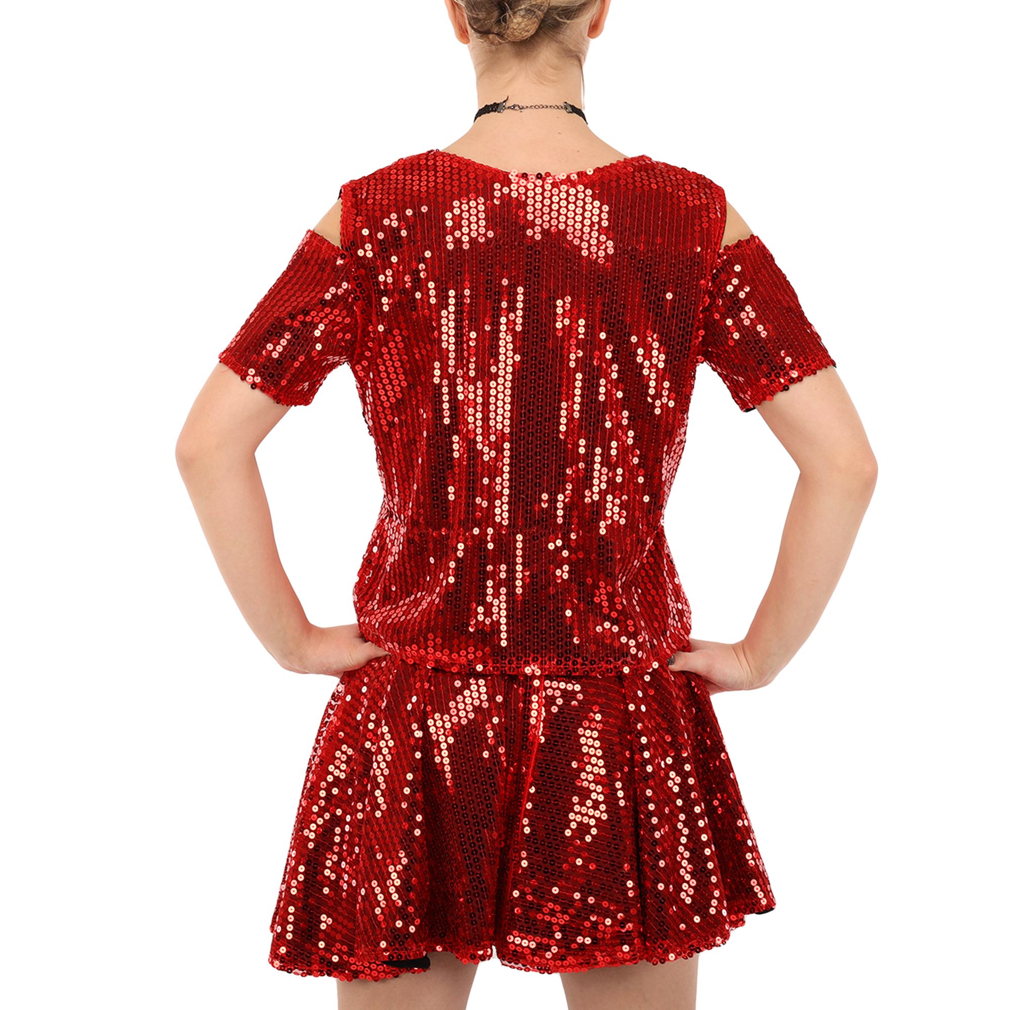 Костюм для чирлидинга кроп-топ и юбка клёш с блестящими пайетками SP-Sport CO-100 размер S-XXL цвета в ассортименте Код CO-100