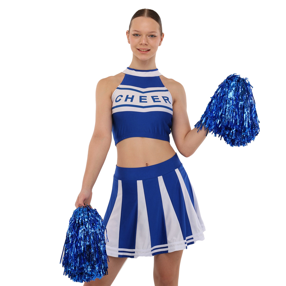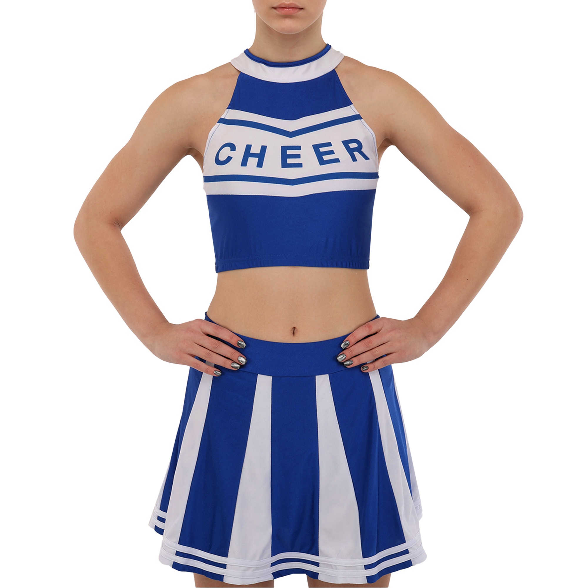 Костюм для чирлидинга кроп-топ с воротником-стойкой и плиссированная мини-юбка SP-Sport CO-043 размер S-2XL синий-белый Код CO-043