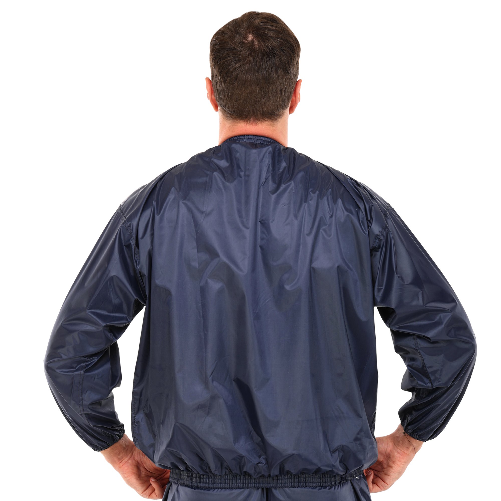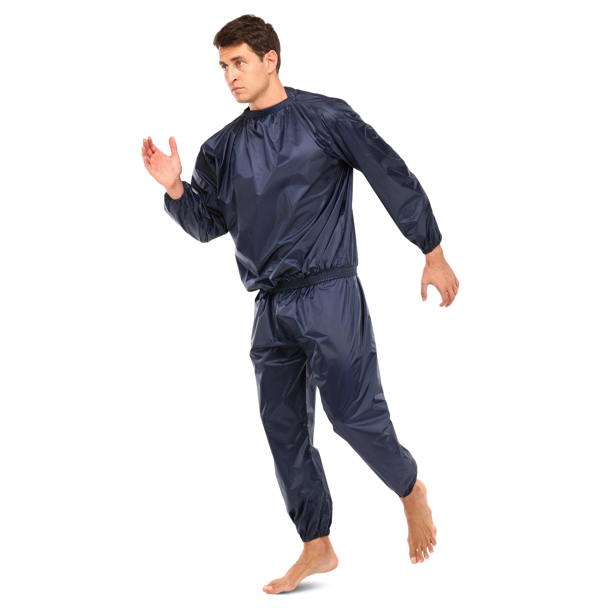 Материал — полиэстер. Этот плотный, непромокаемый материал отлично удерживает температуру тела, создавая эффект настоящей сауны. Он стимулирует активное потоотделение, способствуя выводу лишней влаги и токсинов, при этом остаётся достаточно лёгким и эластичным, чтобы не ограничивать свободу движений.