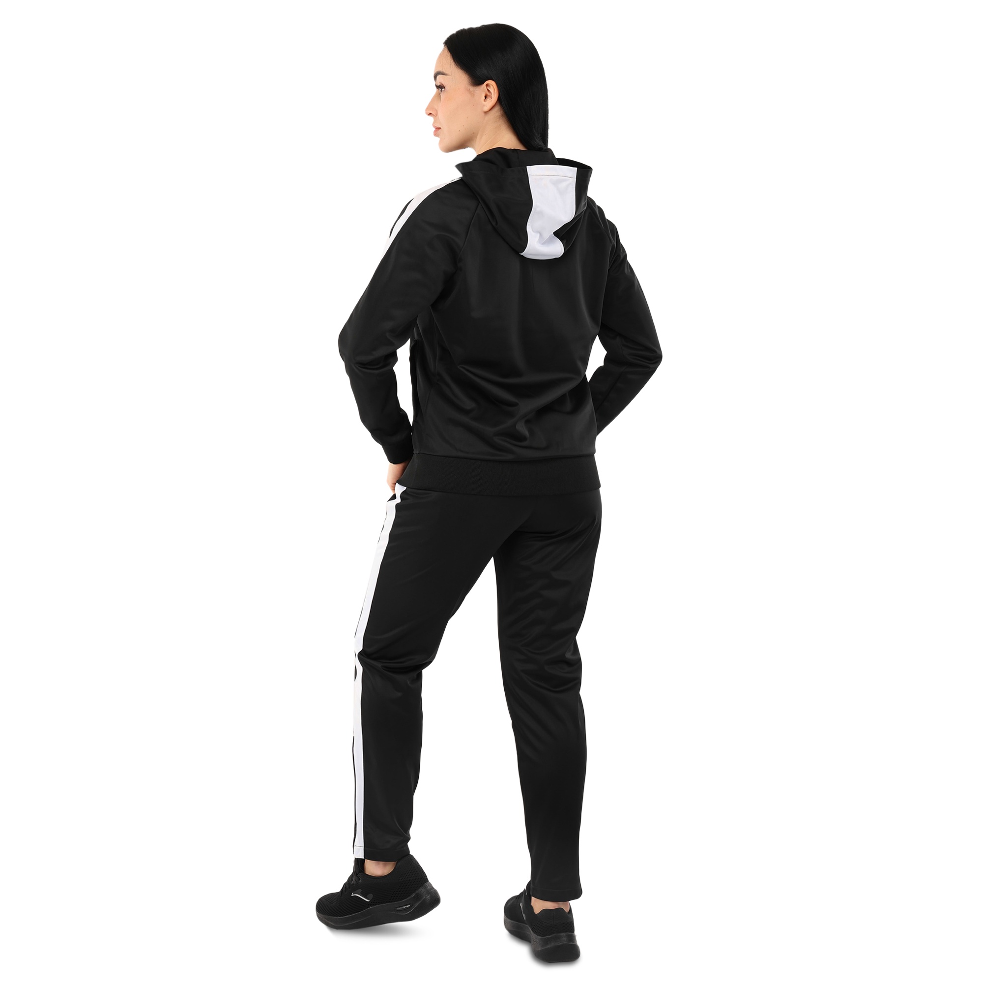 Использовать спортивный костюм от LIDONG можно как для активных занятий спортом, так и для повседневной носки. Костюм включает классическую олимпийку с капюшоном на молнии и брюки. И олимпийка, и брюки имеют свободный крой, благодаря чему позволяют выполнять любые упражнения. Для изготовления комплекта используется высококачественный полиэстер. Эта ткань не только обладает огромным запасом прочности и устойчива к разрывам, она также хорошо отводит влагу и быстро высыхает. Костюм не нуждается в глажке и не мнется в сумке. На рукавах кофты имеются манжеты. Брюки слегка сужаются в направлении к голени и в области голени имеют молнию для регулировки по ширине. На поясе они фиксируются с помощью резинки.