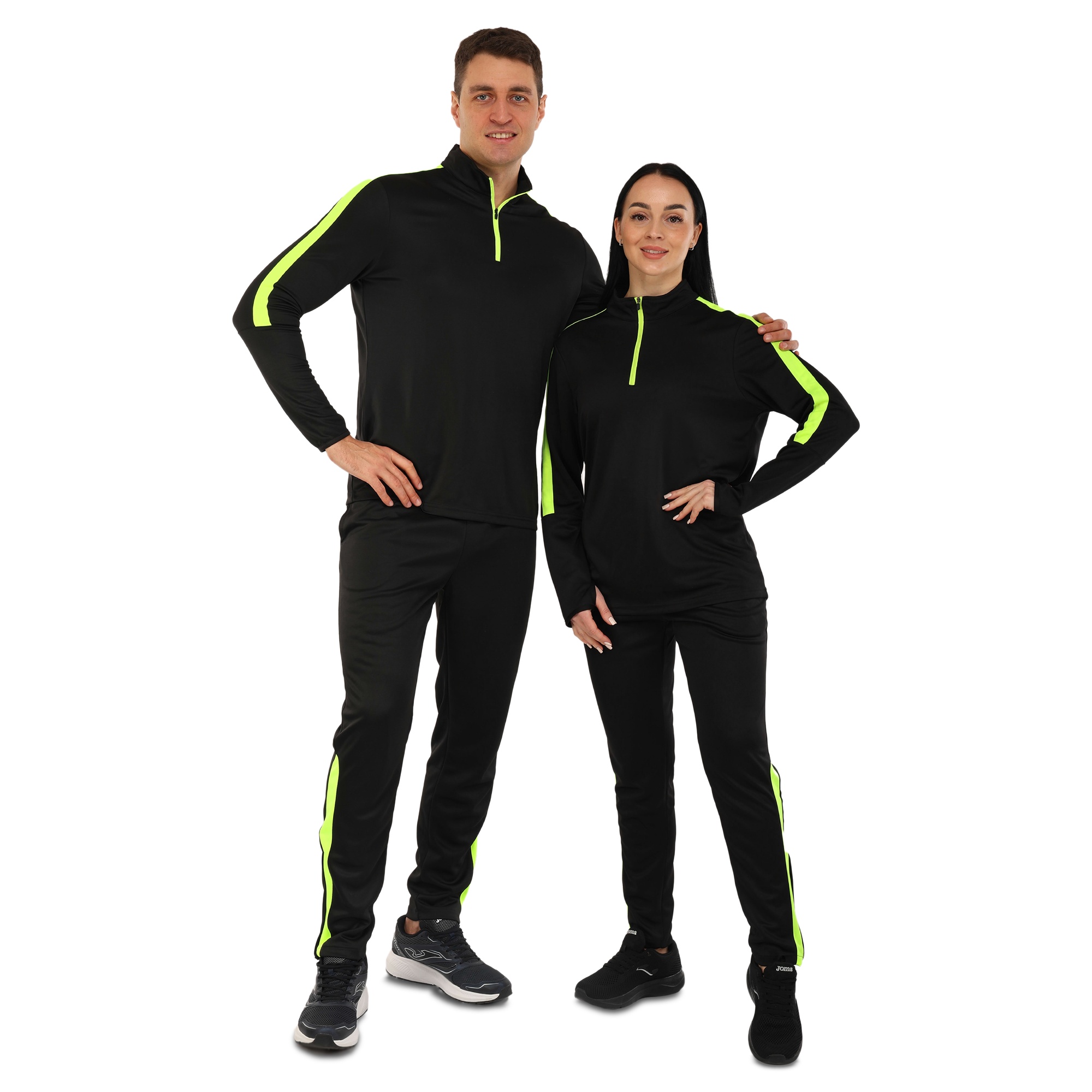 Спортивный костюм от бренда LIDONG имеет универсальный дизайн, который позволяет использовать его мужчинам и женщинам. Комплект состоит из двух элементов: лонгслива и спортивных брюк. Лонгслив имеет воротник-стойку, который застегивается на молнию. На рукавах имеются прорези под большой палец, которые позволяют удобно заниматься спортом. На брюках предусмотрены врезные боковые карманы. На поясе их фиксирует резинка. Молнии на штанинах позволяют регулировать их ширину. Костюм изготовлен из полиэстера. Это эластичная и прочная ткань, которая не выгорает на солнце и не растягивается со временем.