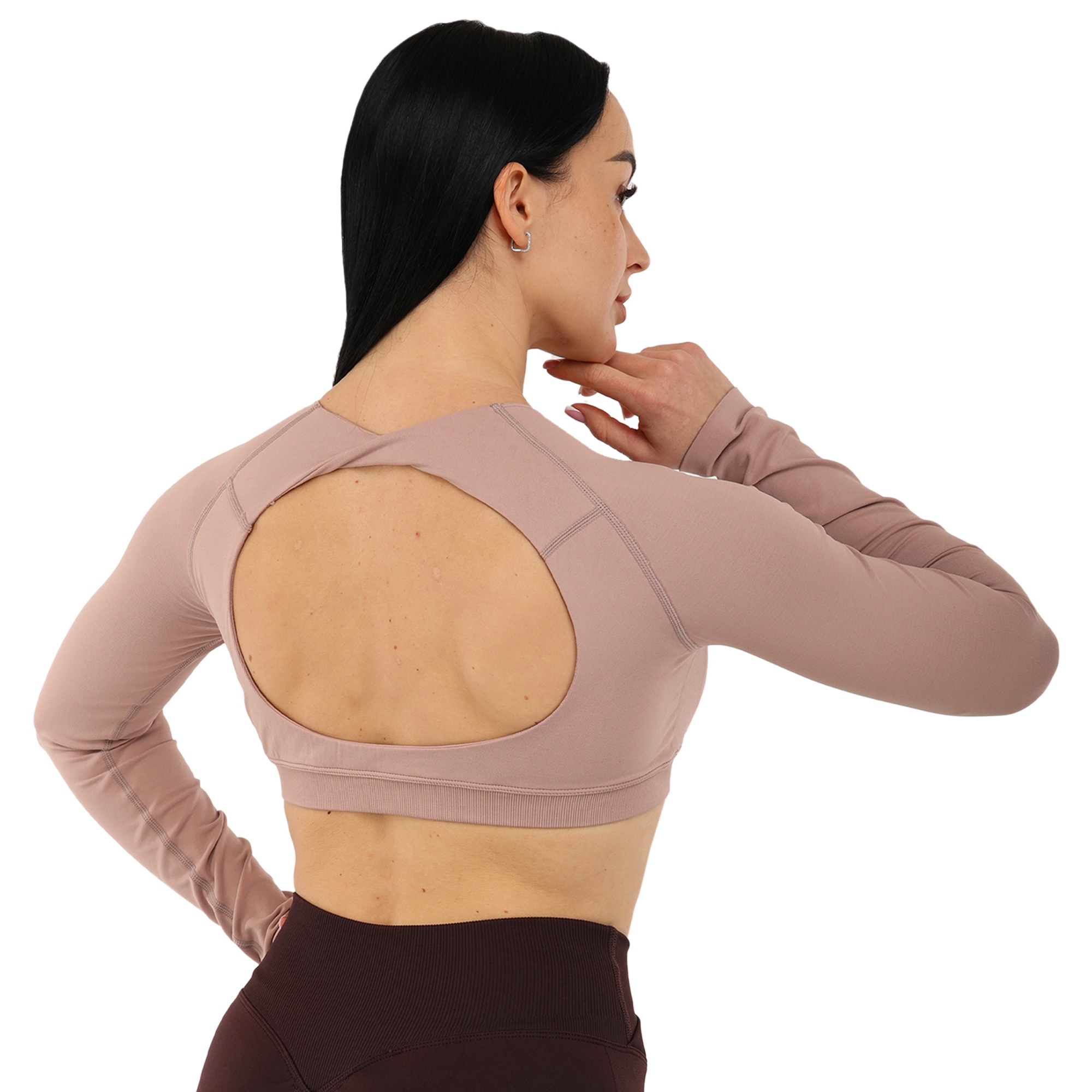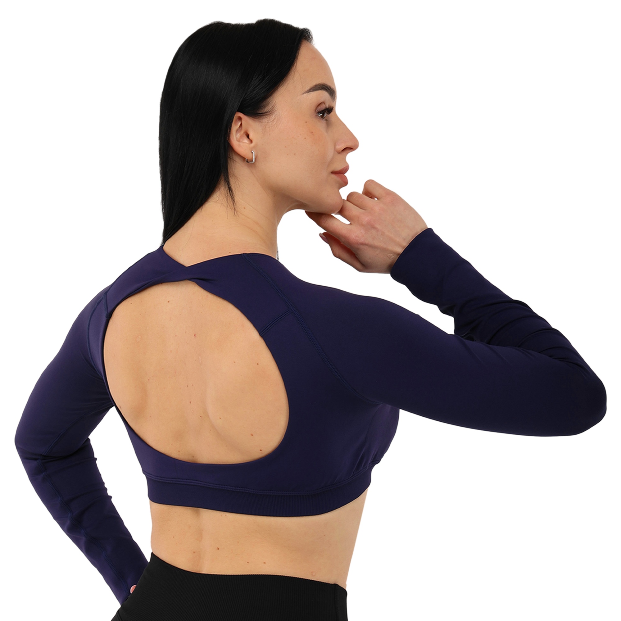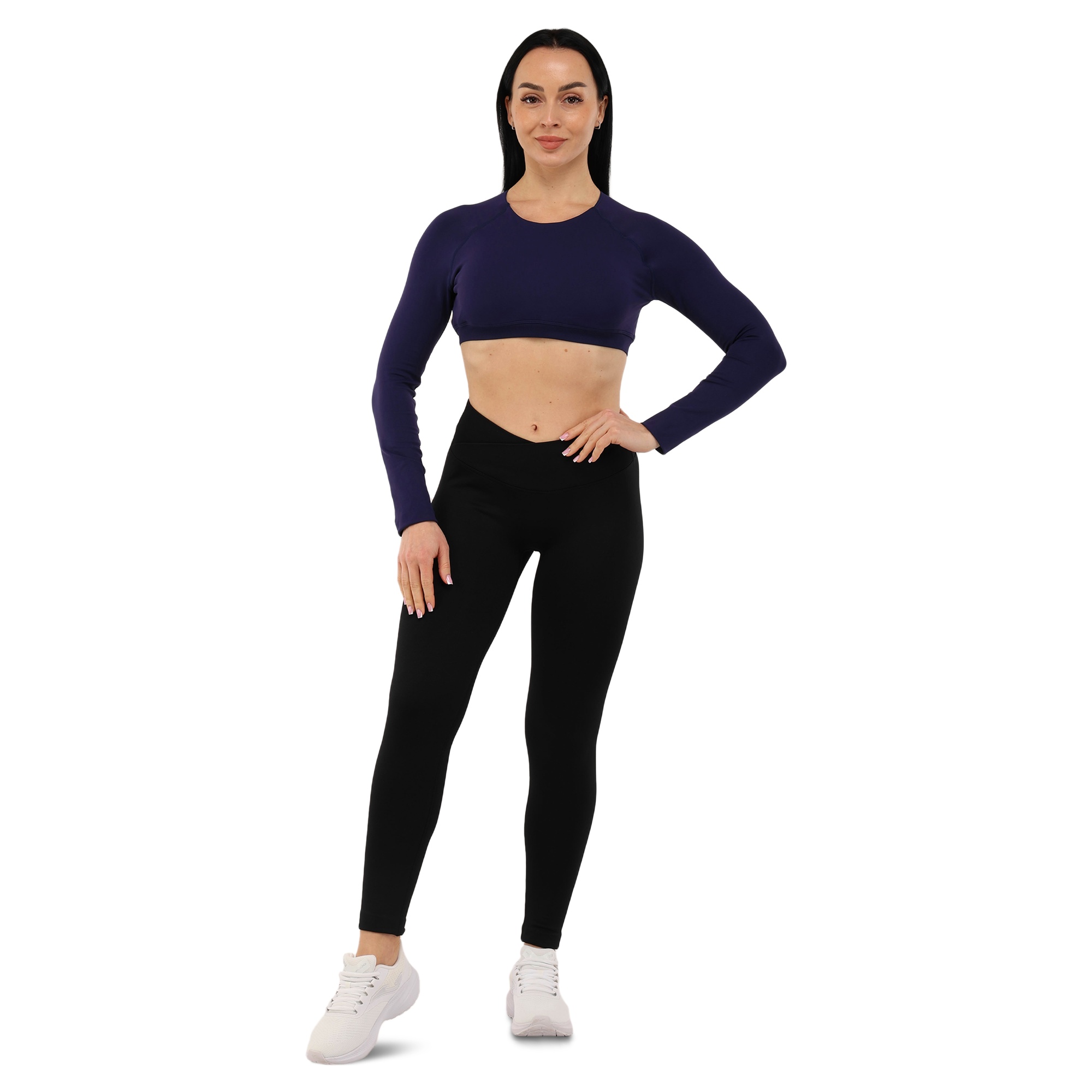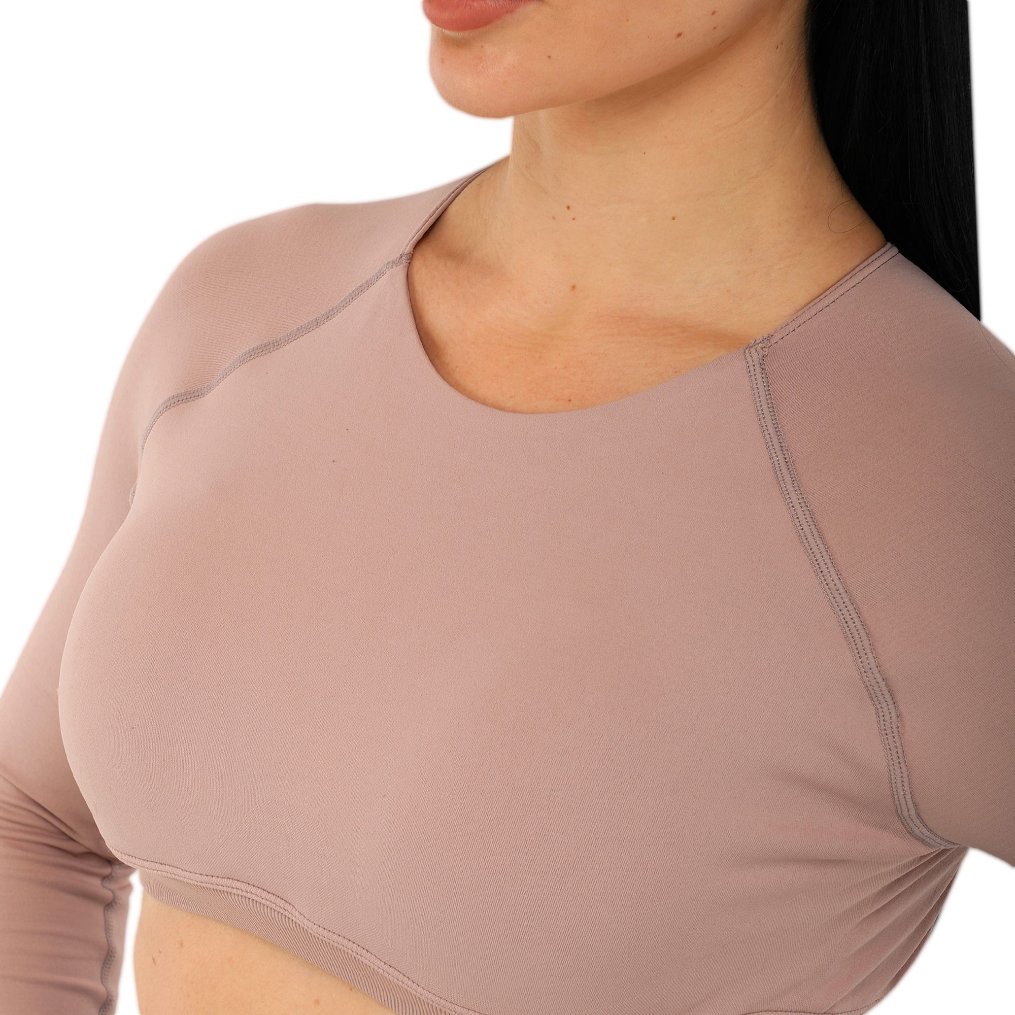 Женский кроп-топ с длинным рукавом можно использовать для занятий фитнесом, йогой, пилатесом, стретчингом, а также для повседневной носки или в качестве домашней одежды. Одежда обеспечивает максимальную свободу движений благодаря легкости и эластичности ткани. Она подчеркивает спортивную фигуру. Избежать натирания кожи в процессе выполнения активных движений позволяют плоские швы.