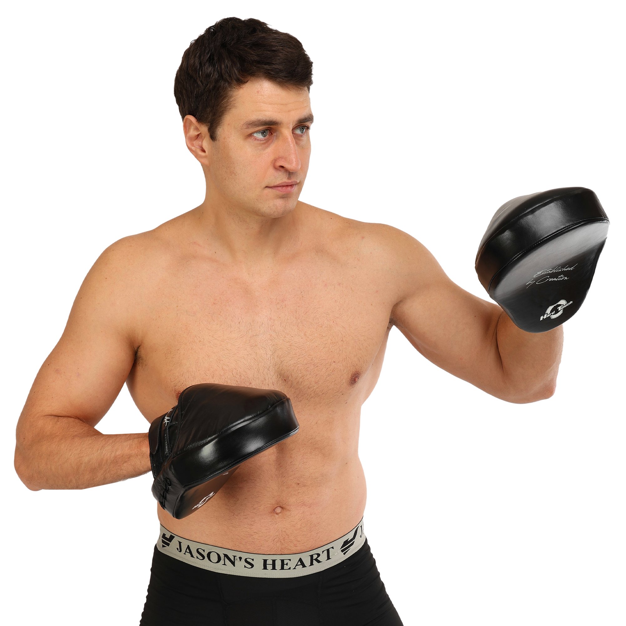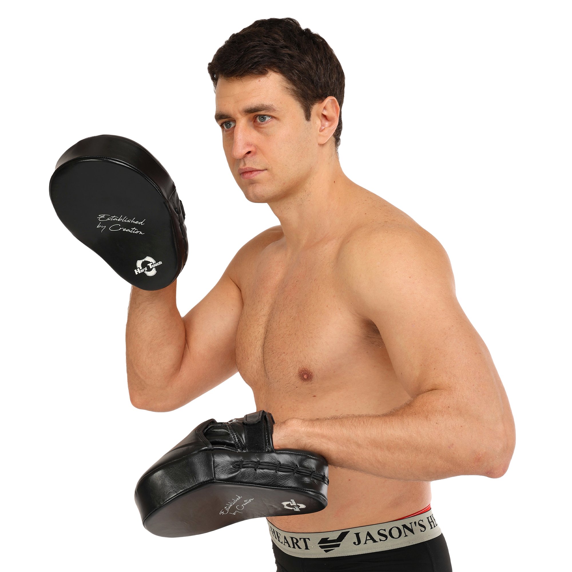 Лапа боксерская изогнутая тренировочная кожа HARD TOUCH BO-5241 26x19x6см 2шт черный