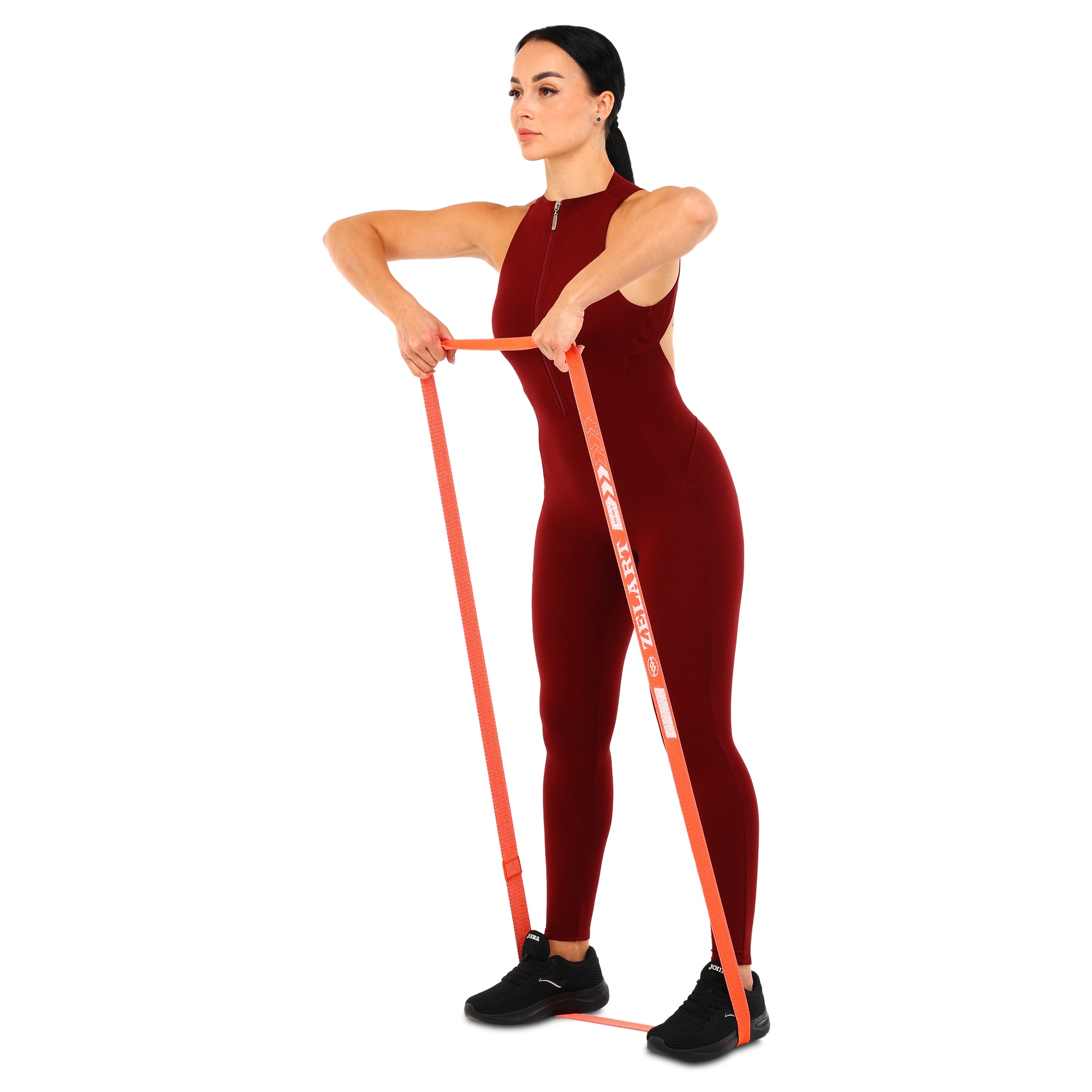 Лента сопротивления позволяет выполнять большое количество разных упражнений и подходит для восстановительных тренировок, разминок, растяжек и высокоэффективных домашних тренировок. Она заменяет утяжелители в домашних условиях и позволяет выполнять жим от груди, тягу к поясу или к подбородку, приседания и прочие упражнения.