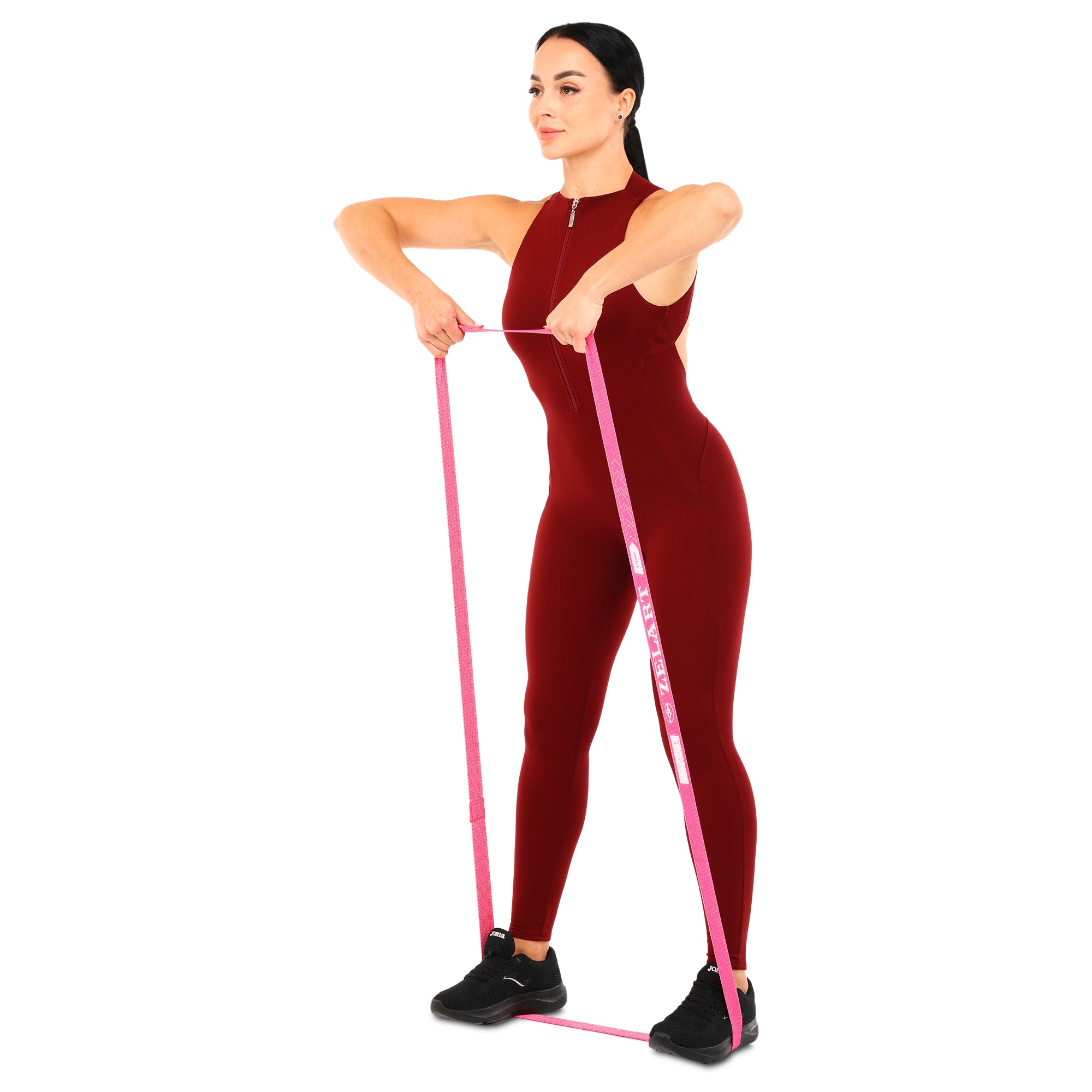 Модель имеет широкую область применения и подходит спортсменам любого уровня. Ее можно использовать для разминки перед основной тренировкой или растяжки после нее, для восстановления после травм, проработки всех групп мышц и в качестве замены утяжелителей в домашних условиях. Свернутая в рулон лента практически не занимает места и весит очень мало, что позволяет брать ее с собой на пробежку, в поездки, отпуск или командировку.