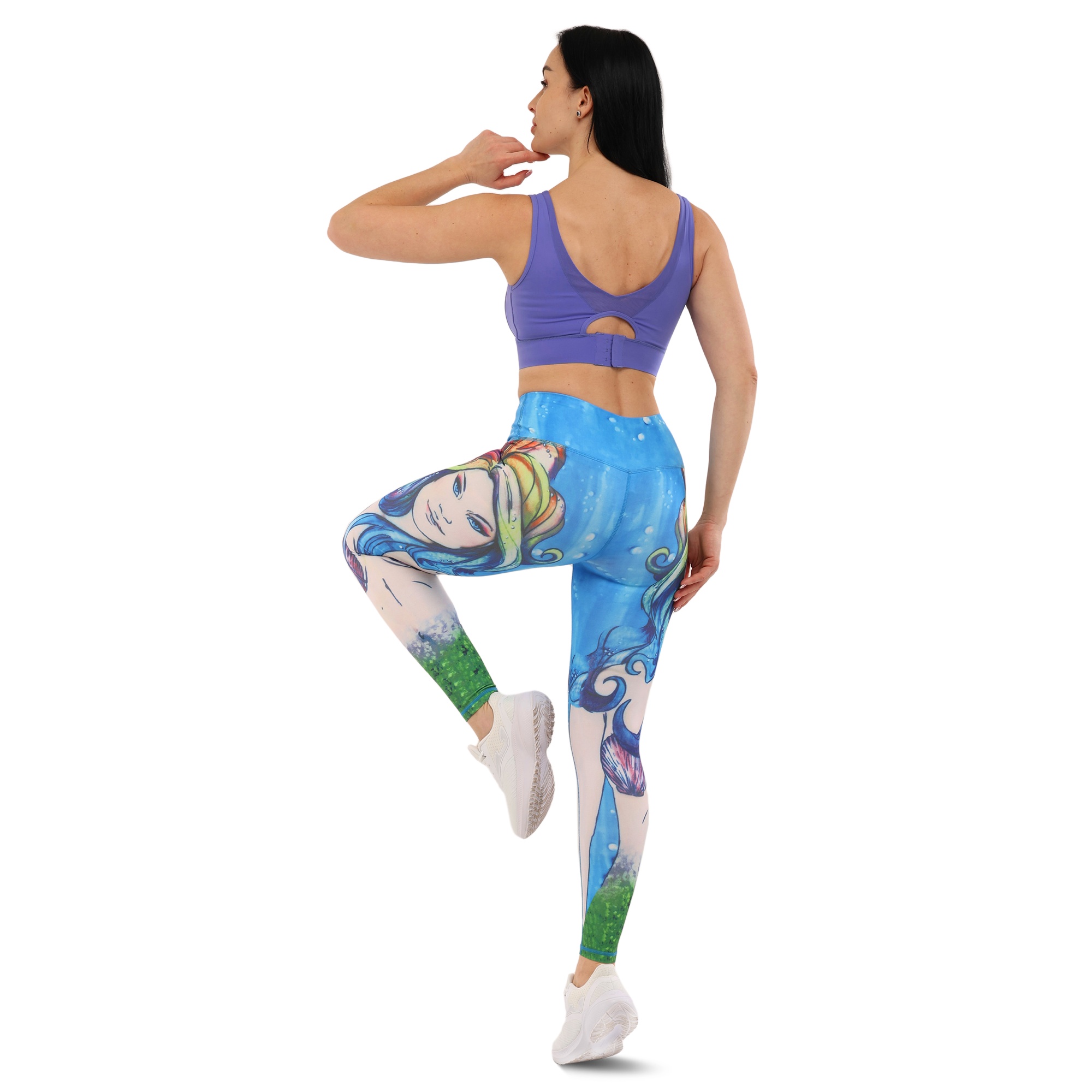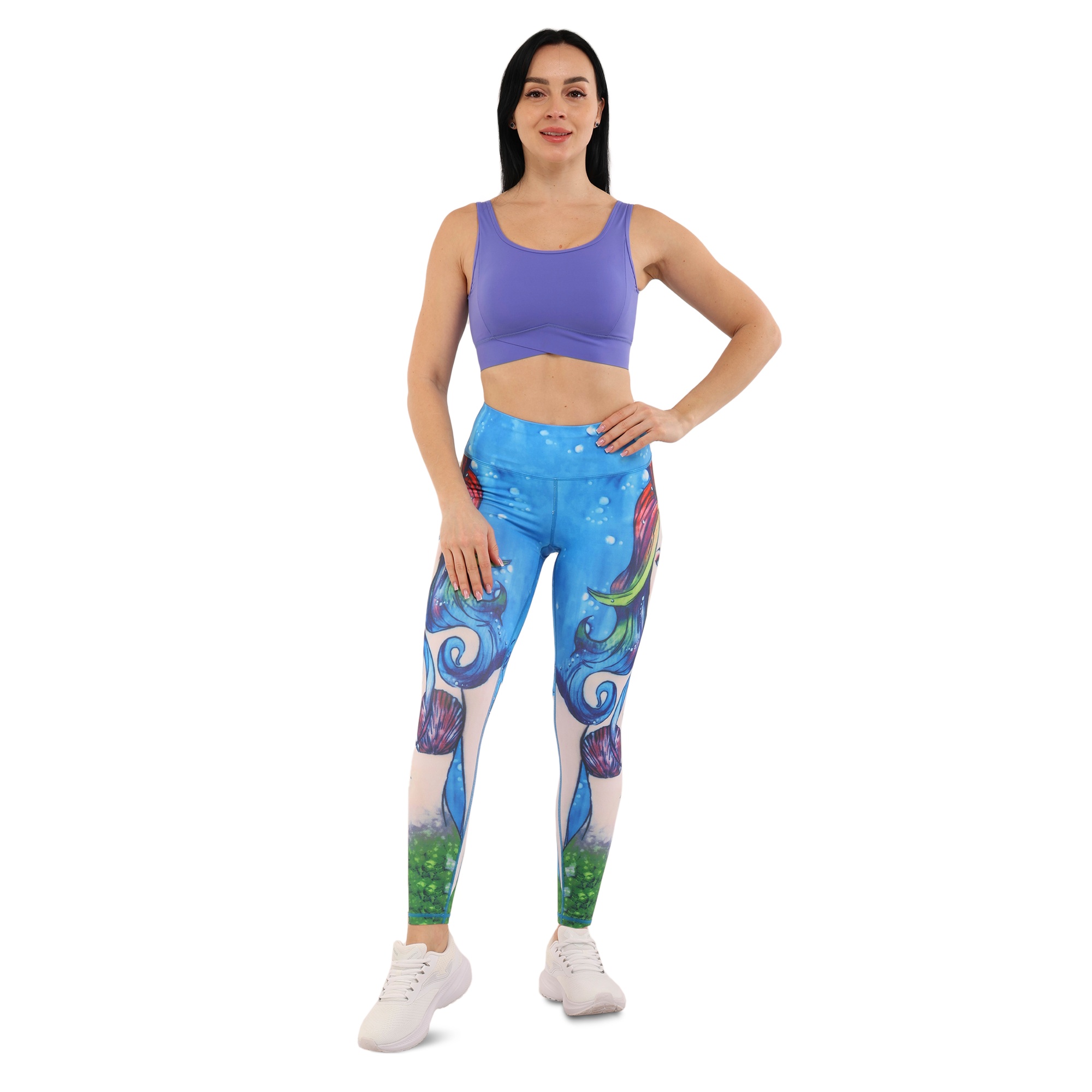 Лосины леггинсы женские с принтом Lingo Русалка HK18 M-L голубой-белый Код HK18