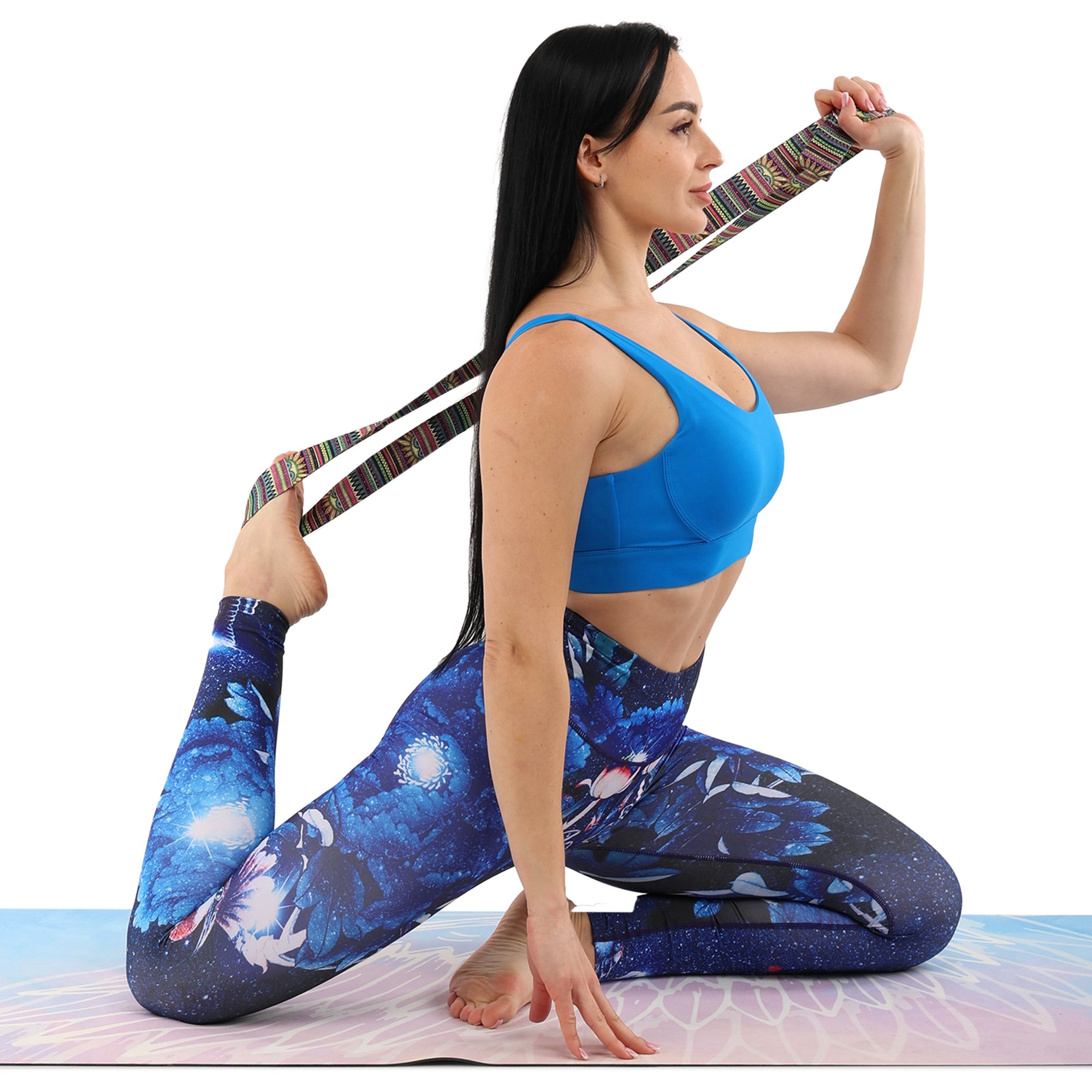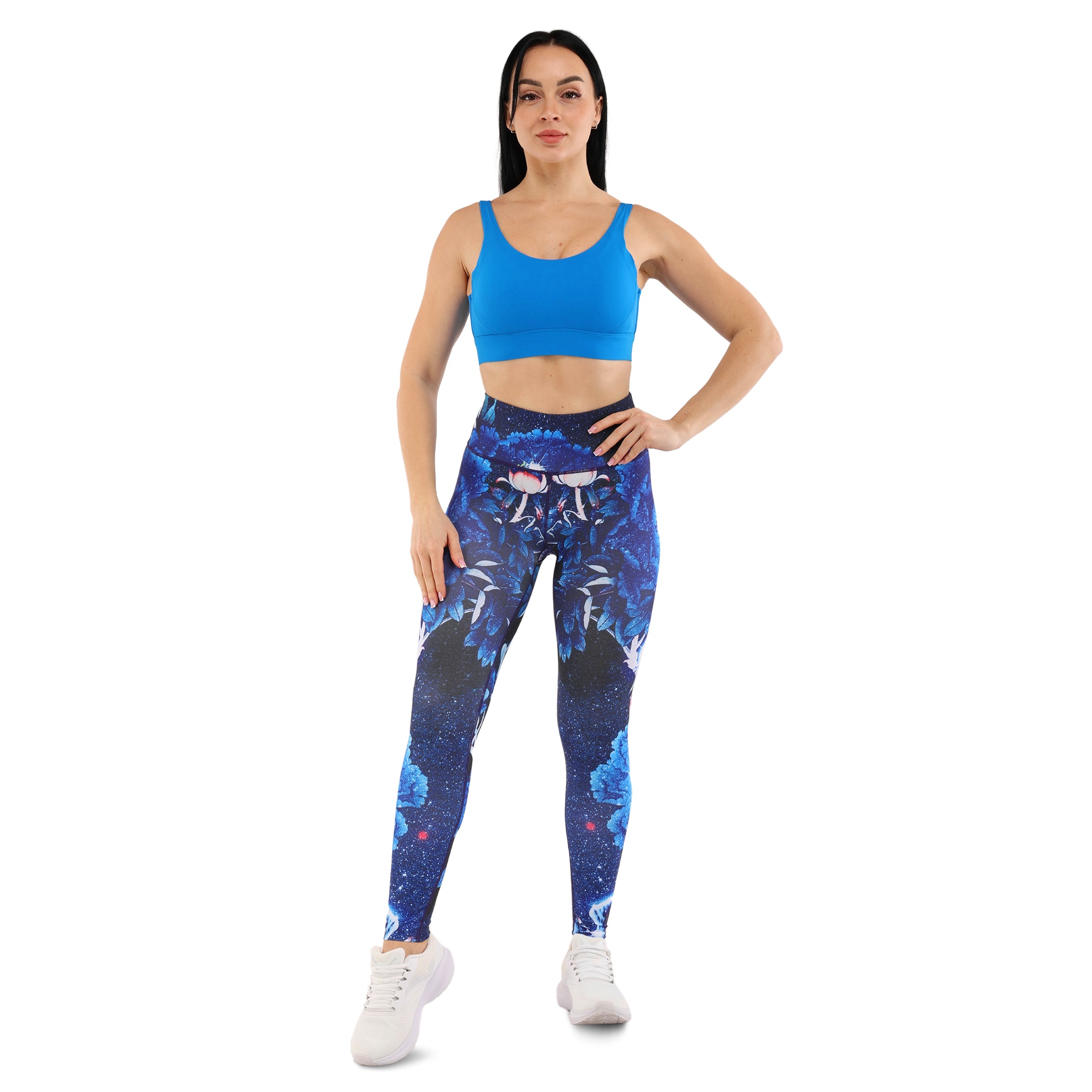Леггинсы изготовлены из нейлона и лайкры, что обеспечивает их эластичность, прочность и долговечность. Леггинсы предназначены для женщин и имеют приятный дизайн. Яркий принт позволяет выглядеть стильно и привлекать к себе ещё больше внимания. При этом такие леггинсы легко сочетать с другой экипировкой.