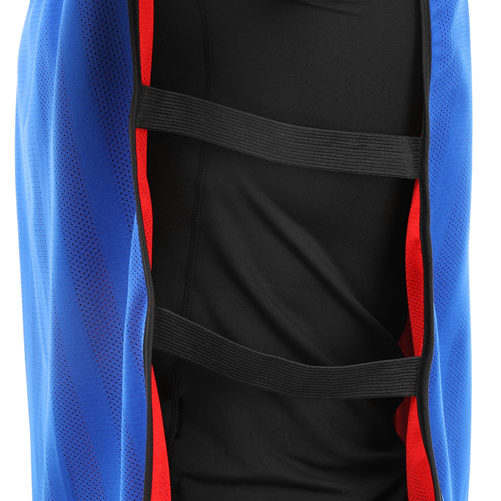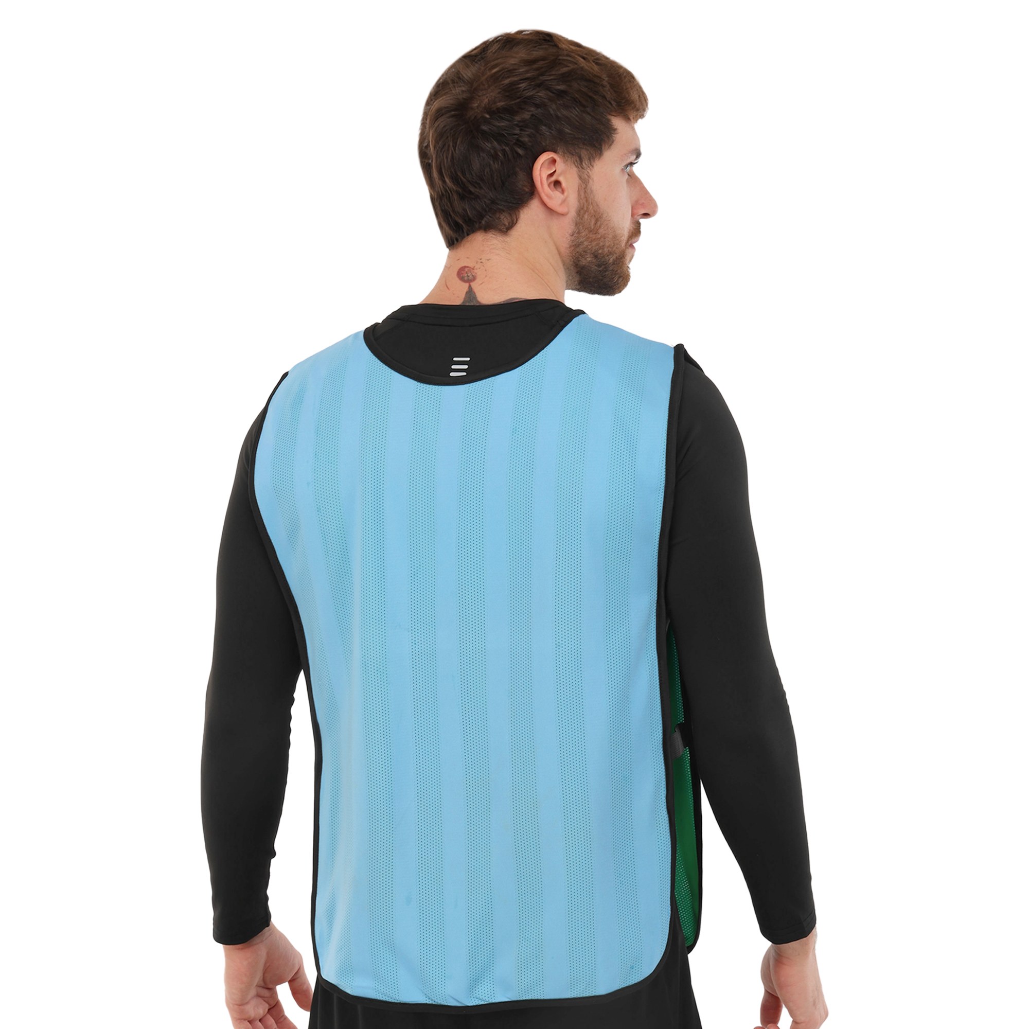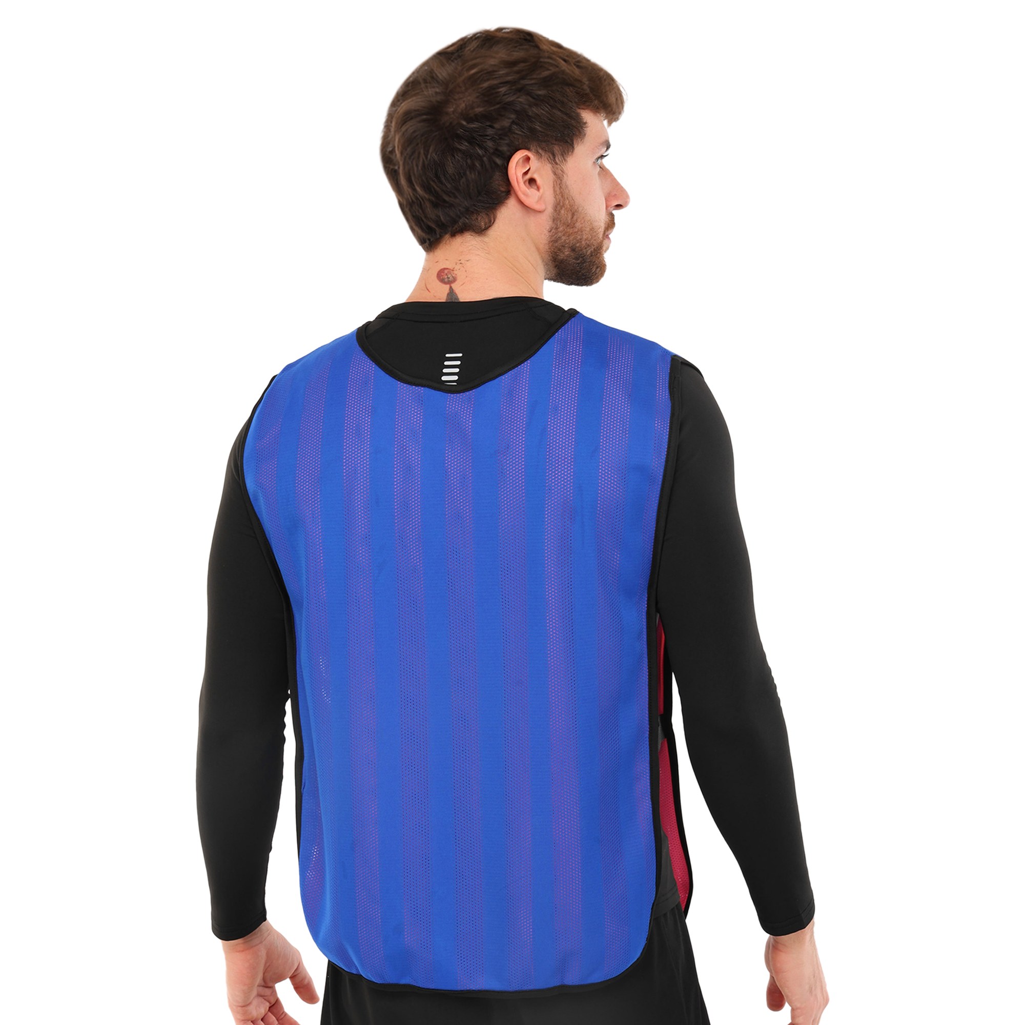 Двусторонняя накидка состоит из двух частей, соединенных резинками. Лицевая и изнаночная стороны окрашены в разные цвета. Игрок может быстро и легко надеть ее поверх формы любой стороной. Размер манишки: 68х43 см.