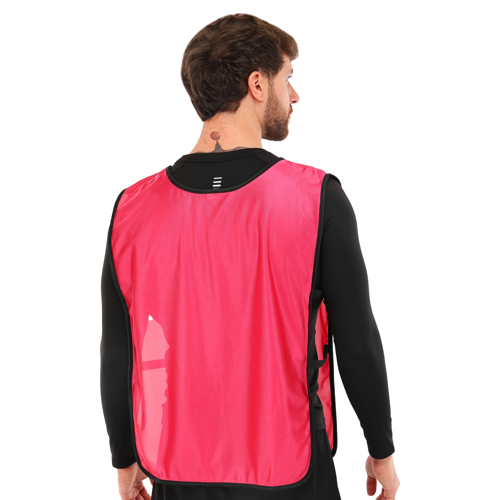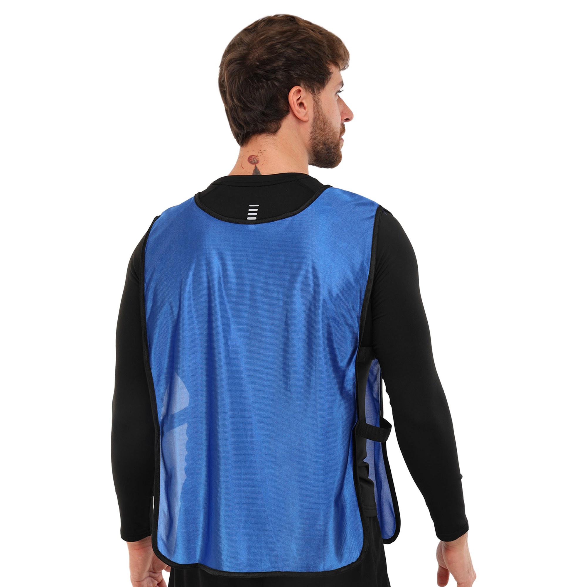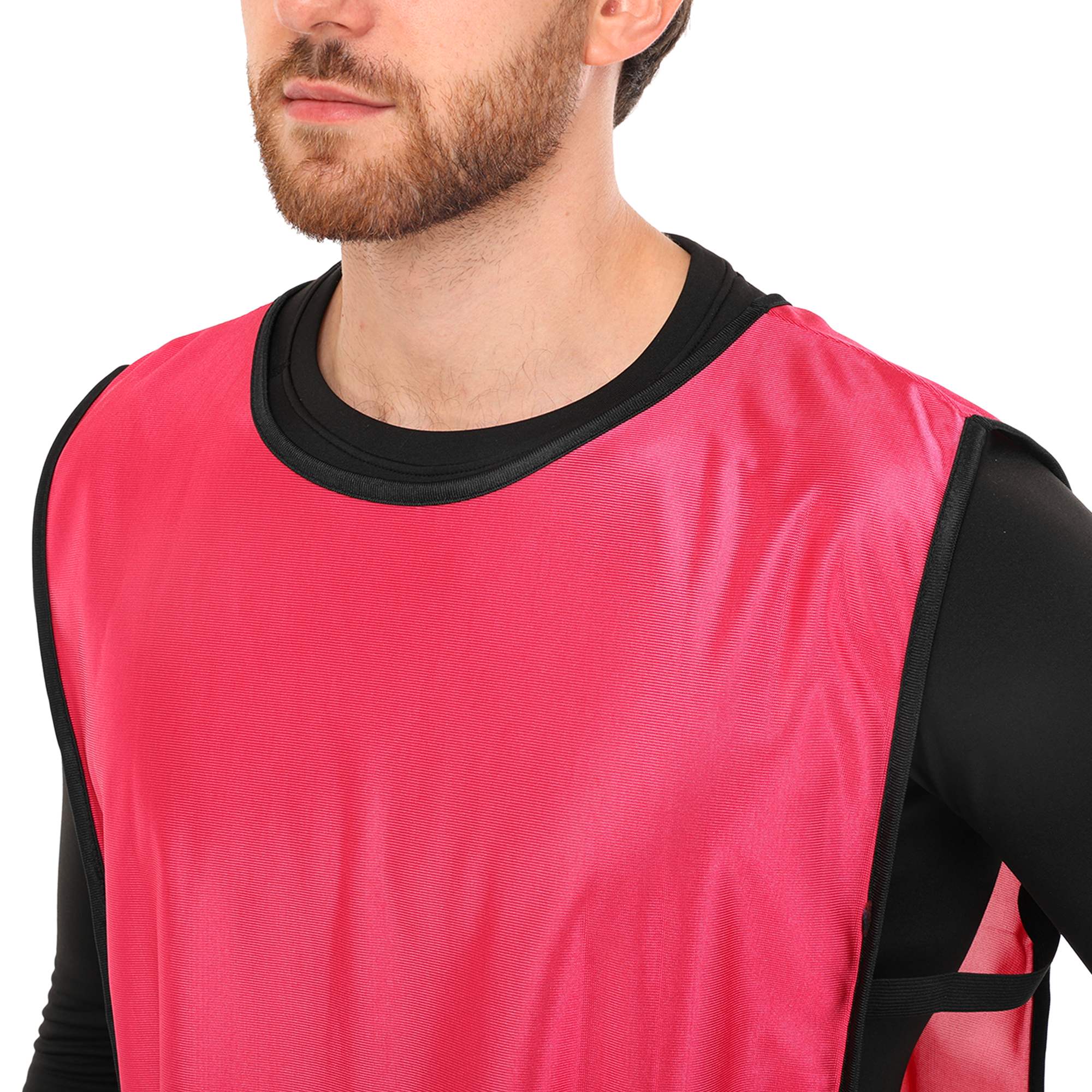 Тонкая ткань имеет небольшой вес и практически не ощущается на теле. Материал не впитывает влагу, быстро сохнет и хорошо пропускает воздух. Летом в манишке не будет жарко, а в холодные дни, благодаря особому крою, ее можно надеть поверх спортивной кофты или куртки. Игровая накидка на резинках надевается через голову. Она не ограничивает подвижность спортсмена и, во время интенсивных тренировок, не может слететь.