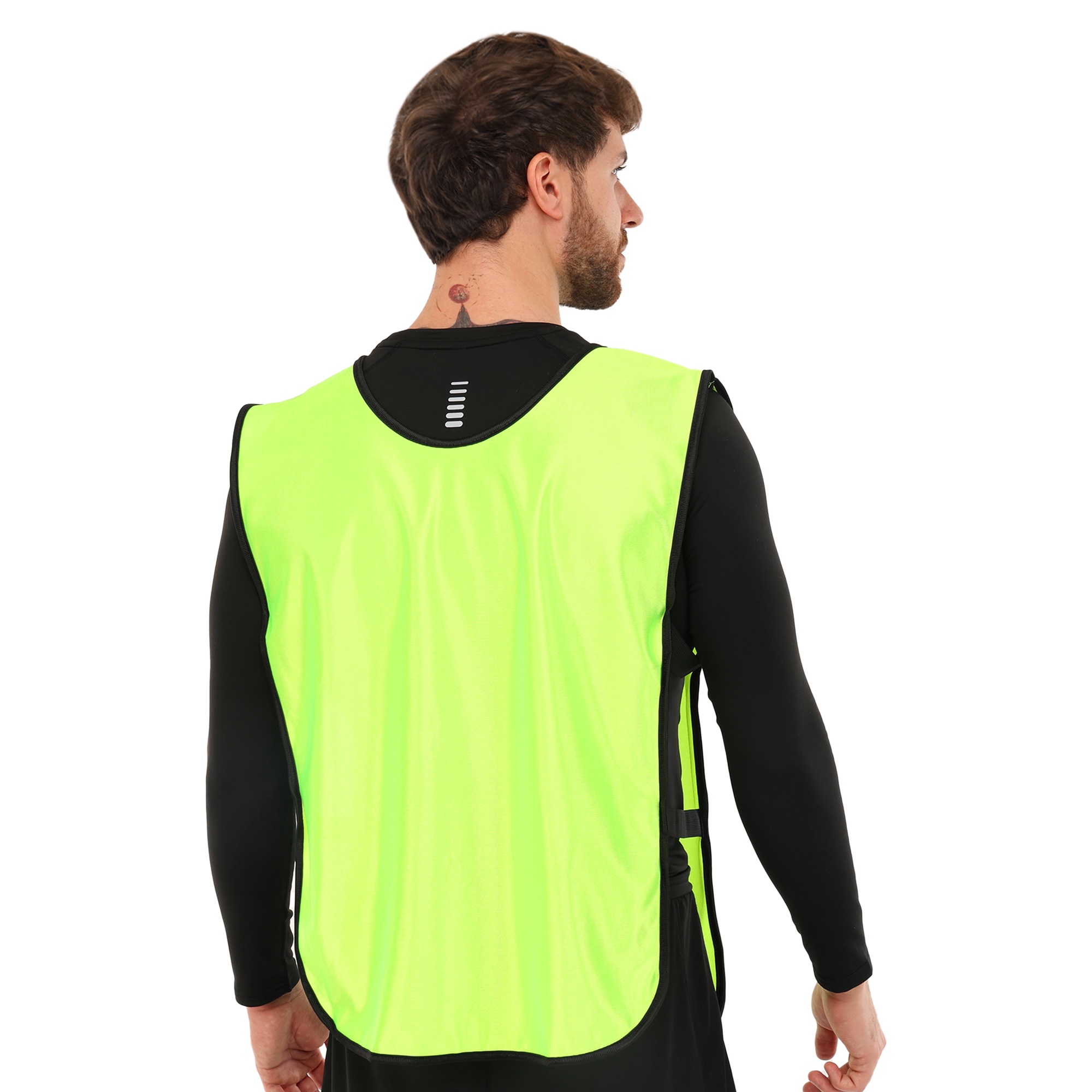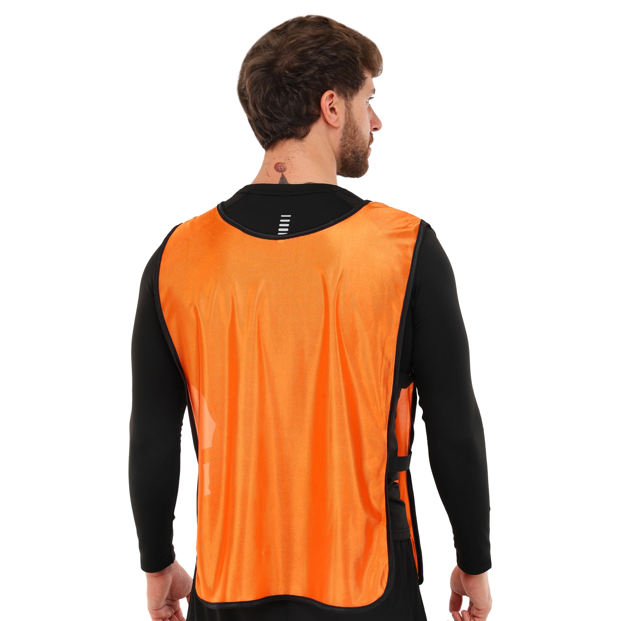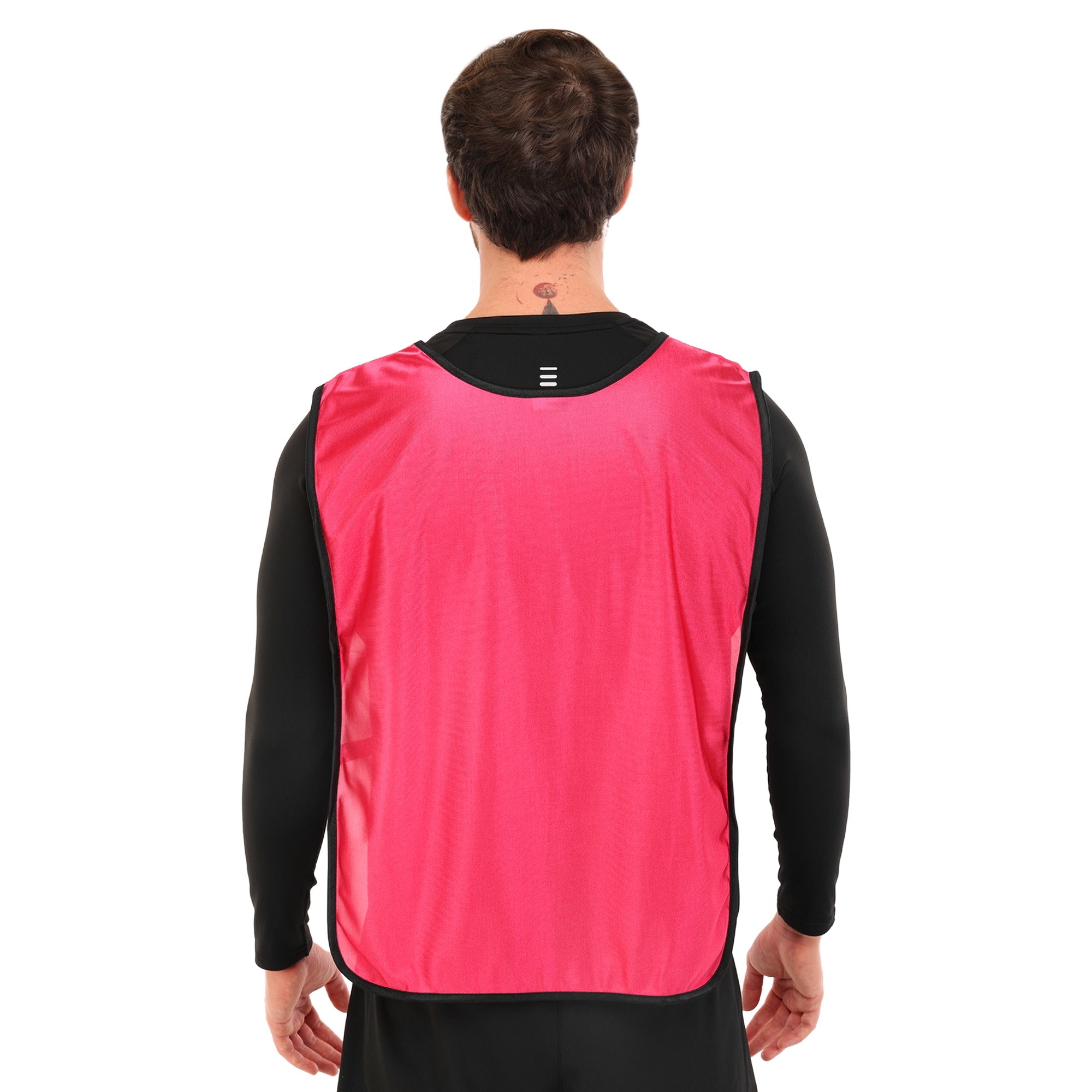 Тонкая ткань имеет небольшой вес и практически не ощущается на теле. Материал не впитывает влагу, быстро сохнет и хорошо пропускает воздух. Летом в манишке не будет жарко, а в холодные дни, благодаря особому крою, ее можно надеть поверх спортивной кофты или куртки. Игровая накидка на резинках надевается через голову. Она не ограничивает подвижность спортсмена и, во время интенсивных тренировок, не может слететь.