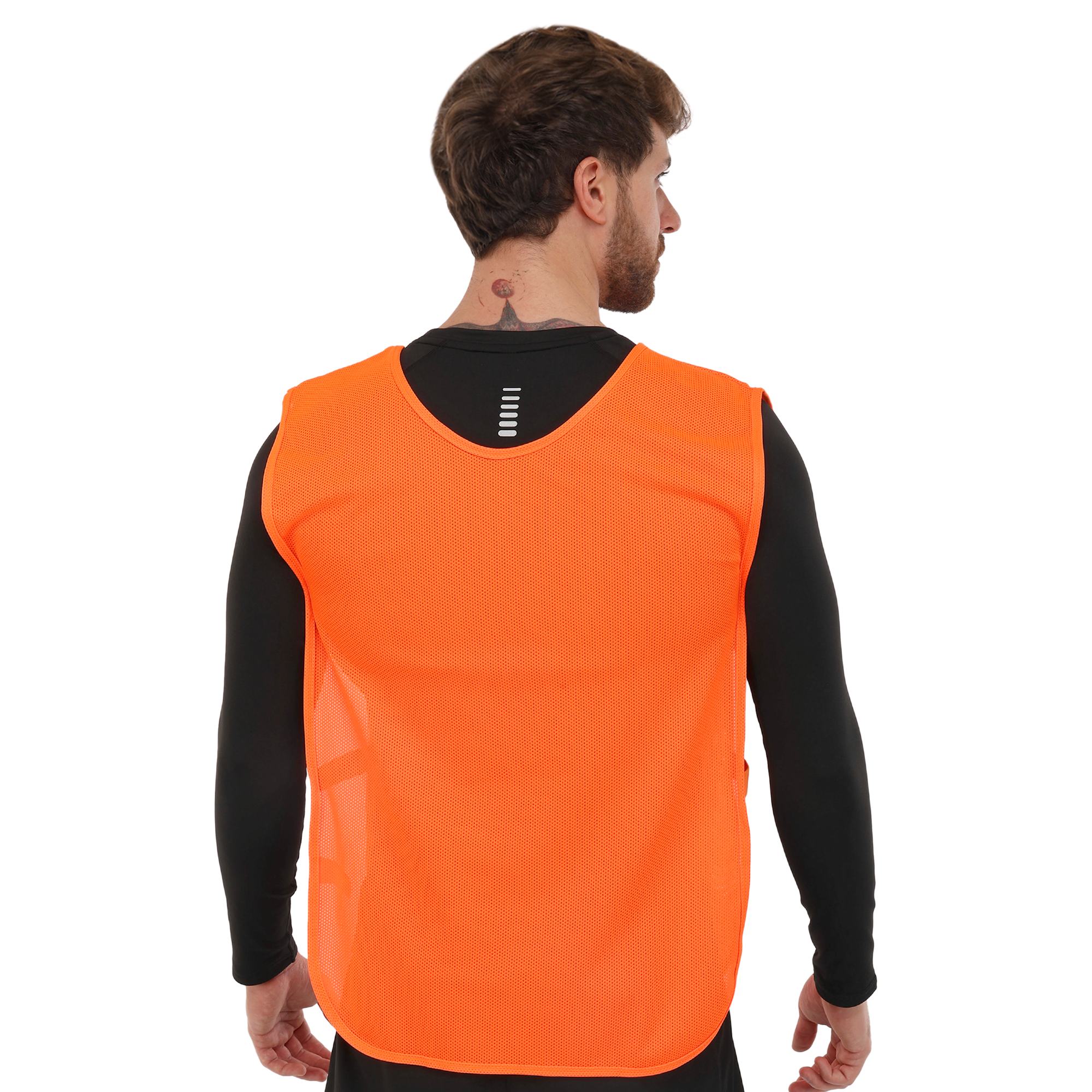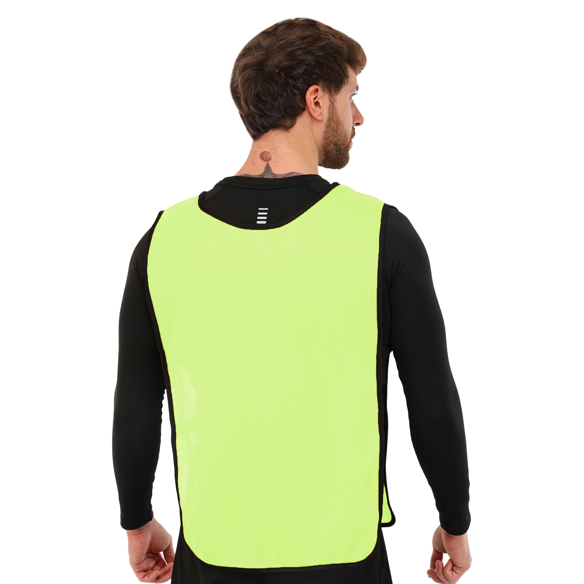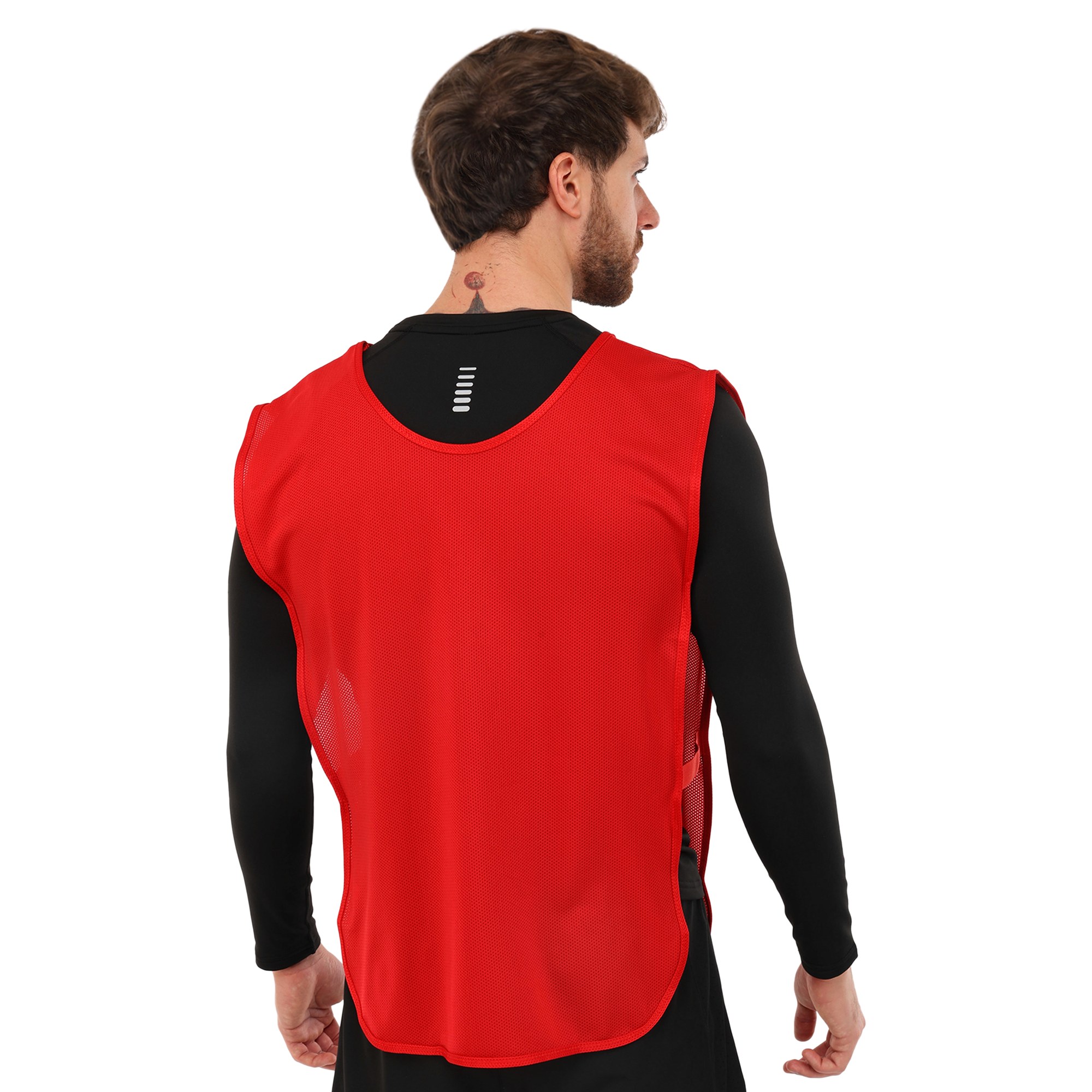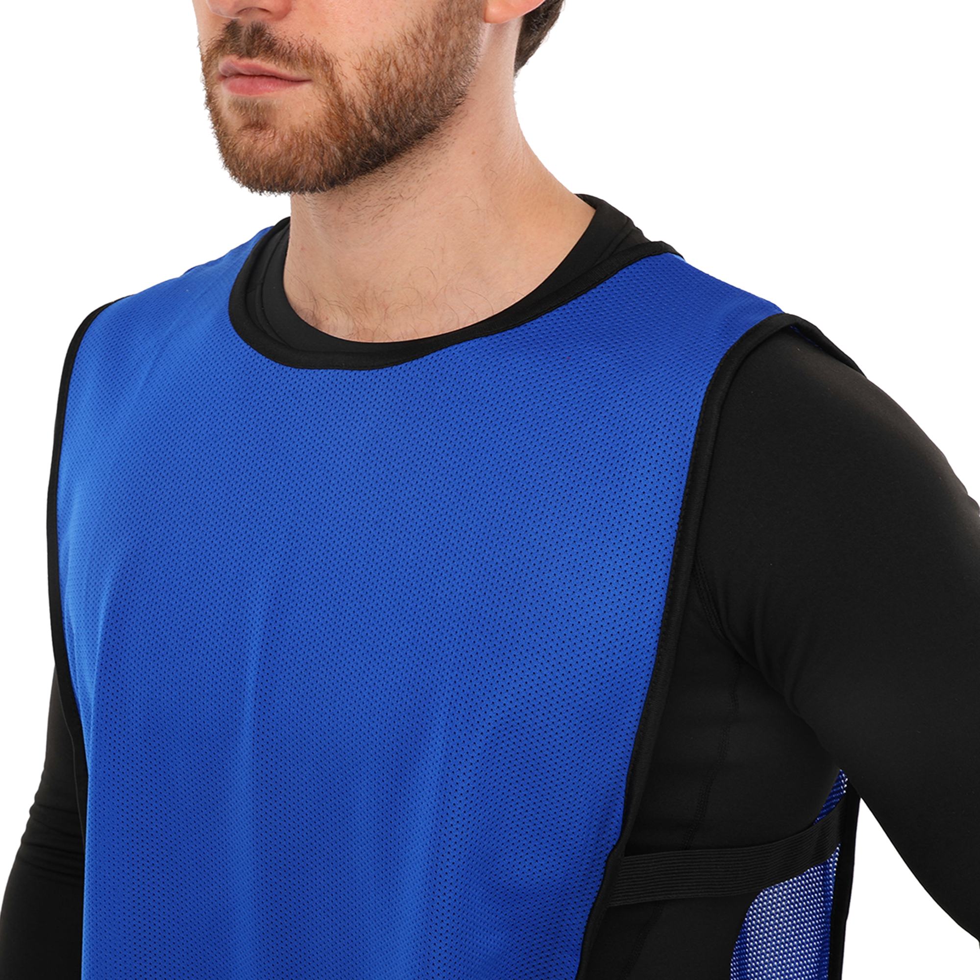 Тонкая ткань имеет небольшой вес и практически не ощущается на теле. Материал не впитывает влагу, быстро сохнет и хорошо пропускает воздух. Летом в манишке не будет жарко, а в холодные дни, благодаря особому крою, ее можно надеть поверх спортивной кофты или куртки. Игровая накидка на резинках надевается через голову. Она не ограничивает подвижность спортсмена и, во время интенсивных тренировок, не может слететь.