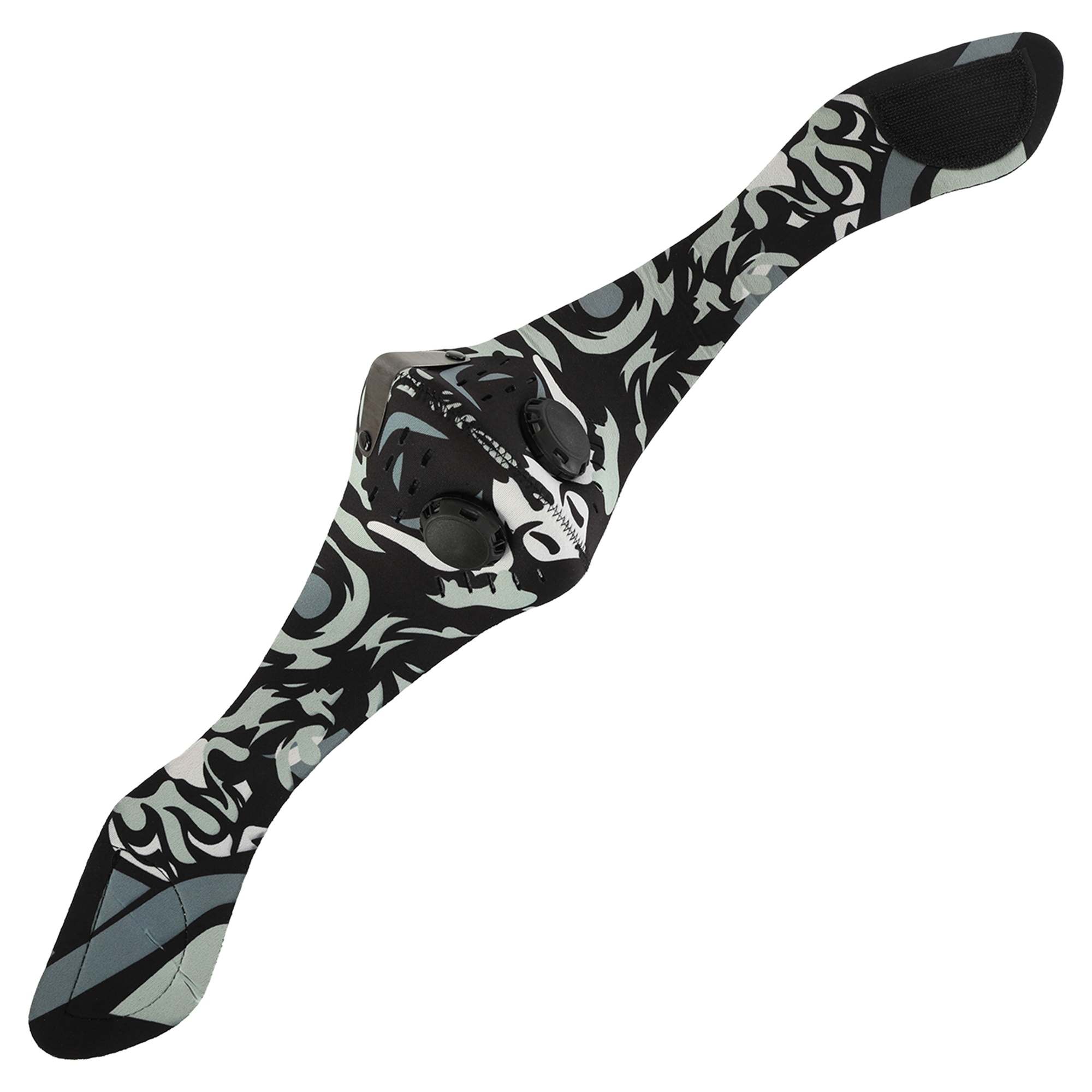 Для изготовления ветрозащитной полулицевой маски используется полиэстер и неопрен. Маска предназначена для взрослых, она закрывает половину лица, а именно нос и подбородок. Маска фиксируется с помощью липучки, которая расположена на затылке. Несмотря на плотный материал, маска никак не препятствует дыханию, ведь в её конструкции предусмотрены специальные дыхательные клапаны. Также в конструкции маски имеется перфорация, которая обеспечивает дополнительный приток воздуха к органам дыхания. В области носа имеется носоупор, который гарантирует плотное прилегание маски.
