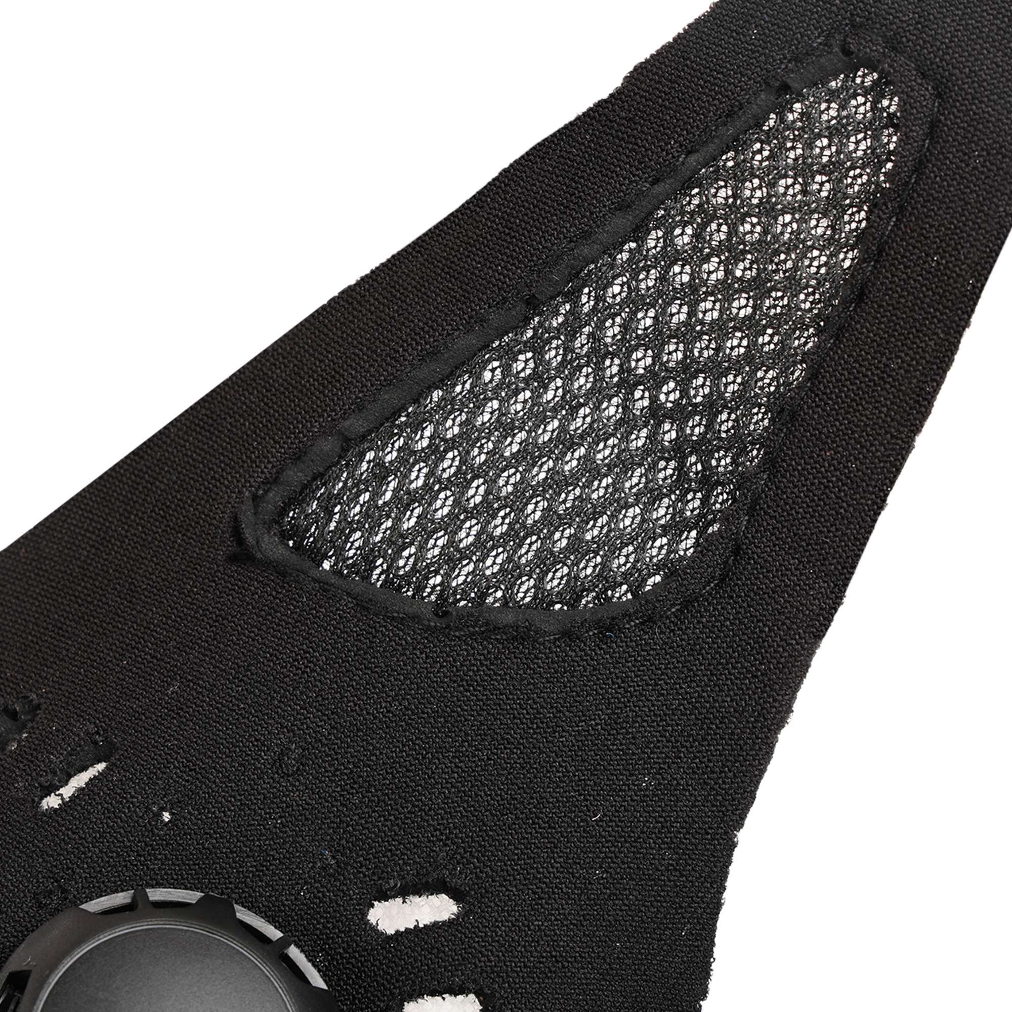Для изготовления ветрозащитной полулицевой маски используется полиэстер и неопрен. Маска предназначена для взрослых, она закрывает половину лица, а именно нос и подбородок. Маска фиксируется с помощью липучки, которая расположена на затылке. Несмотря на плотный материал, маска никак не препятствует дыханию, ведь в её конструкции предусмотрены специальные дыхательные клапаны. Также в конструкции маски имеется перфорация, которая обеспечивает дополнительный приток воздуха к органам дыхания. В области носа имеется носоупор, который гарантирует плотное прилегание маски.