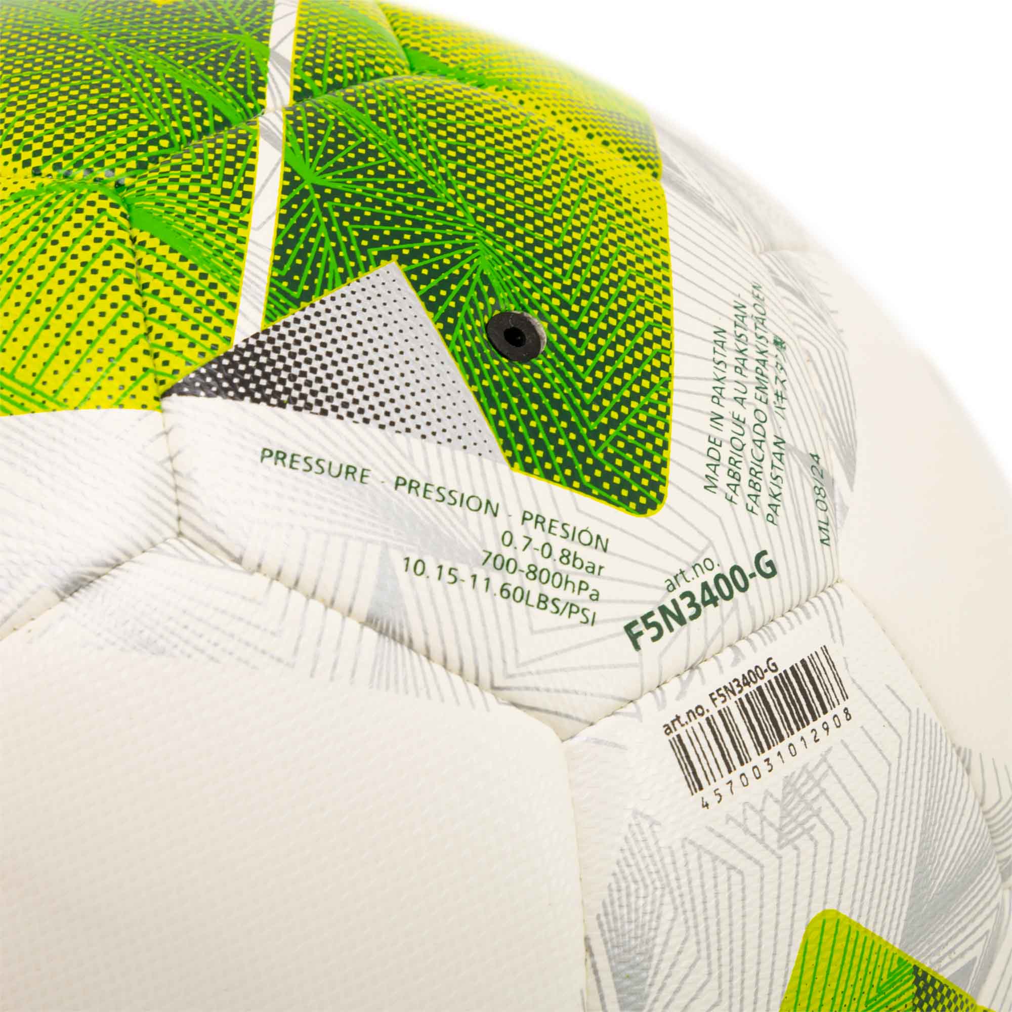Мяч футбольный MOLTEN F5N3400-G — это надежный и долговечный снаряд для игры на открытом воздухе. Он выполнен из прочного полиуретанового материала оснащен долговечной бутиловой камерой и мягкой пенной подложкой. Гибридная конструкция совмещает в себе преимущества двух технологий производства и обеспечивает отличные игровые характеристики, устойчивость к износу и воздействию влаги. Машинная сшивка гарантирует очень точное и равномерное соединение панелей, благодаря чему мяч имеет оптимальную, стабильную форму и хорошие аэродинамические свойства. Технология термического склеивания защищает снаряд от влаги и делает его всепогодным.