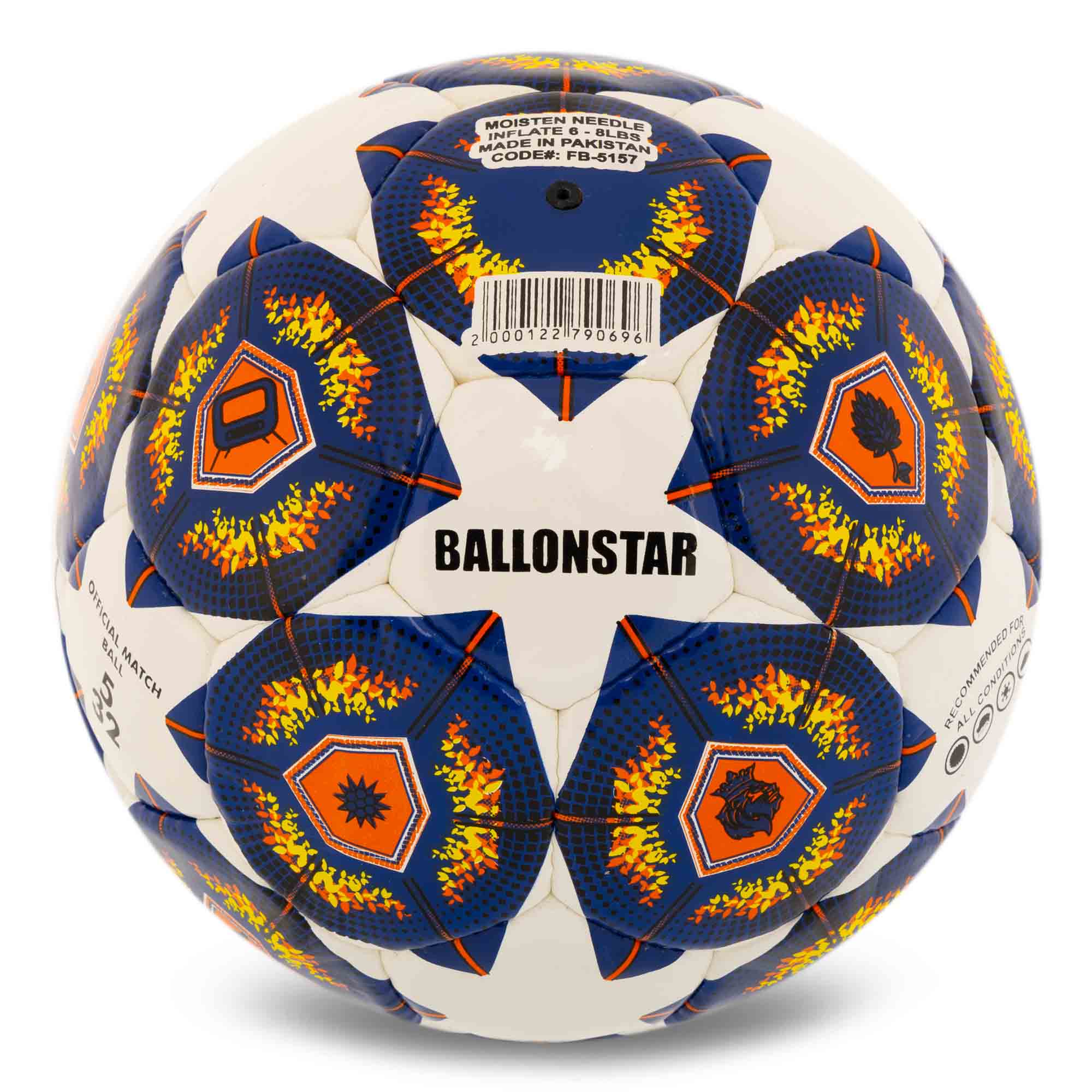 Описание PREMIER BALLONSTAR FB-5157 - это футбольный мяч 5 размера, который могут использовать дети и взрослые для игр и тренировок по футболу. Мяч имеет яркую расцветку покрышки, которая позволяет хорошо видеть его как футболистам, так и зрителям. Спортивный снаряд изготовлен из высококачественного полиуретана, который легко противостоит воздействию влаги и механическим повреждениям. Ручная сшивка панелей добавляет прочности спортивному снаряду и улучшает его аэродинамические свойства. Именно благодаря использованию ручного шва мяч имеет прямую траекторию полёта в воздухе. Камера изготовлена из бутилa и долгое время может удерживать давление воздуха без подкачки. Также такая камера отличается высокой прочностью и стойкостью к проколам. Назначение Футбольный мяч можно использовать для тренировок и матчей, он подойдёт для игры на искусственных и натуральных покрытиях. Этот спортивный снаряд можно приобрести для уроков физкультуры в школу и другие учебные заведения, а также для спортивной секции. Он подойдёт для индивидуального использования, развлечений и активных игр. Благодаря такому спортивному снаряду ваш ребёнок освоит азы игры в футбол. Преимущества: - Вес и окружность мяча соответствуют 5 размеру.