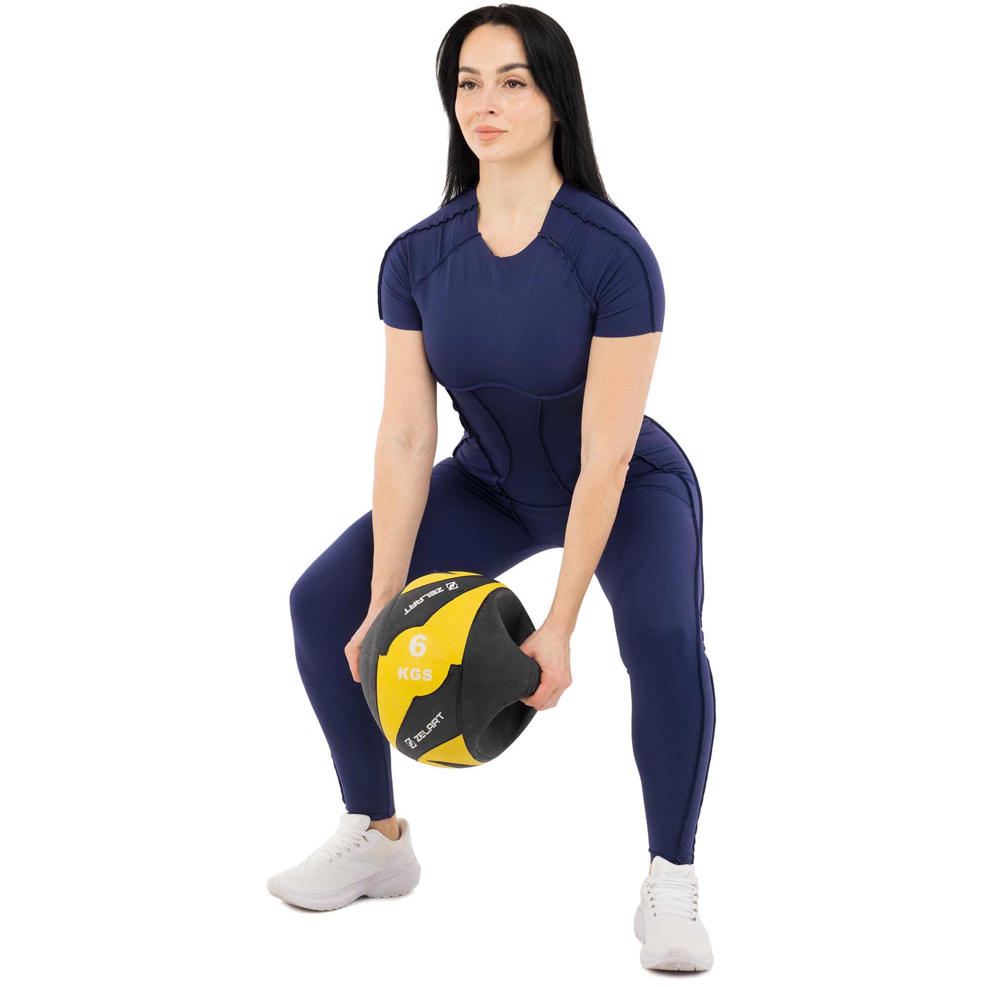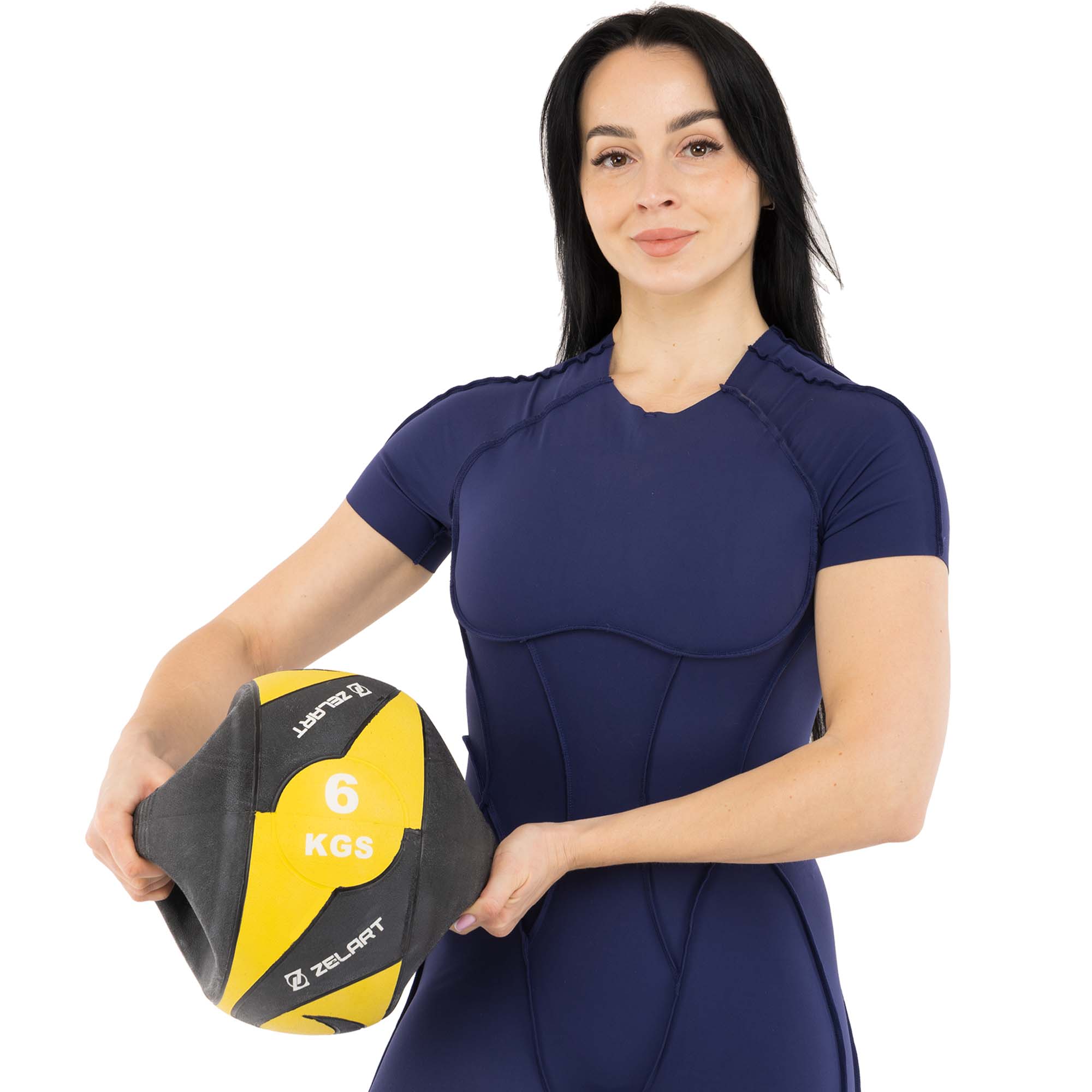 Чтобы сделать тело подтянутым и красивым, не рискуя при этом здоровьем суставов, необходимо использовать медбол. Медицинский мяч — это утяжелённая модель мяча, которая позволяет выполнять упражнения на большинство групп мышц и имеет специальную форму и дизайн. В отличие от классических мячей, в данном случае мяч имеет ручки по бокам. За ручки одной рукой или сразу двумя пользователь может держать спортивный снаряд во время выполнения упражнения. Рифление на ручках позволяет сделать хват надёжным и предотвращает выскальзывание медбола в самый неподходящий момент. Его вес — 6 кг, а диаметр составляет 27,5 см. Этот небольшой утяжелённый мяч не займёт много места в зале или дома.