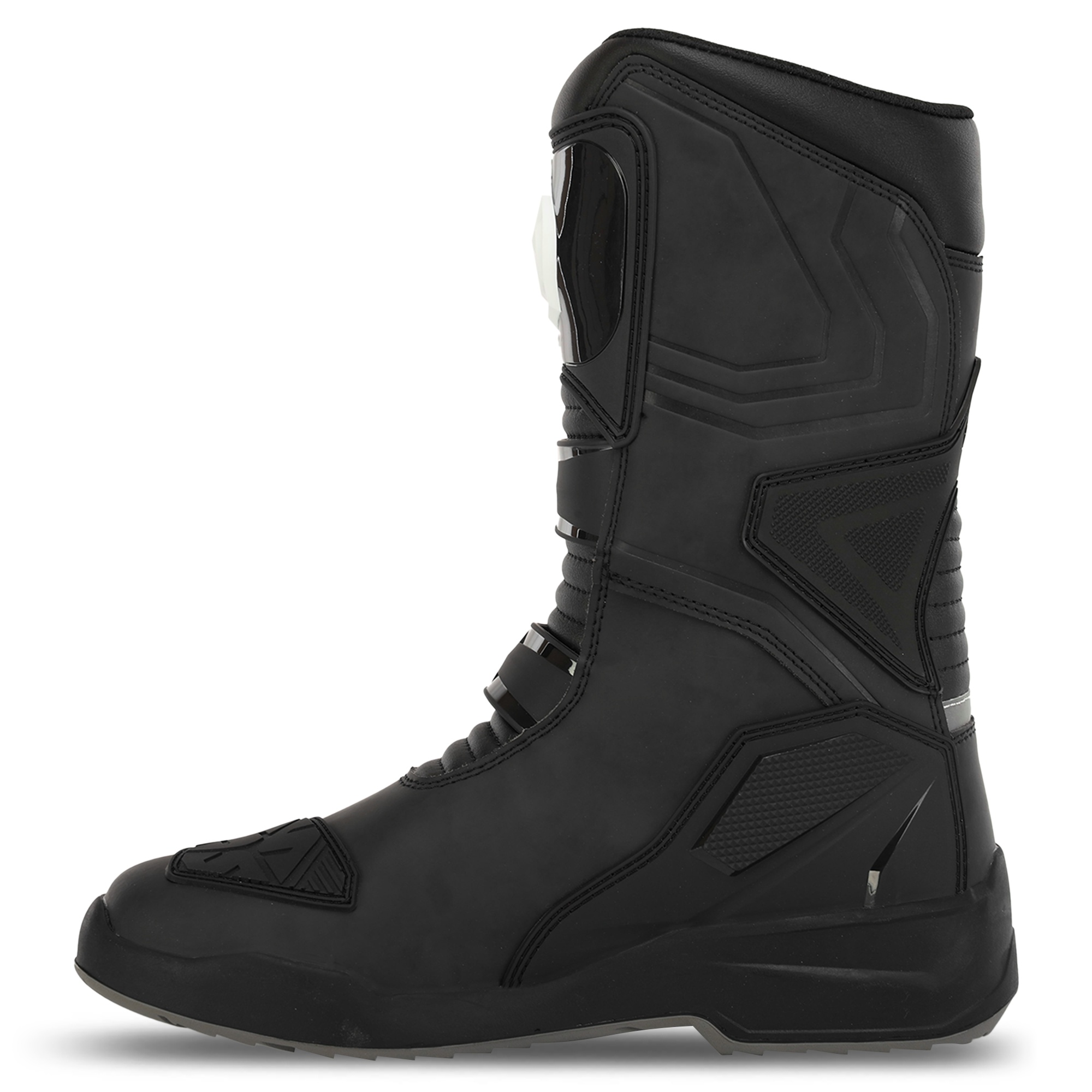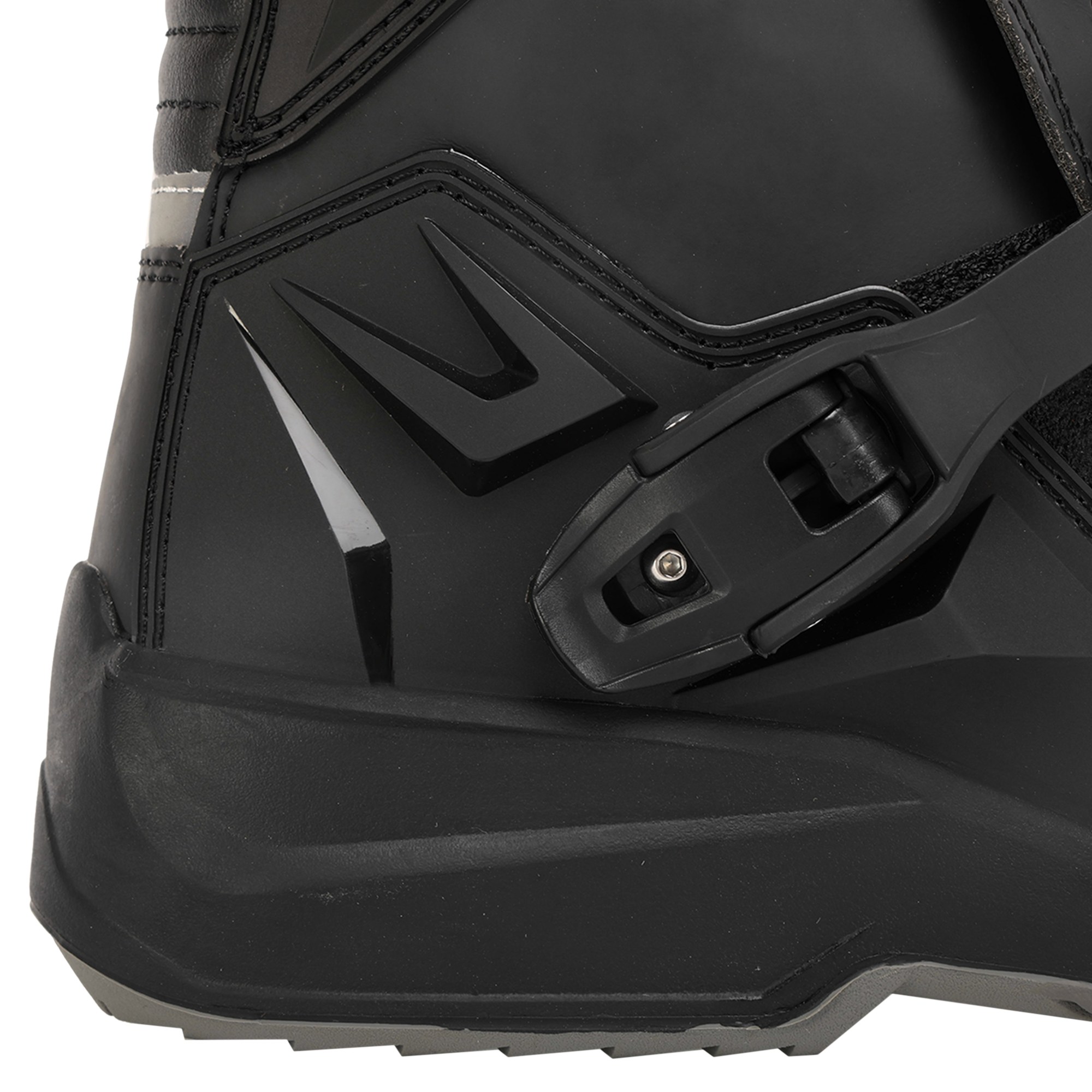 Во время езды мотоботы надежно защищают от дождя, ветра и механических воздействий. Протекторы в зоне голеностопа и на передней части голени обеспечивают гибкую поддержку и защиту от столкновений, не ограничивая подвижность сустава. Усиленная многослойная подошва с противоскользящим протектором устойчива к истиранию и обеспечивает надёжное сцепление с различными типами покрытия.