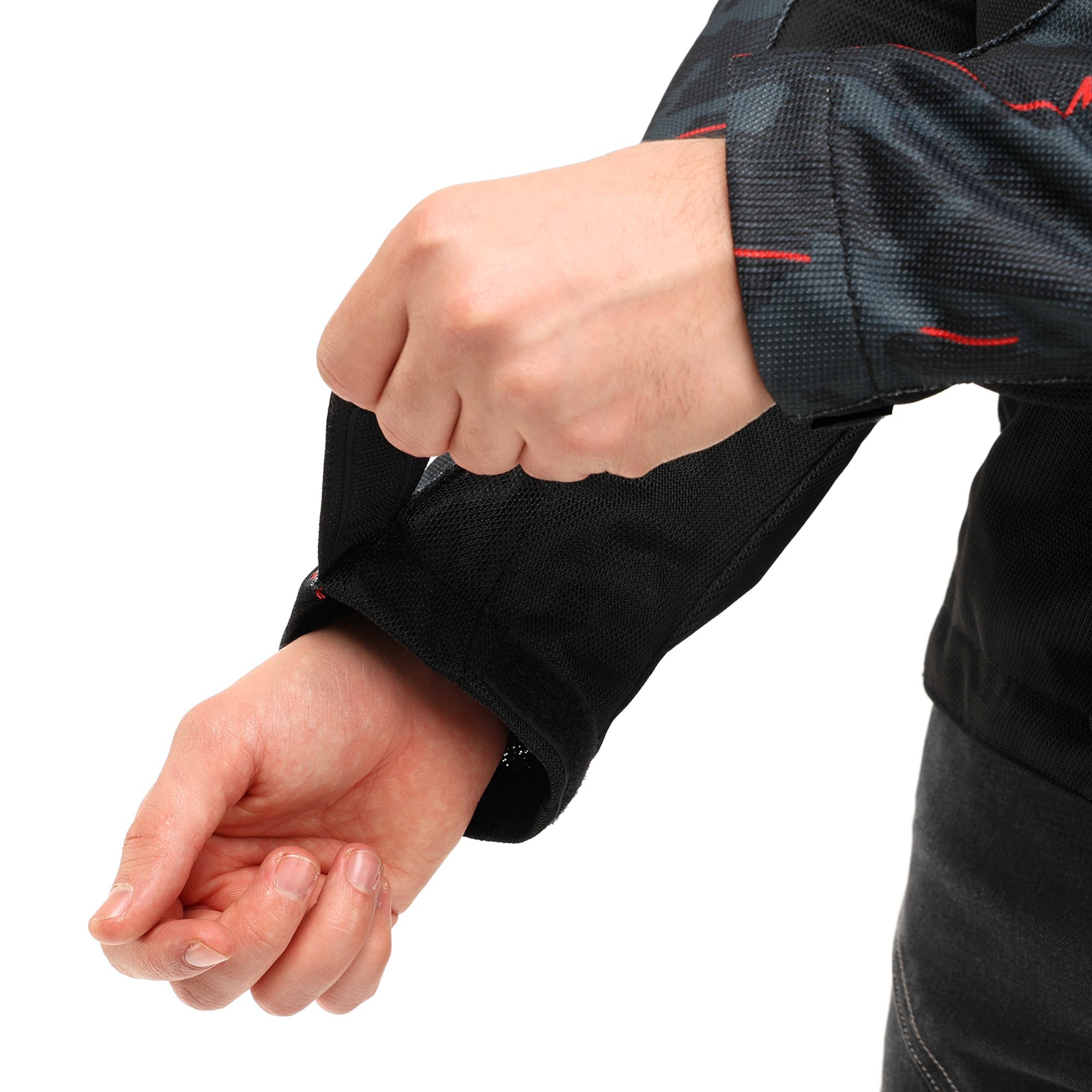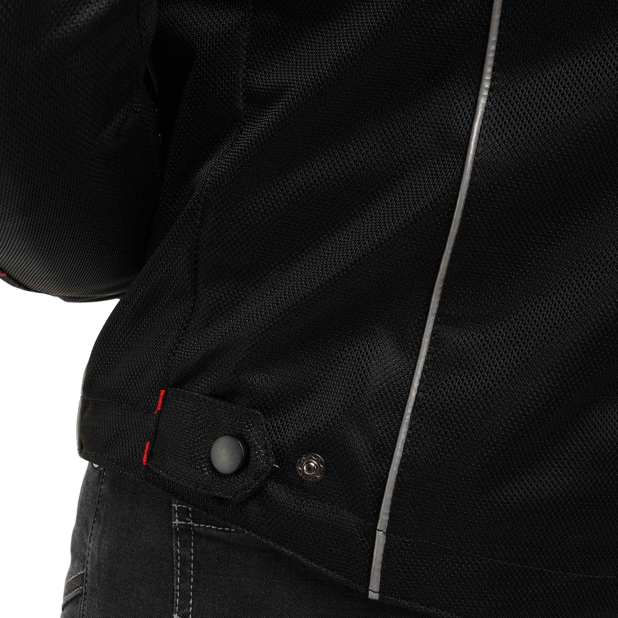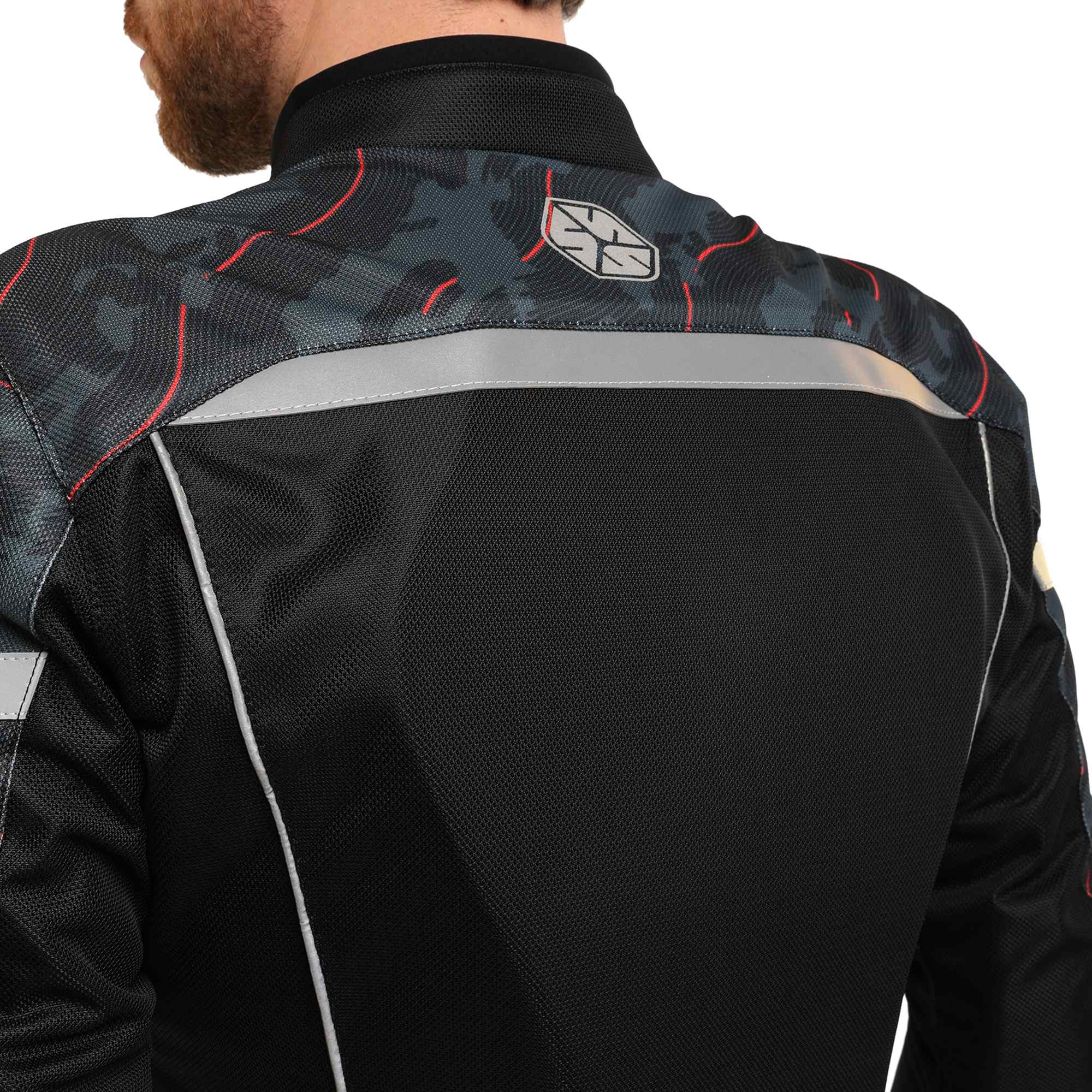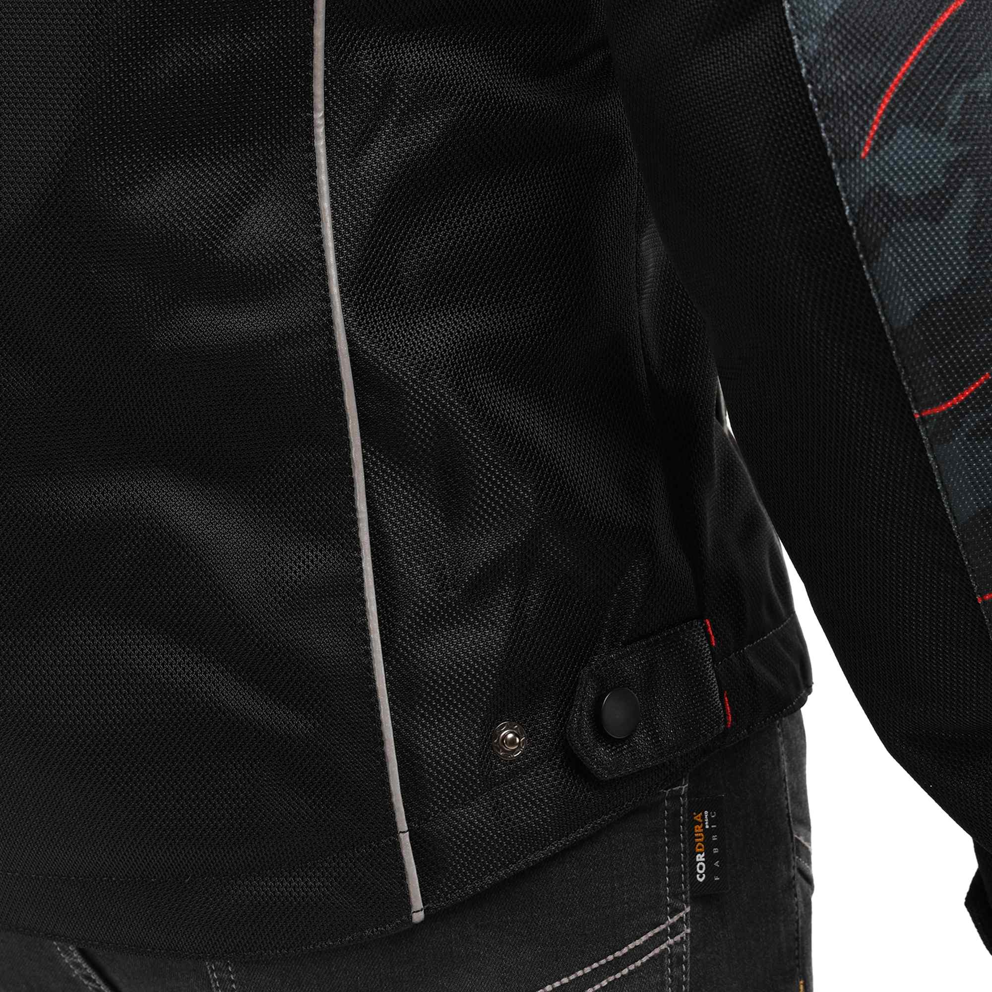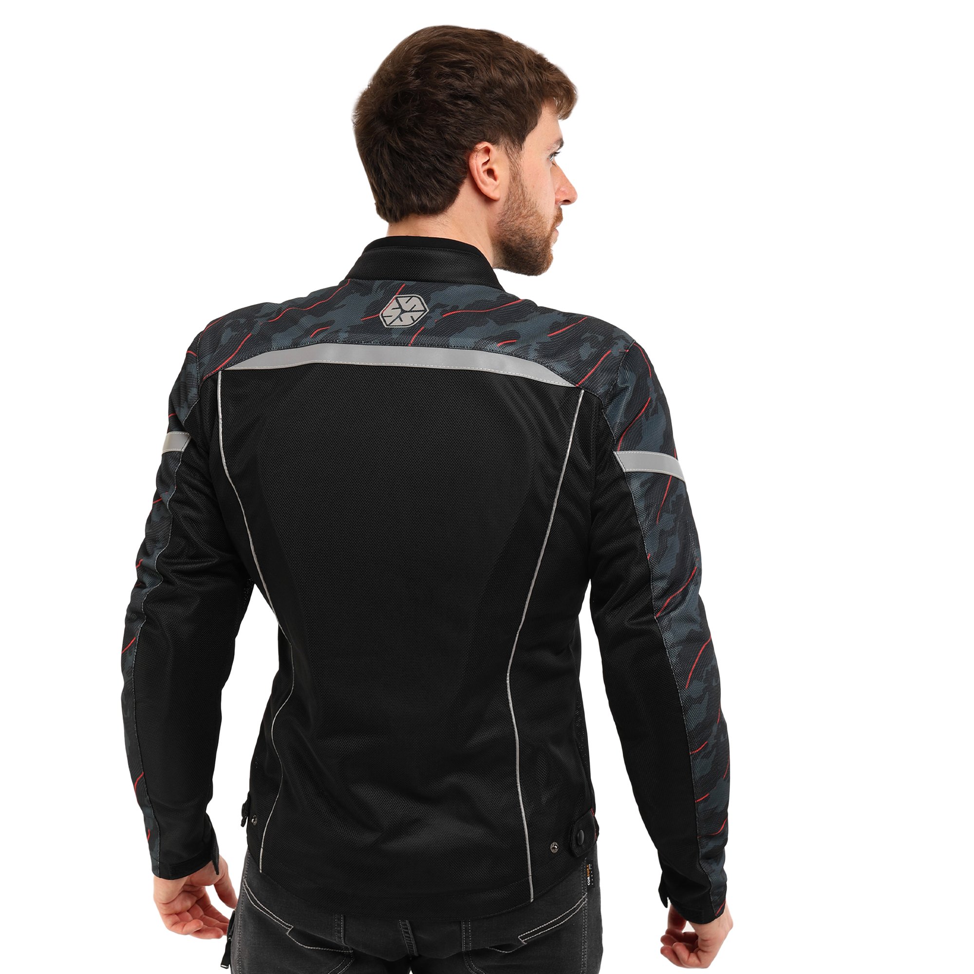 Куртка изготовлена из сверхлегкой сетчатой ткани. Полиэстер 600D имеет высокий коэффициент трения, что позволяет защитить кожу от ссадин при падении. Защитные накладки на локти и плечи изготовлены из прочного и качественного поролона. На спине и груди использованы мягкие поролоновые вкладыши черного цвета.