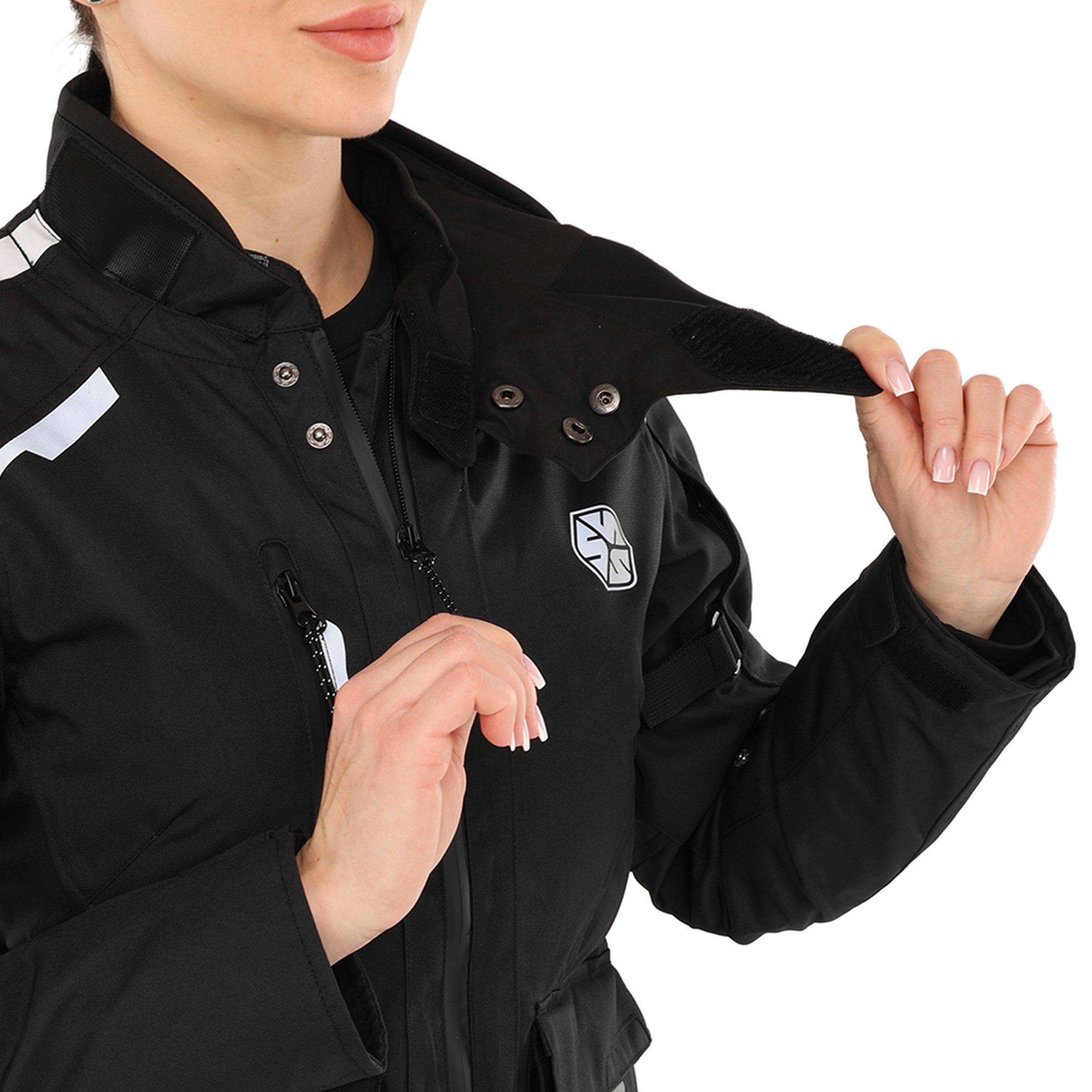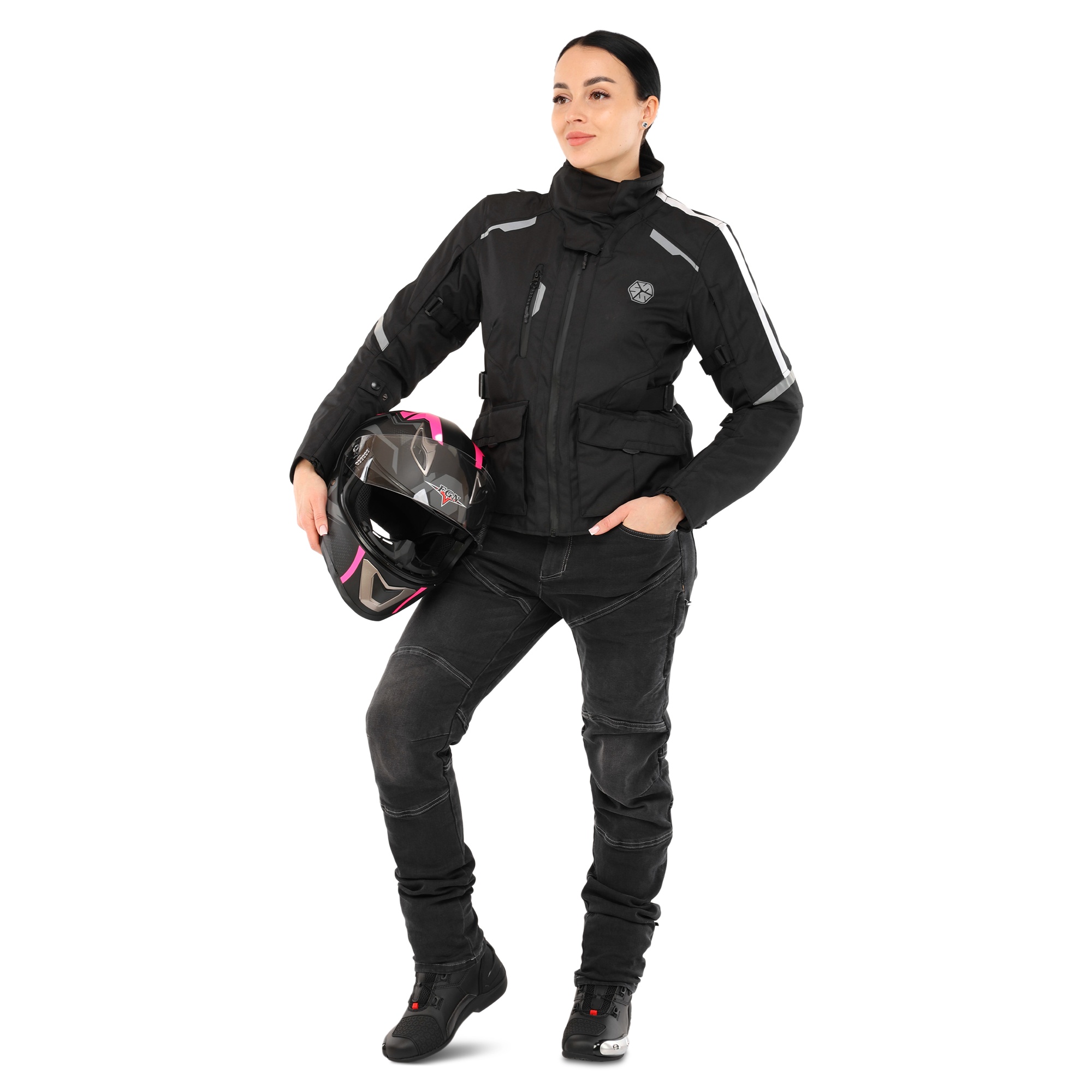 Модель предназначена для надежной защиты мотоциклистки в повседневных поездках, путешествиях и длительных мотопробегах. Она помогает сохранить тепло в любую погоду, обеспечивает длительный комфорт и защищает от ушибов и травм при падении с мотоцикла или столкновениях.