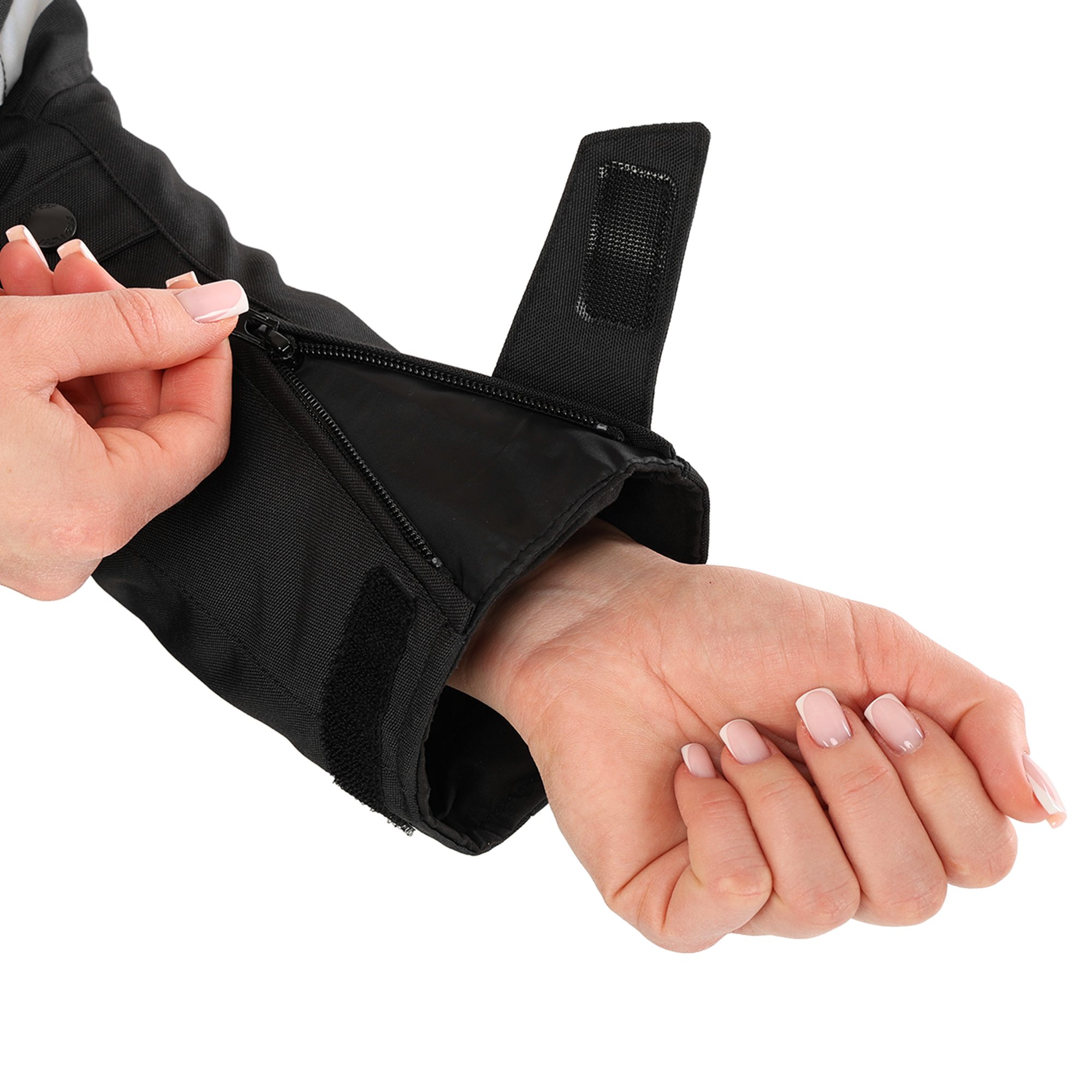 Светоотражающие элементы повышают заметность мотоциклиста в темное время суток. Для удобного хранения телефона, ключей и других мелких вещей предусмотрены карманы с надежной застежкой.