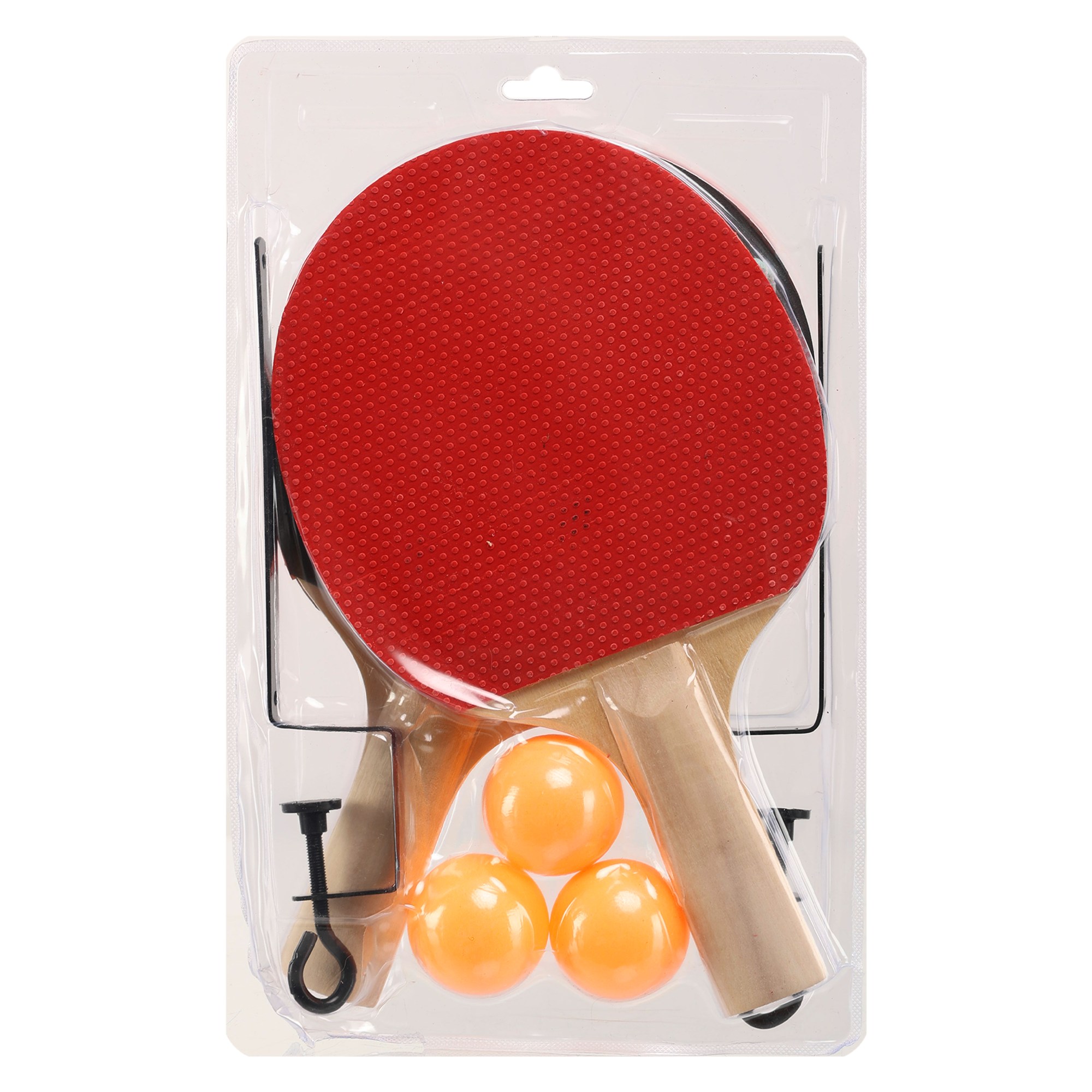 Благодаря использованию данного набора не придется ничего докупать дополнительно, останется только установить сетку на стол подходящего размера, и можно приступать к игре. Ракетки имеют эргономичную форму и изготовлены из дерева. Поверхность ракеток выполнена из гладкой износостойкой резины, которая обеспечивает хороший контроль мяча и возможность наносить мощные удары. На сетке предусмотрены стандартные крепления в виде винтов, которые позволяют удобно зафиксировать ее на столешнице любого типа. Мячи из набора имеют хороший отскок.