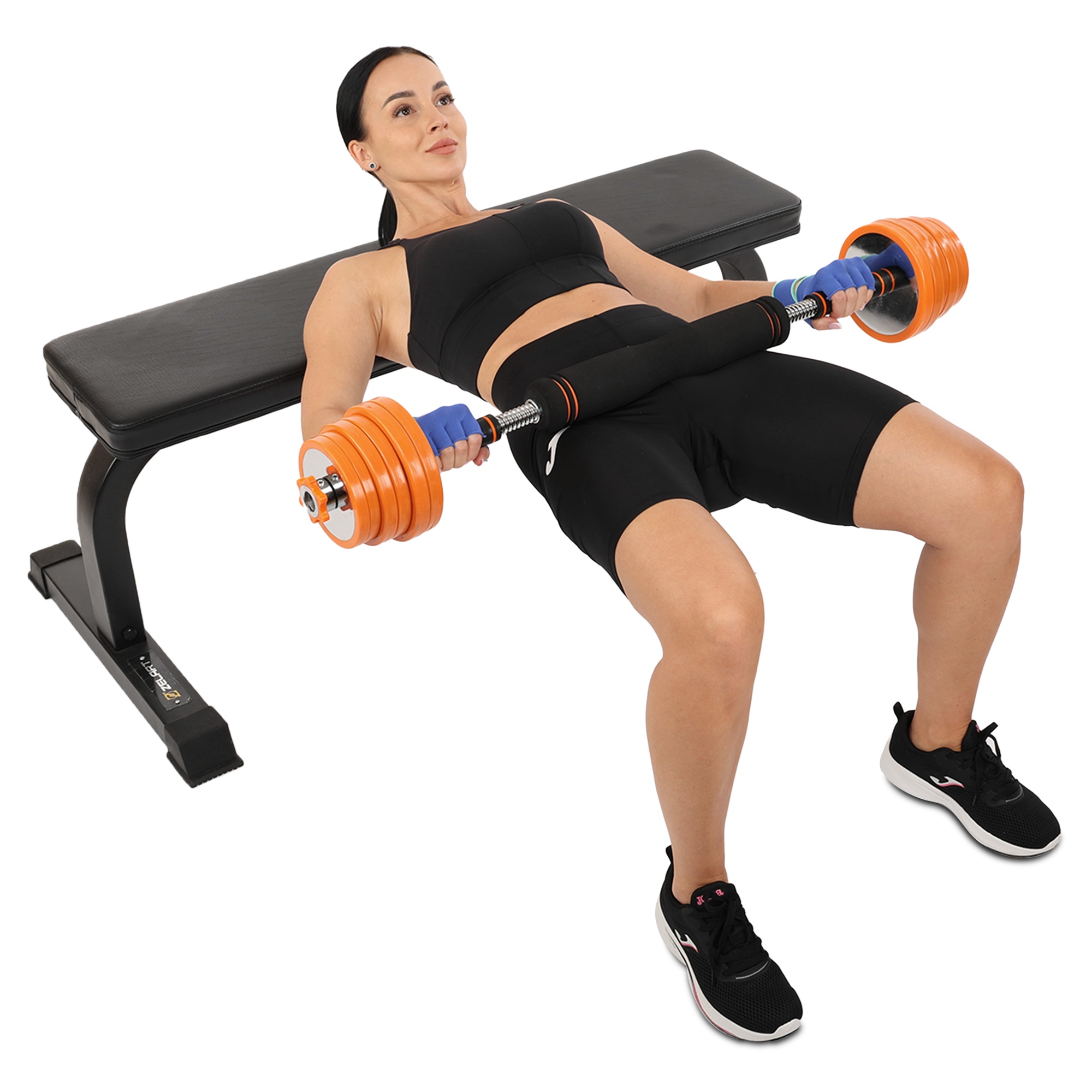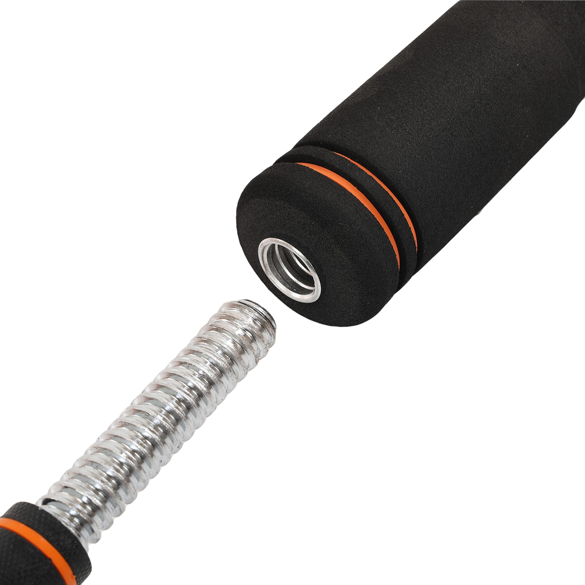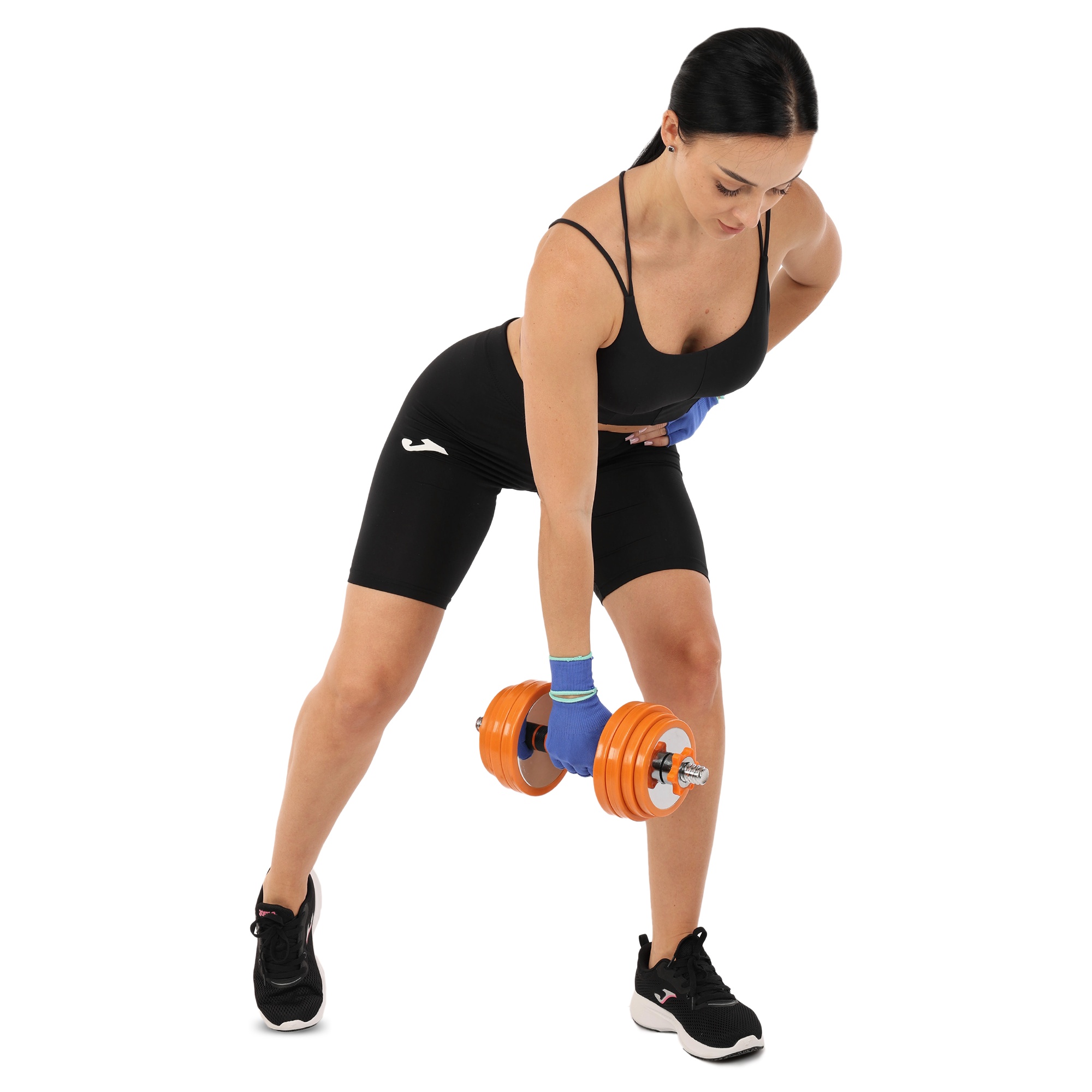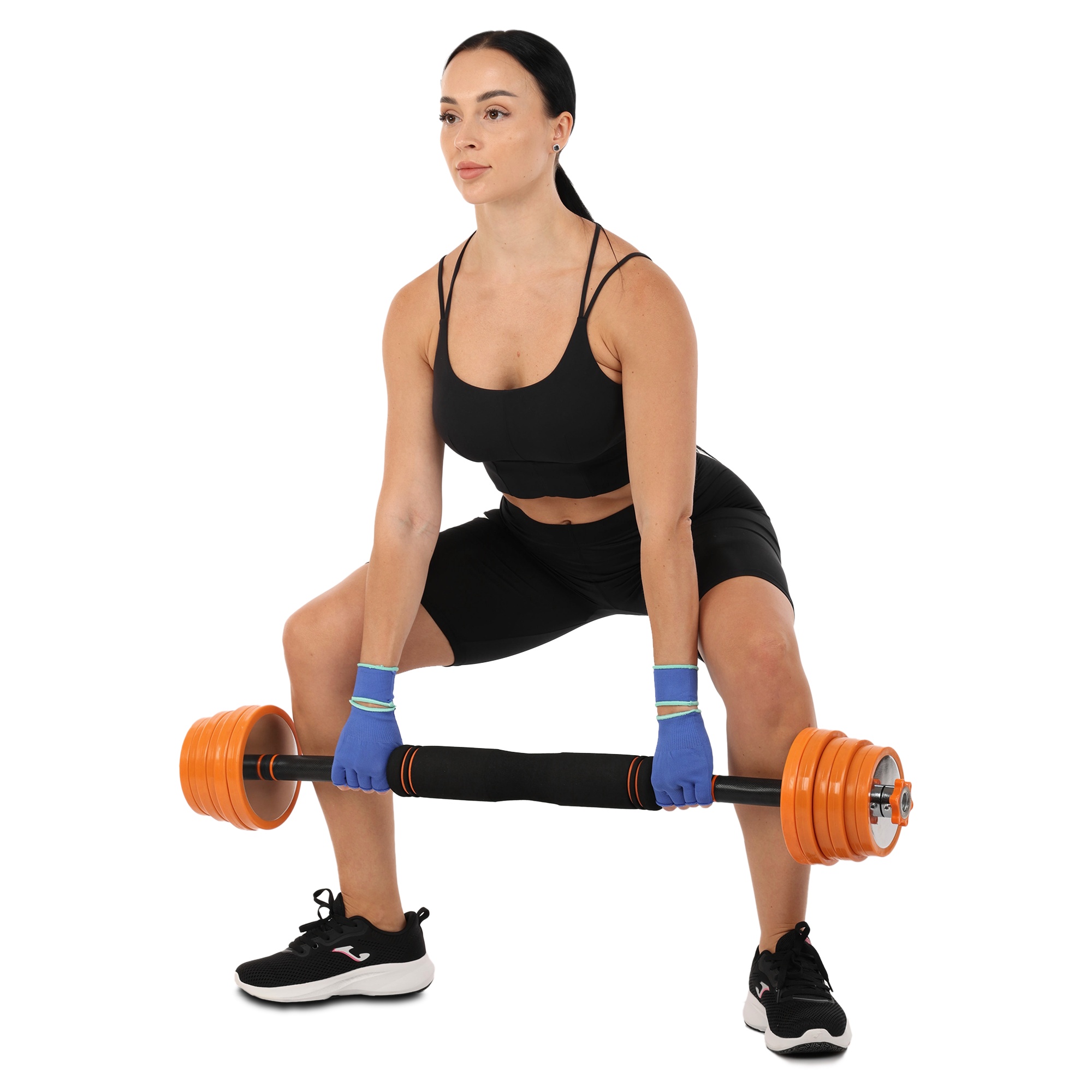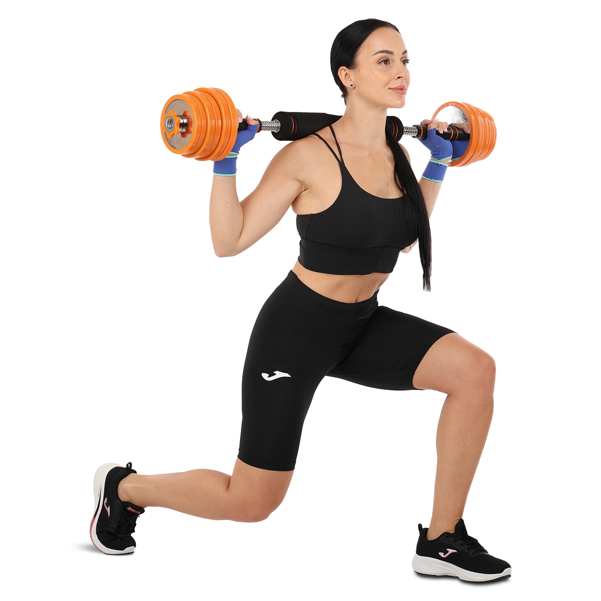 Комплектация 3 в 1 позволяет мгновенно превращать две гантели в полноценную прямую штангу. Это означает универсальность, экономию места и возможность прокачивать сразу весь арсенал мышечных групп — дома, в личном ритме и стиле.