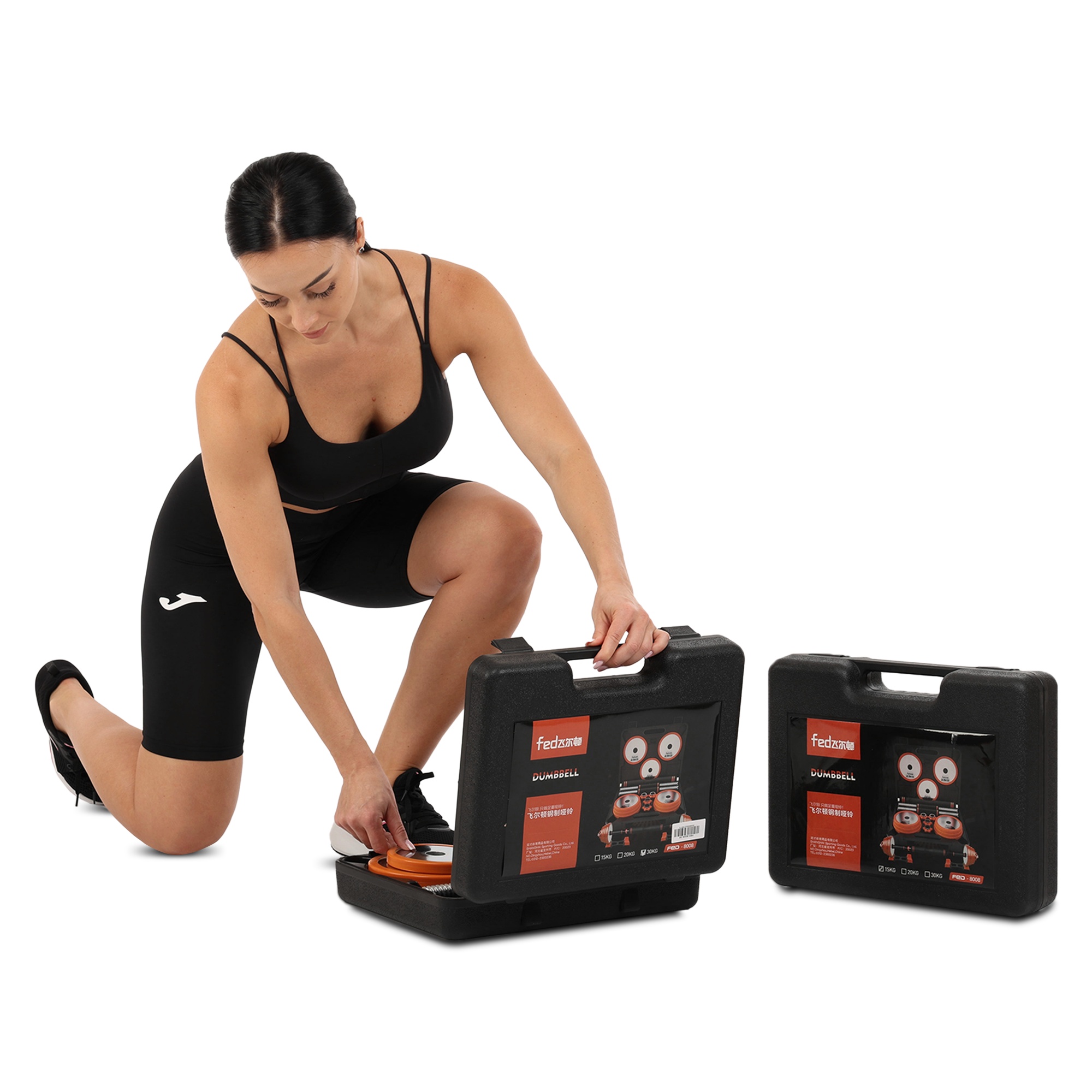 Гантели трансформер превращаются в штангу 3в1 в пластиковом кейсе FED FED-8008-30 30кг оранжевый Код FED-8008-30