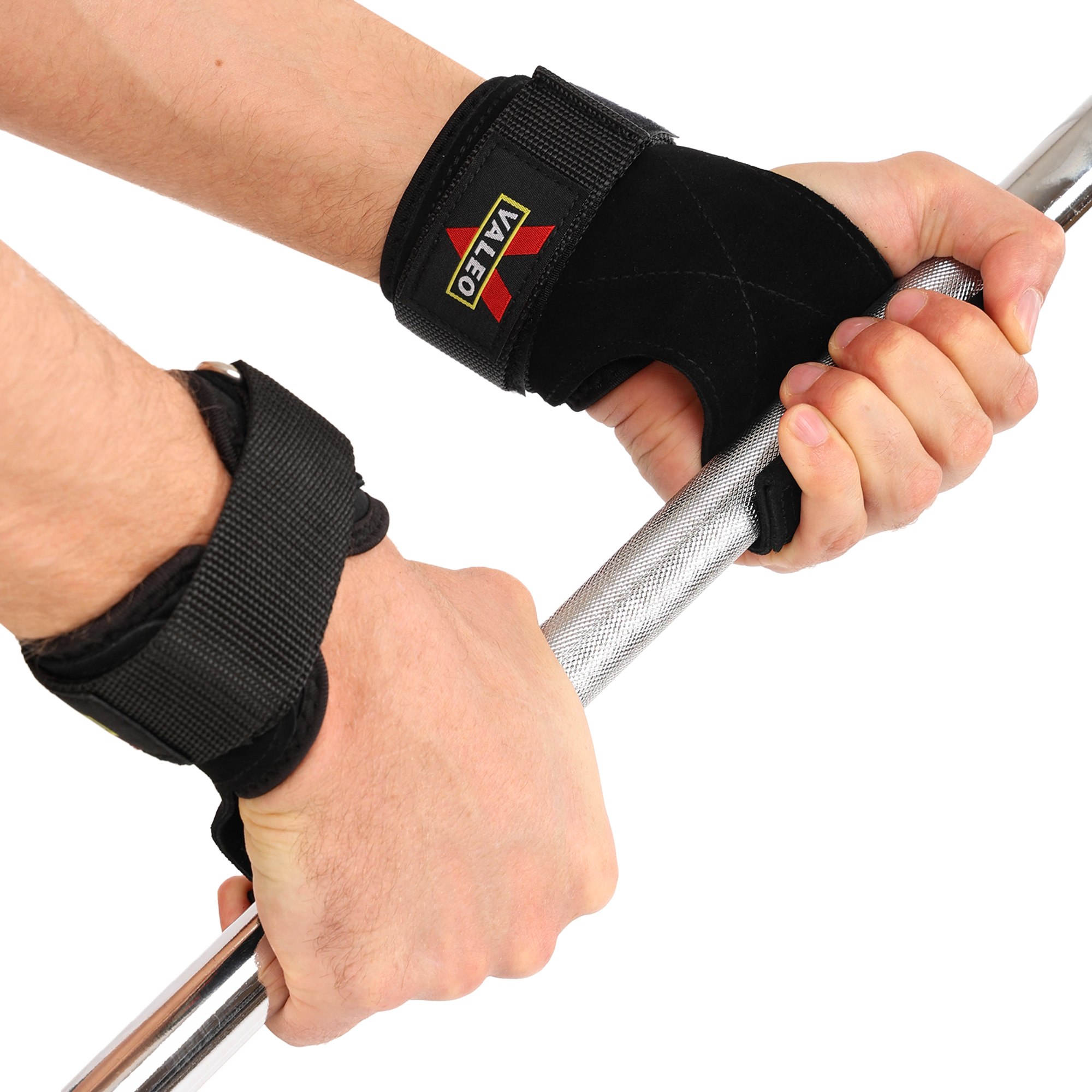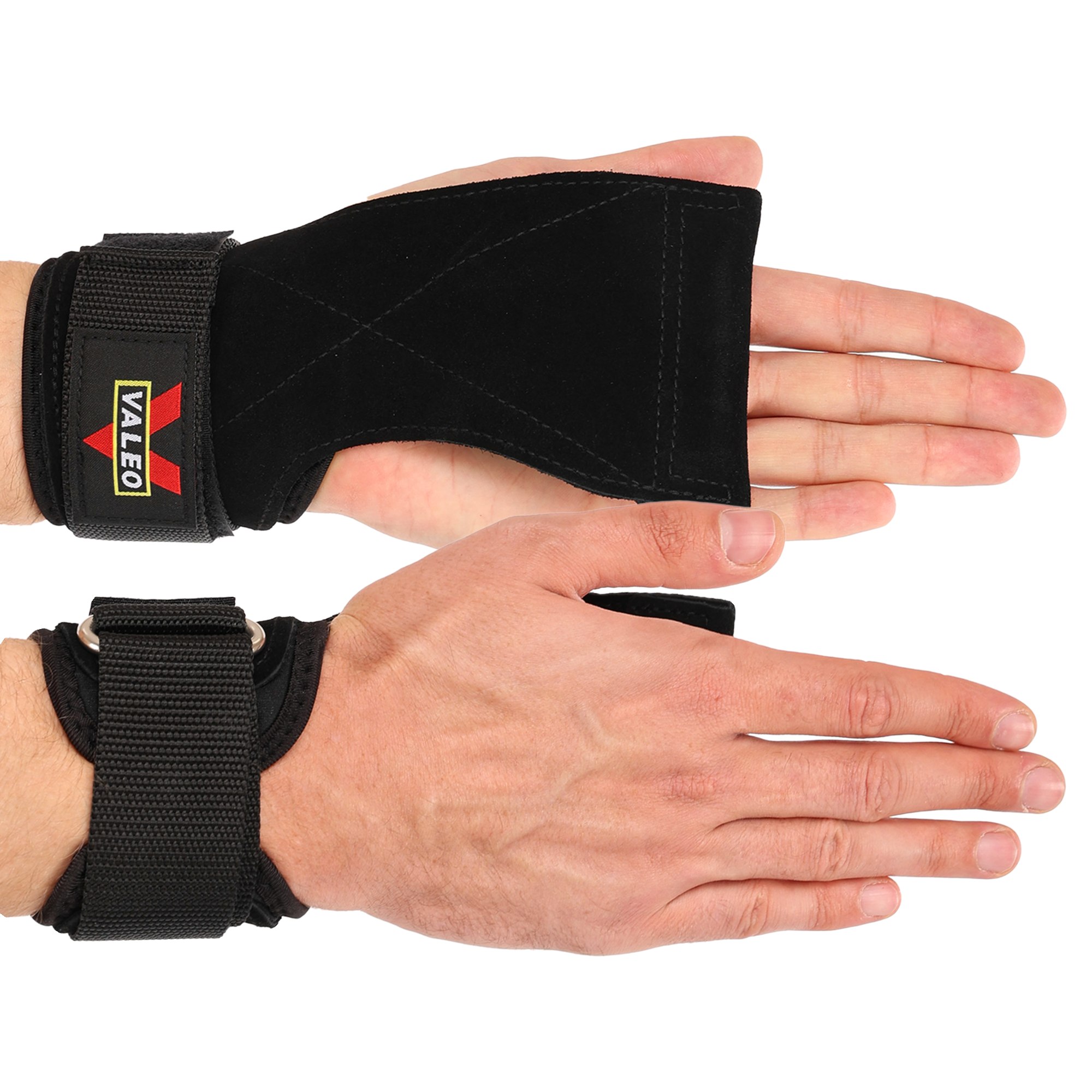 Накладки для подтягивания и тяги от бренда VALEO выполнены из натуральной кожи и полиэстера. Такая комбинация материалов позволяет придать максимальную прочность изделию, а также сделать нескользящим. Форма накладки позволяет избежать чрезмерного давления грифа на кожу, ведь изделие разработано с учетом анатомических особенностей ладони. Для фиксации накладки на руке используется липучка. Изделие можно отрегулировать по посадке.